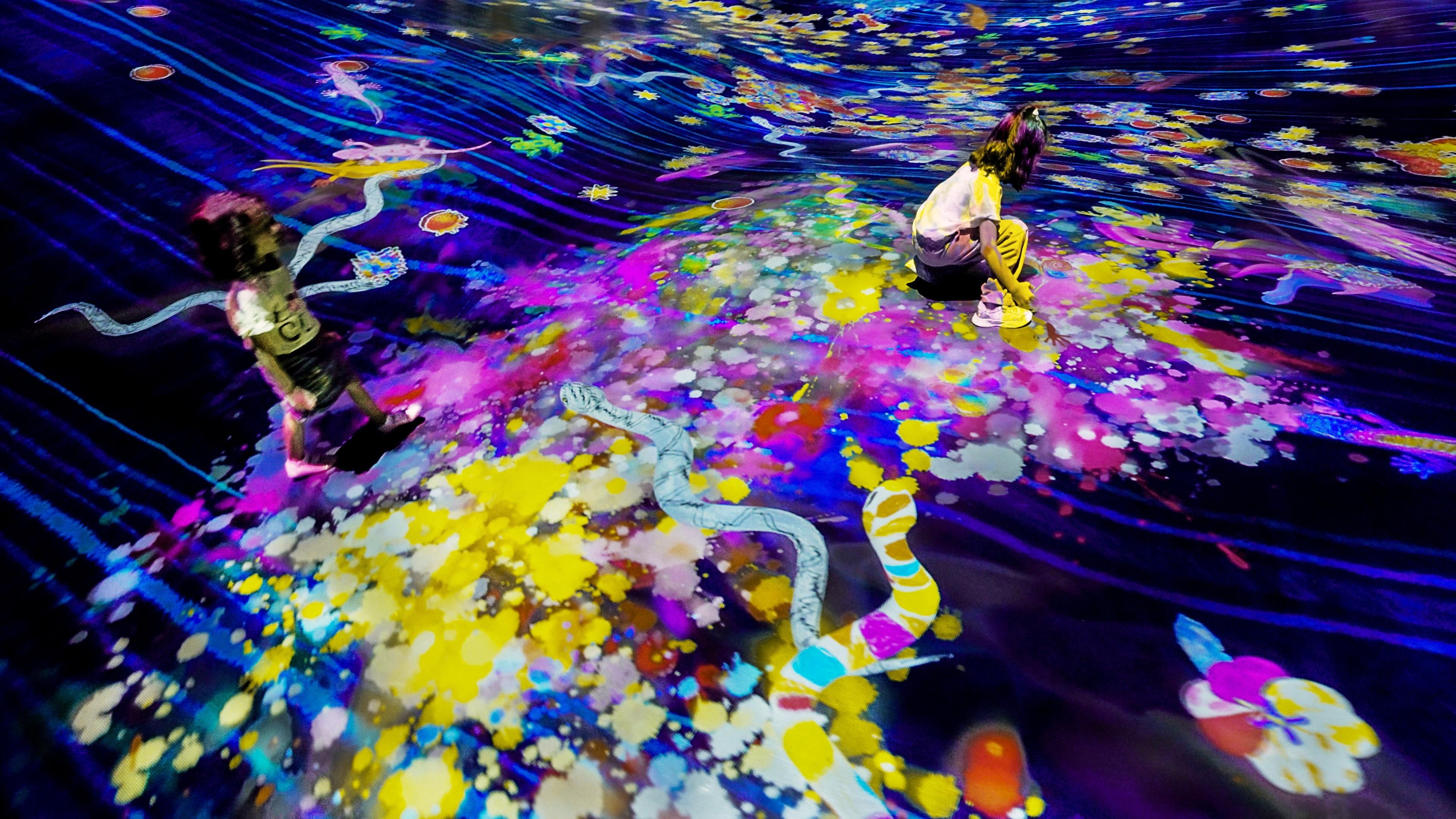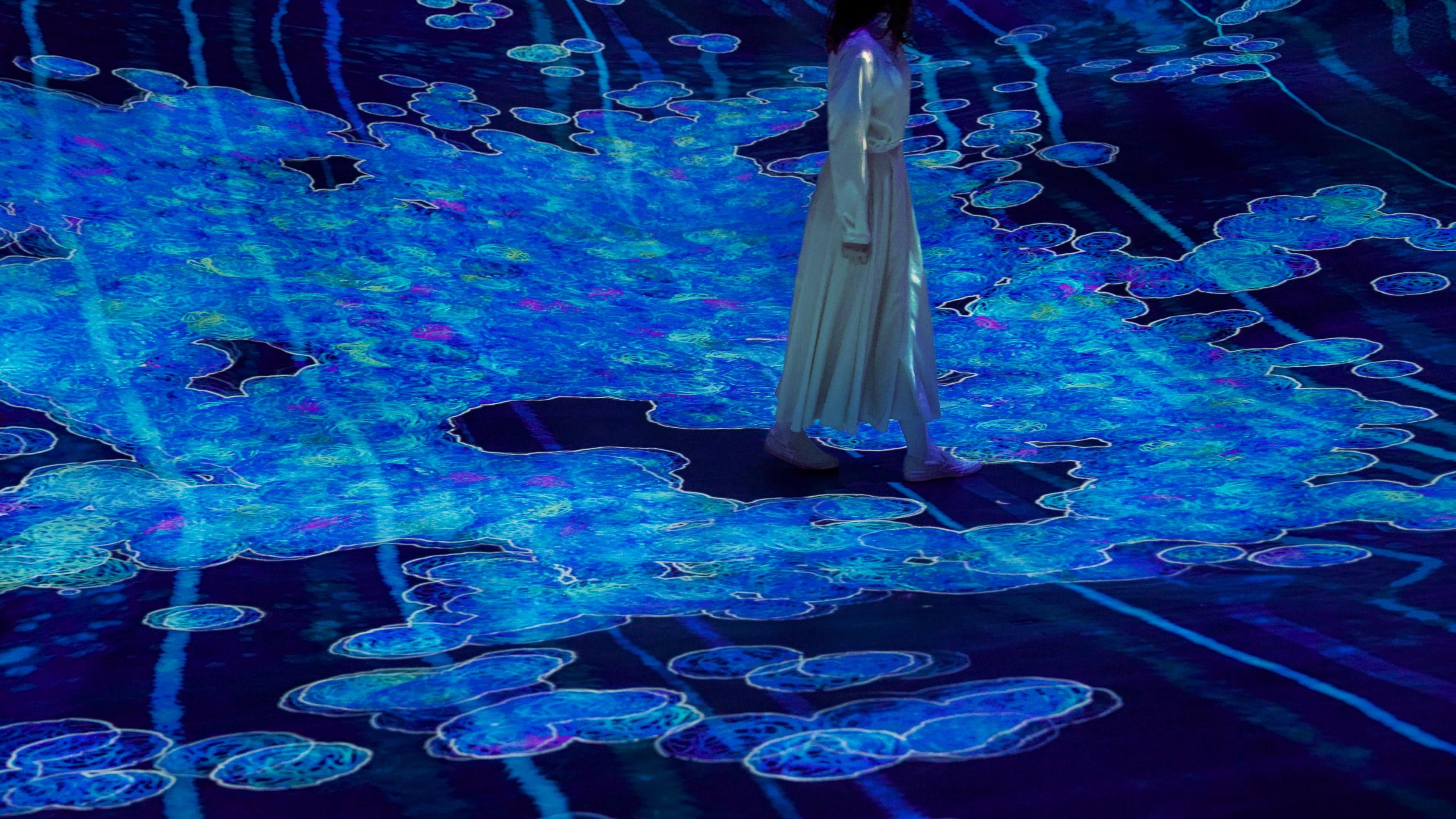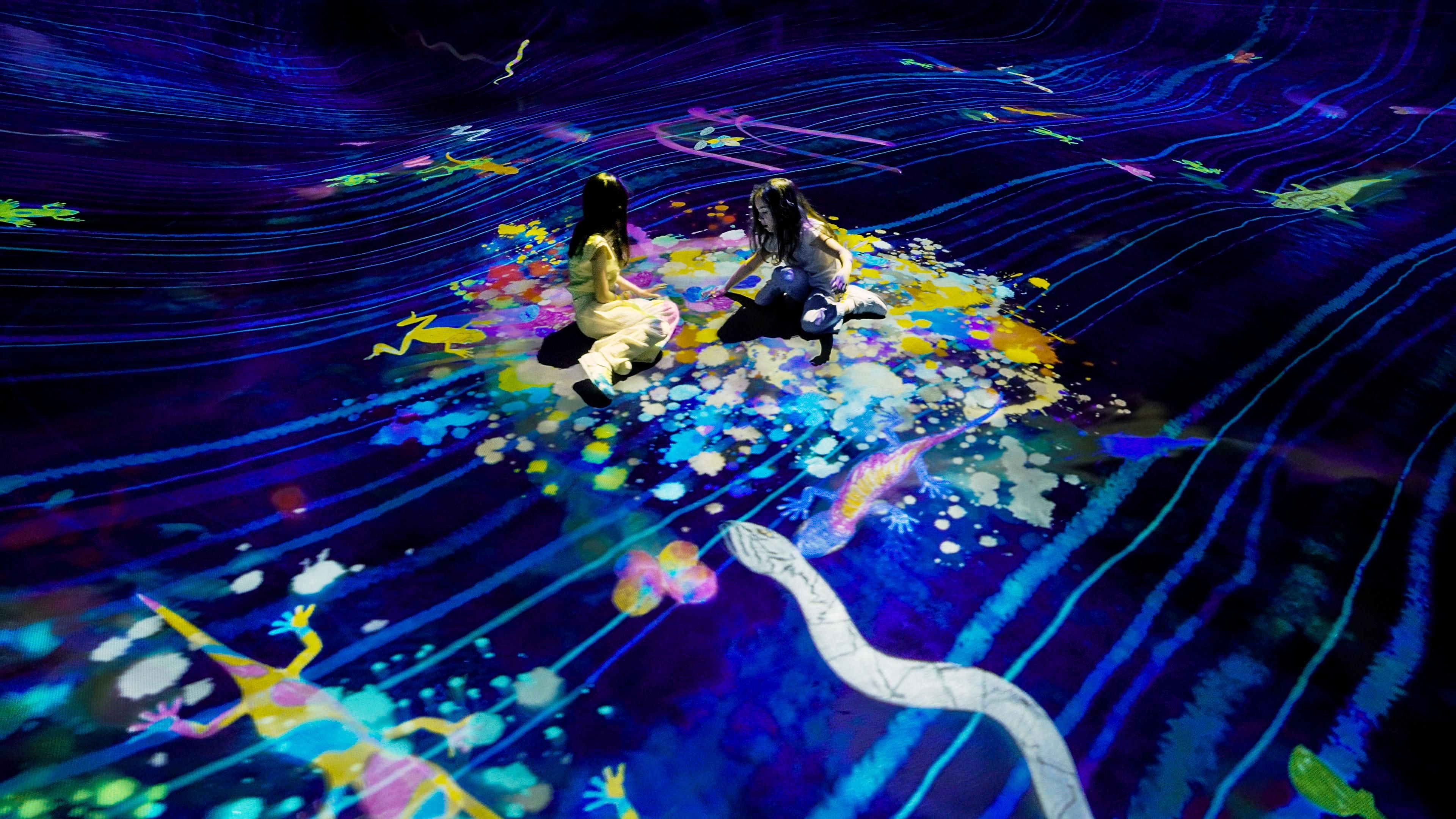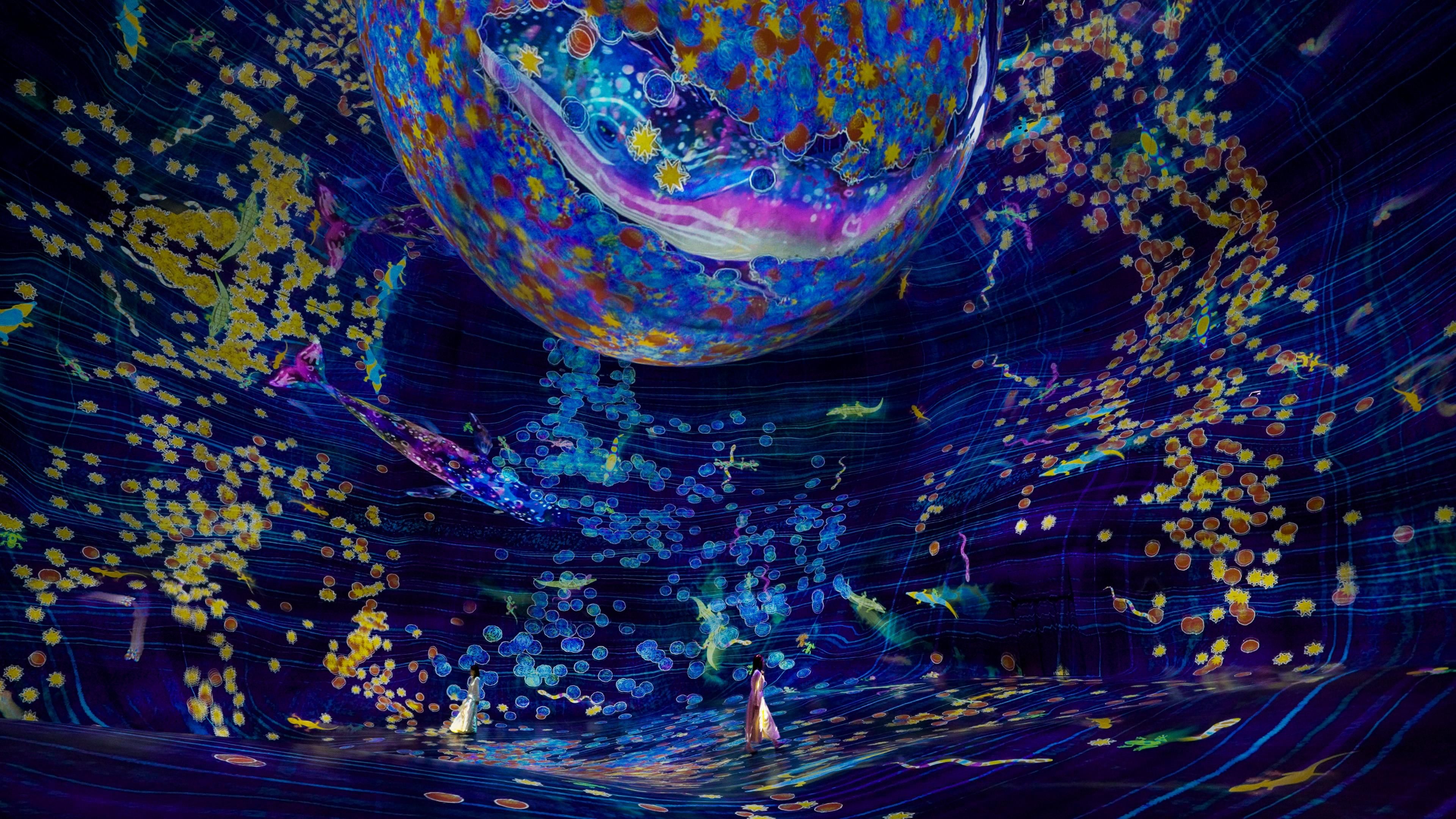花は、人々がじっとしているとその場にたくさん咲き、人々が踏んで歩き回ると散る。生き物たちは増えたり減ったりしながら、この世界に広がっていく。あなたが描いた生き物も、どこかで増えているかもしれない。