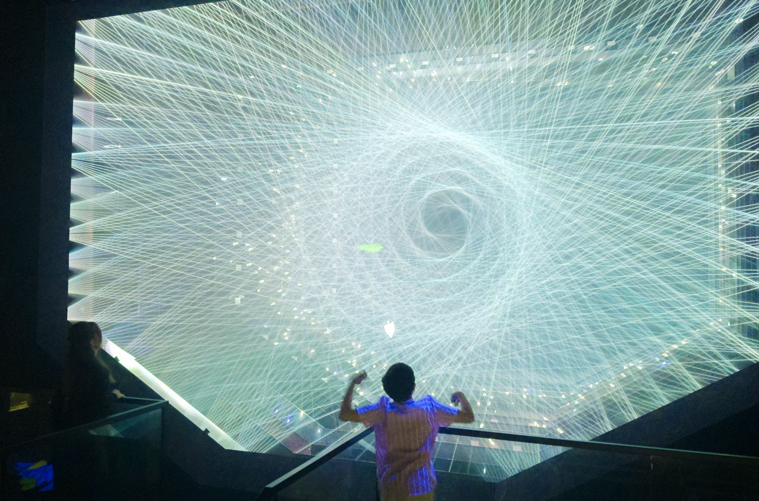 外部から内部へ、そして内部から外部へと流れ続ける光の集合が中心部分に秩序を形成し、生命的宇宙が現れる。
