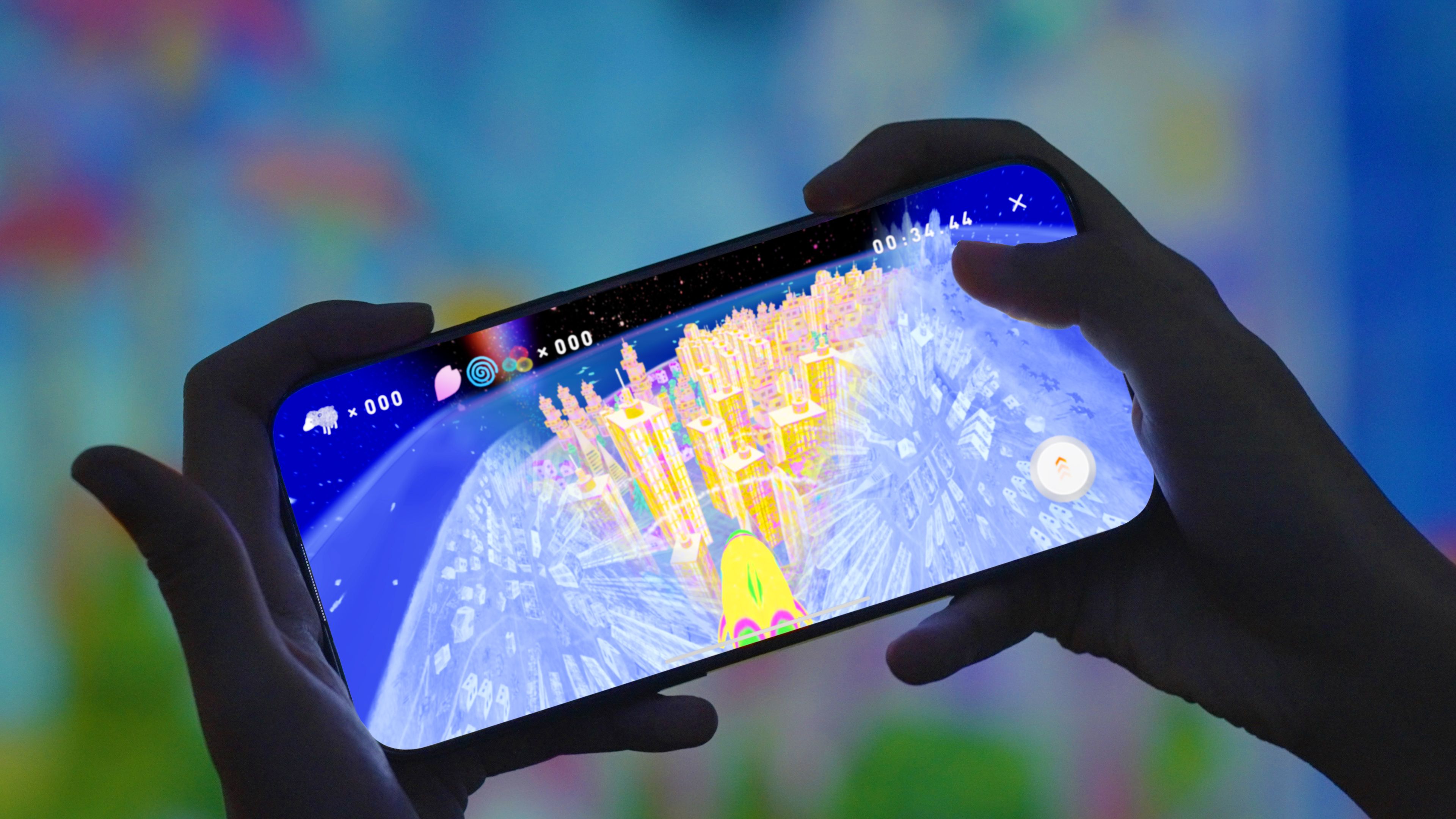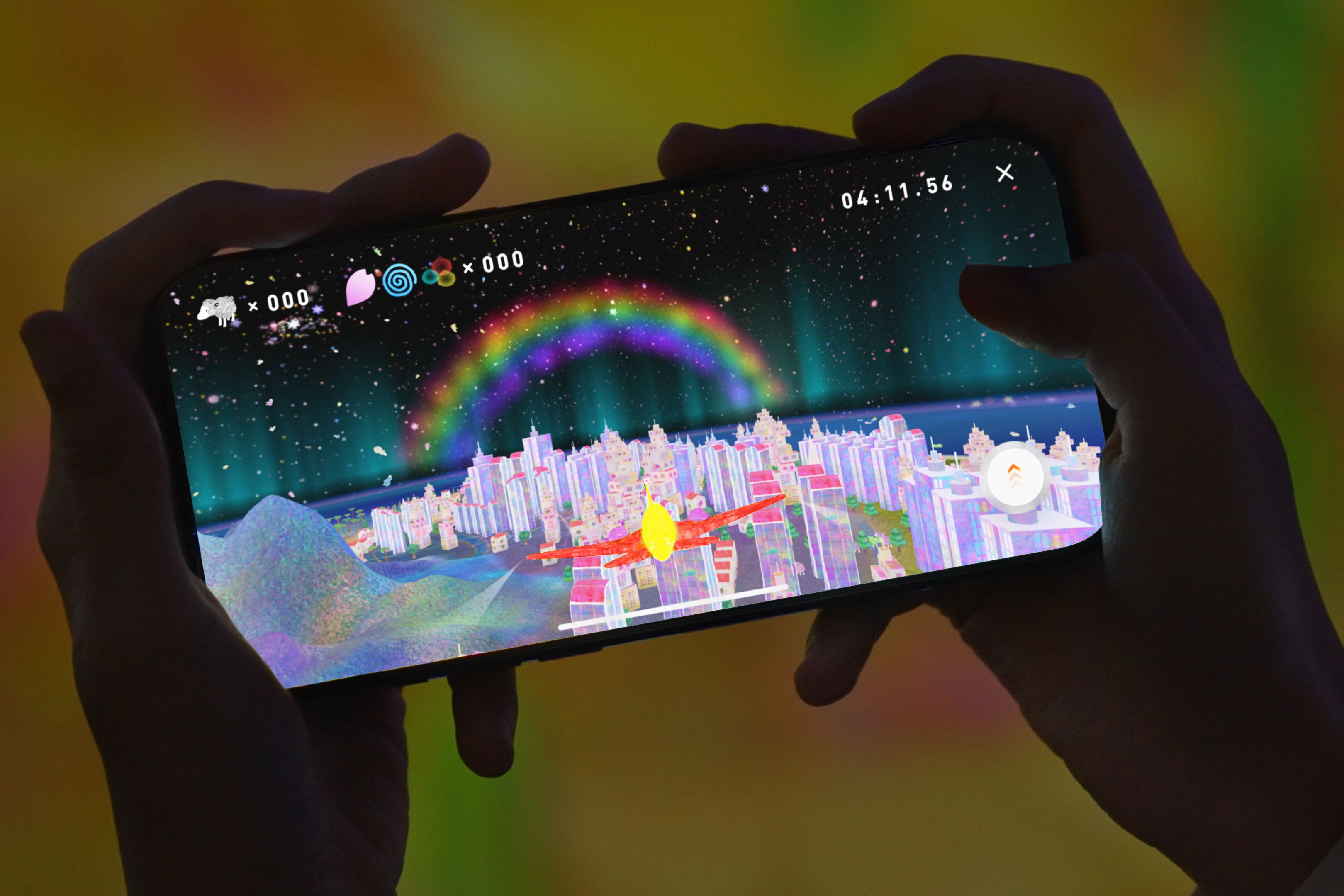 - スマートフォンでは、自分が描いたヒコーキや、イルカ、タカ、チョウをそれぞれの視点で操縦することができる。