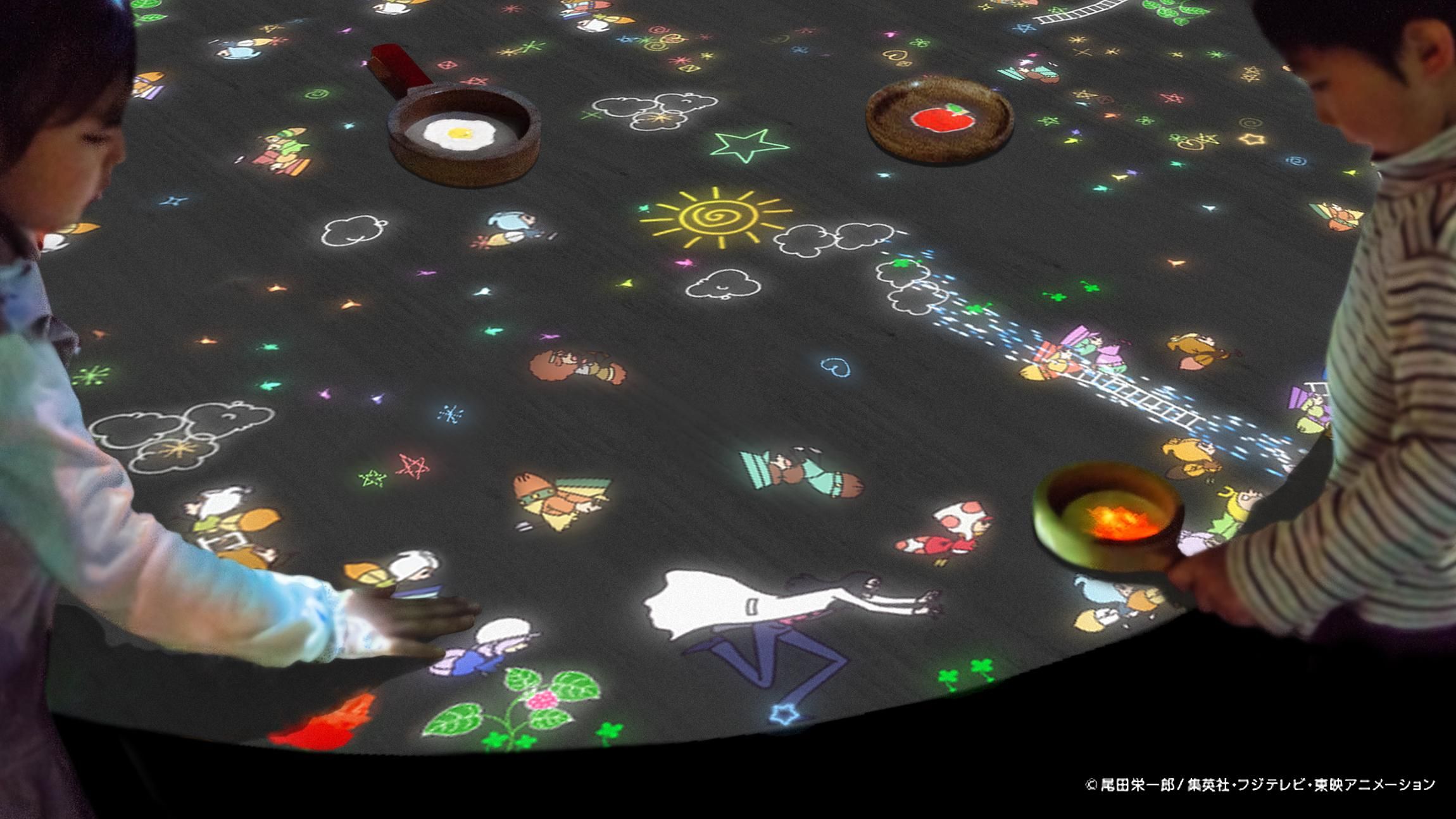 このテーブルは、アニメ「ワンピース」のストーリー中に登場するトンタッタ族が住んでいるテーブルです。 トンタッタ族たちはテーブルの中で走り回っていて、こちらには気付きません。 しかし、テーブルの上に手を置いたり物を置いたりすると、トンタッタ族は気付いて、飛び乗って来ます。 デジタルアー島のオリジナルキャラクターの悪の科学者・Dr.ボラムがたまに登場して、トンタッタ族を追いかけるので、手や物を使って、トンタッタ族をDr.ボラムから助けます。