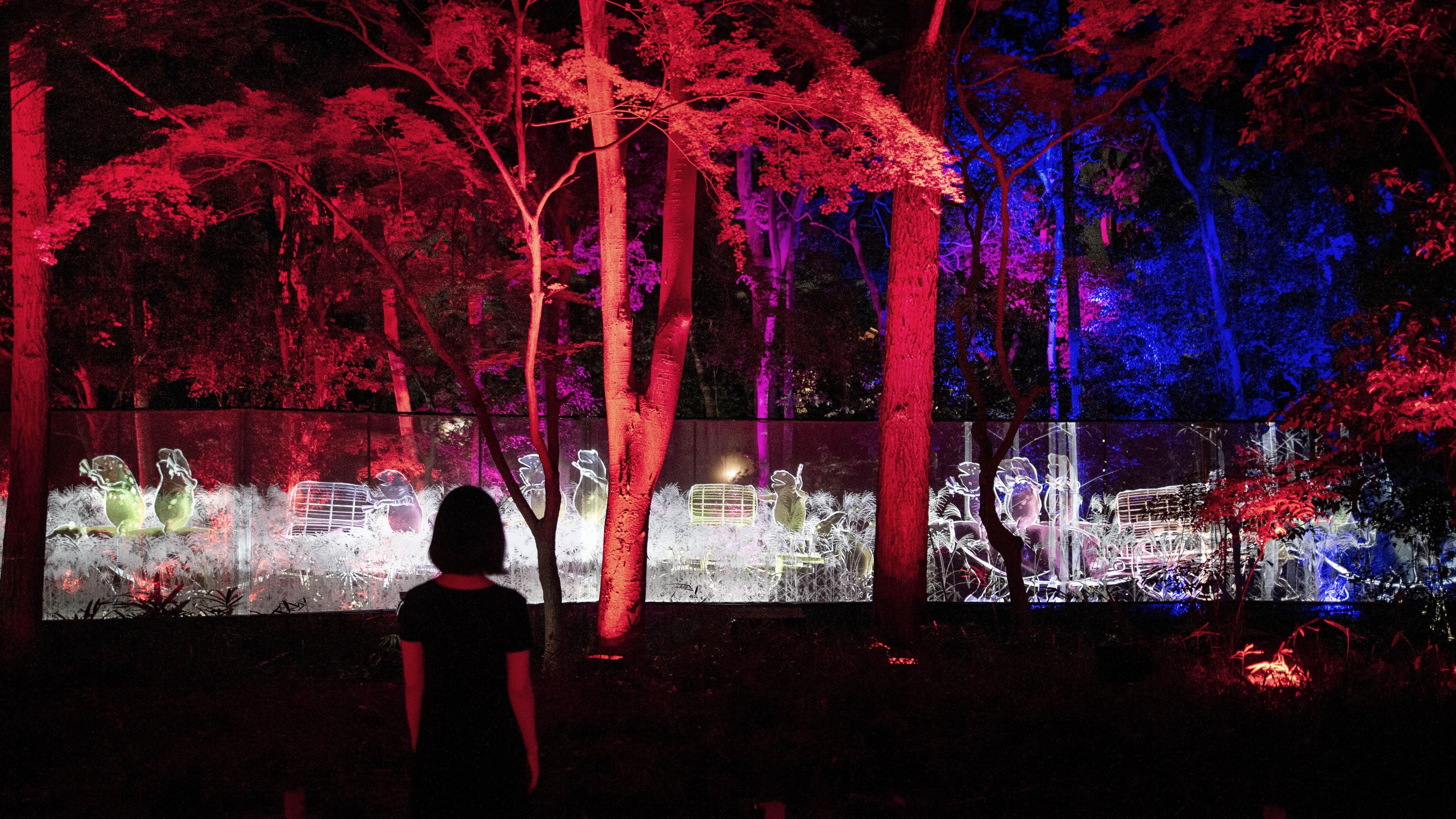 禅の言葉に「歩歩是道場(ほほこれどうじょう)」という言葉がある。作品の登場人物は、いろいろな出来事に対峙しながら、終わりなく歩き続ける。人々来場者もまた、作品世界の登場人物たちを追いかけ歩くことによって共に対峙していくだろう。もしくは、次々に歩いて来る各々の登場人物と対峙していくことになるだろう。