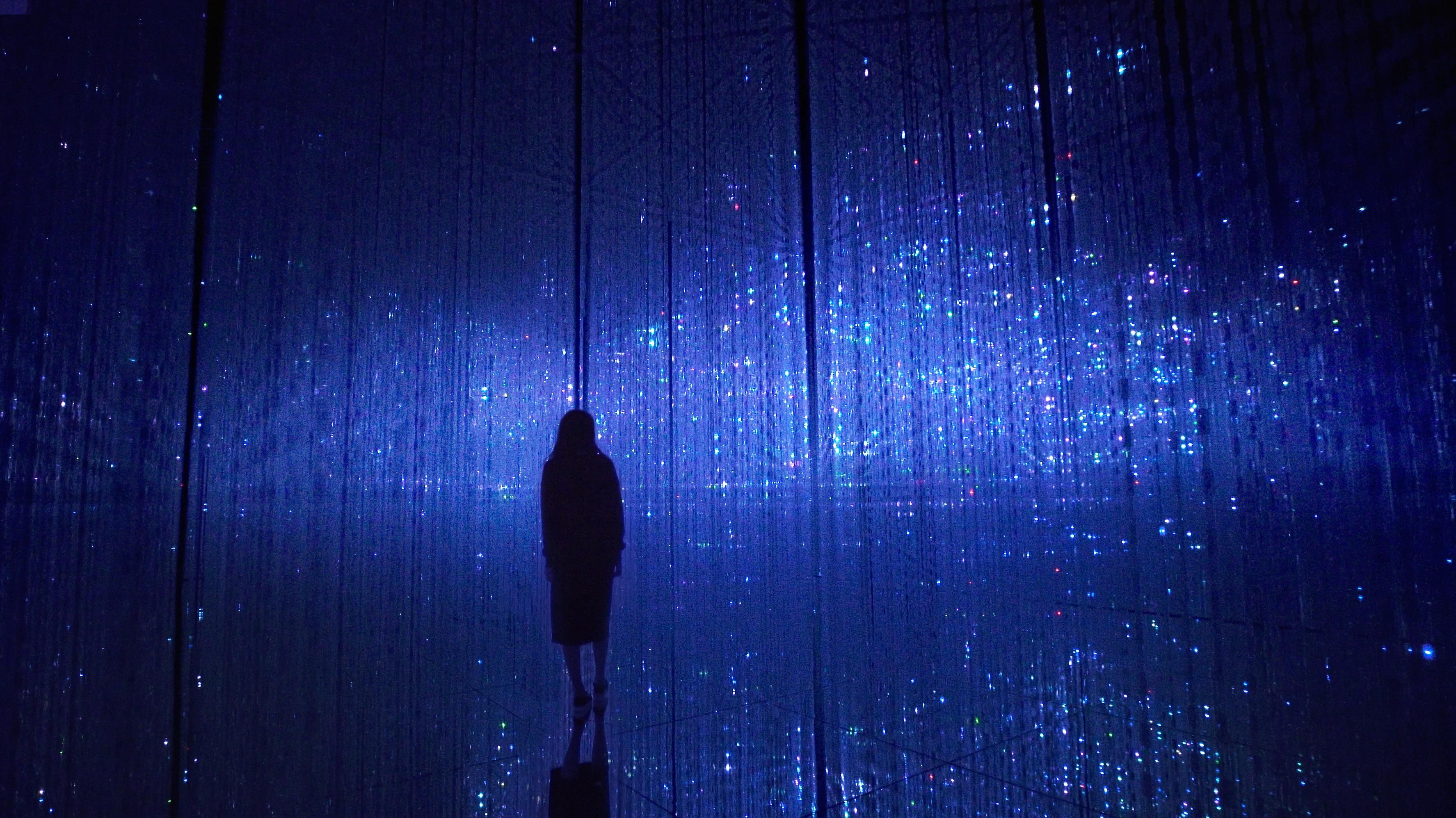 通路の《The Way of the Sea: Flying Beyond Borders》が、《Infinite Crystal World》の入口から入ってくると、この作品ははじまる。作品が終わると、《The Way of the Sea: Flying Beyond Borders》が入口から出て、通路に戻っていく。