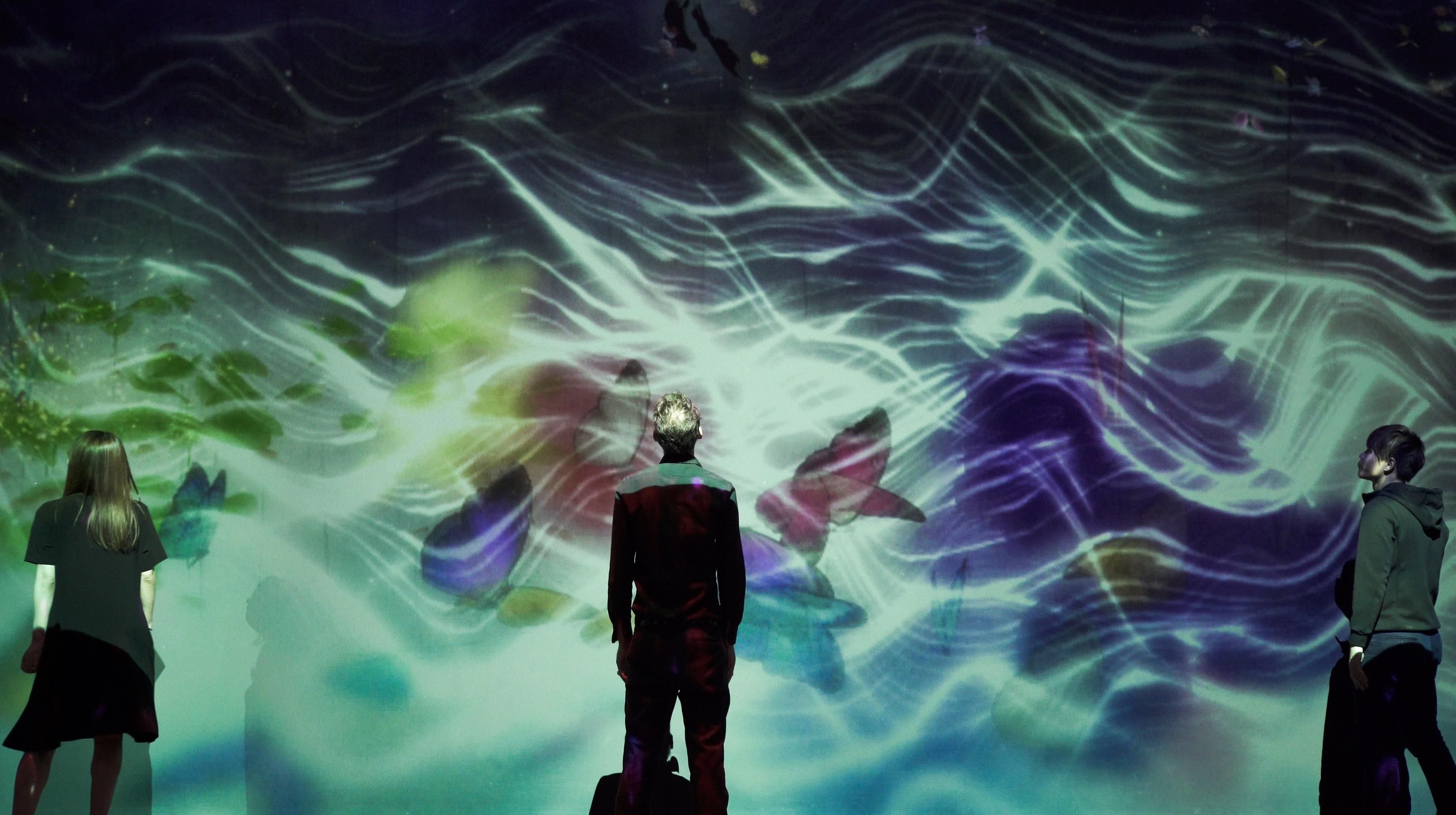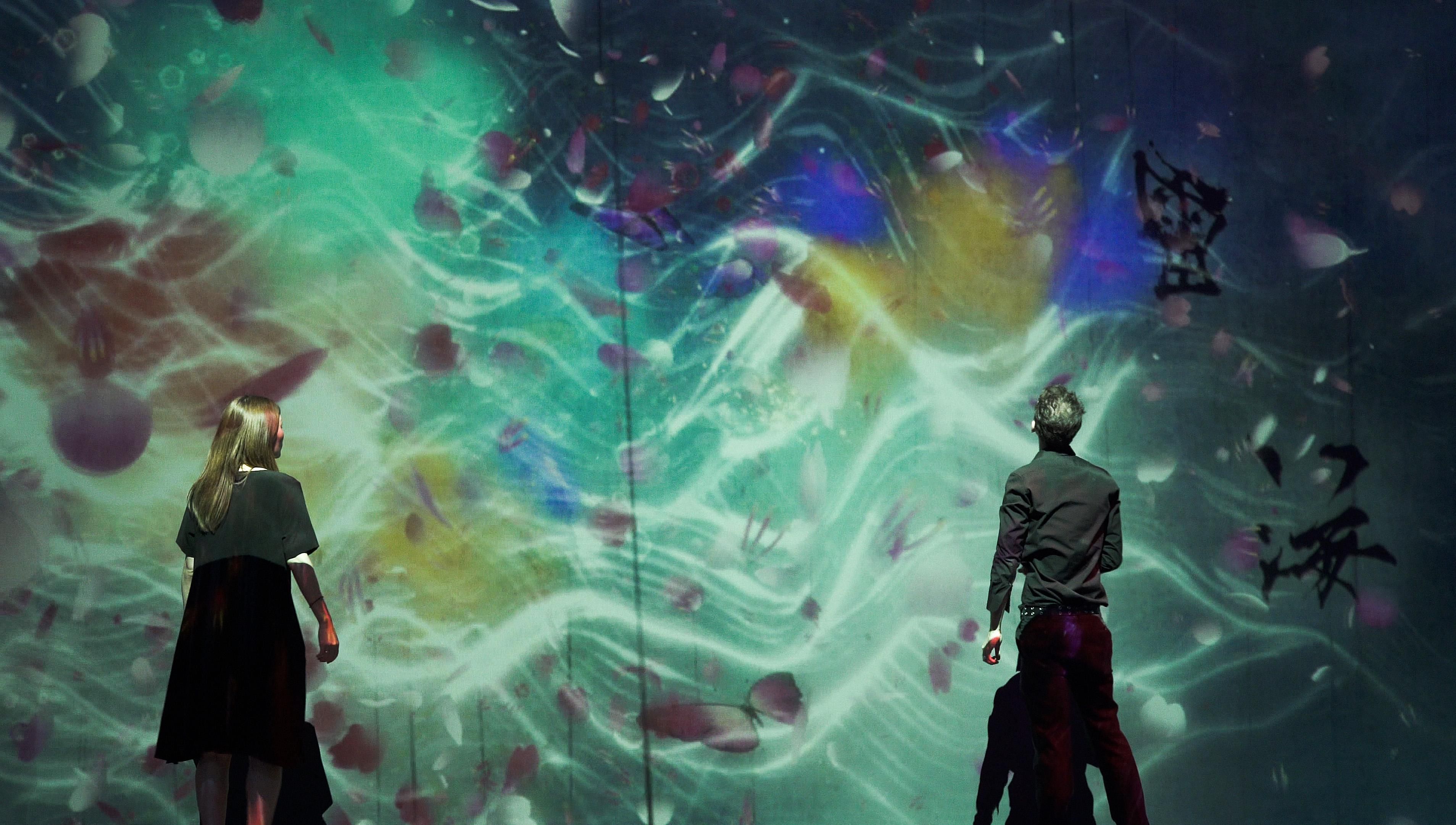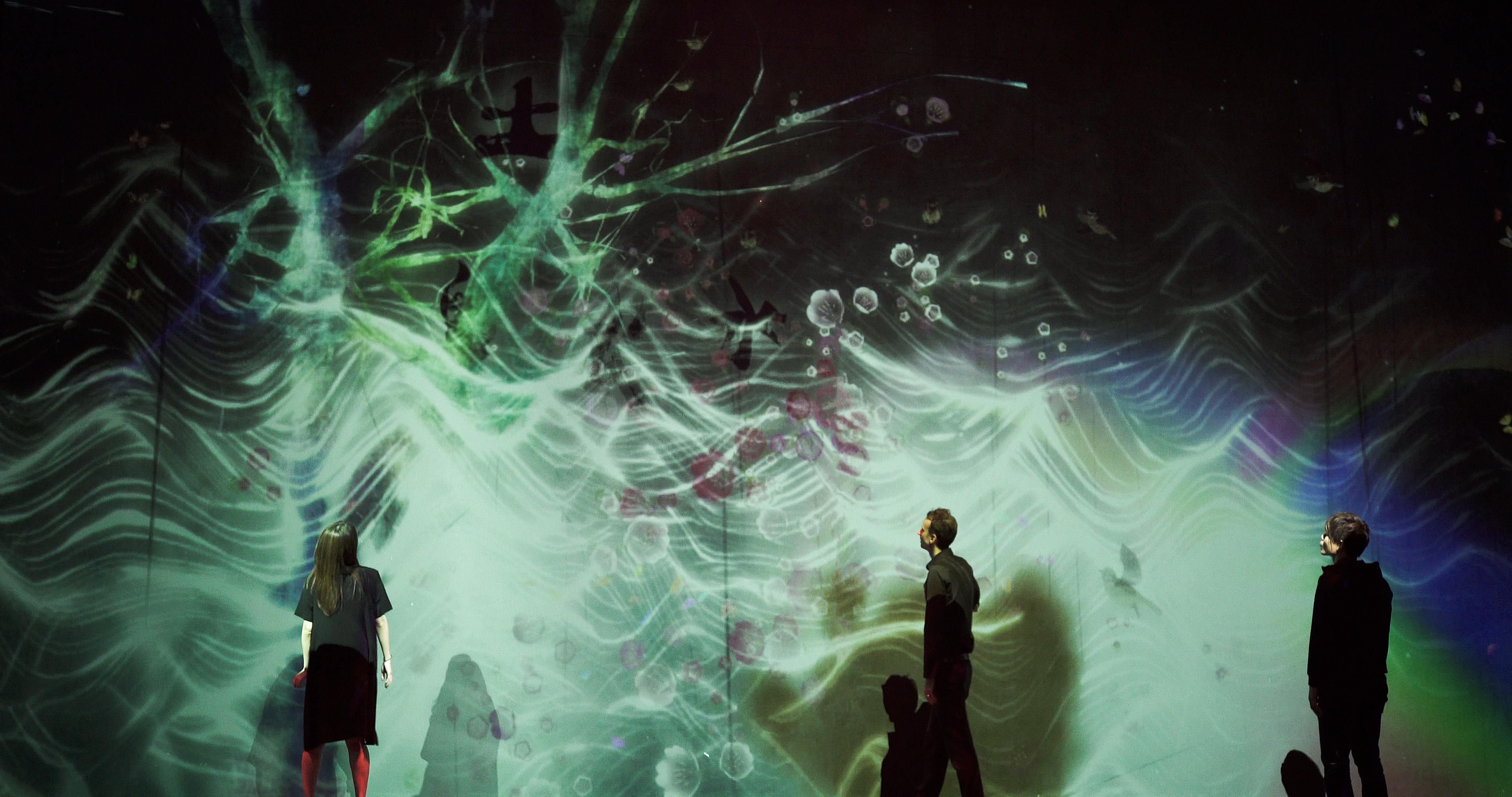 Sisyu + teamLab, 2018, Interactive Digital Installation, Endless, Calligraphy: Sisyu, Sound: Hideaki Takahashi