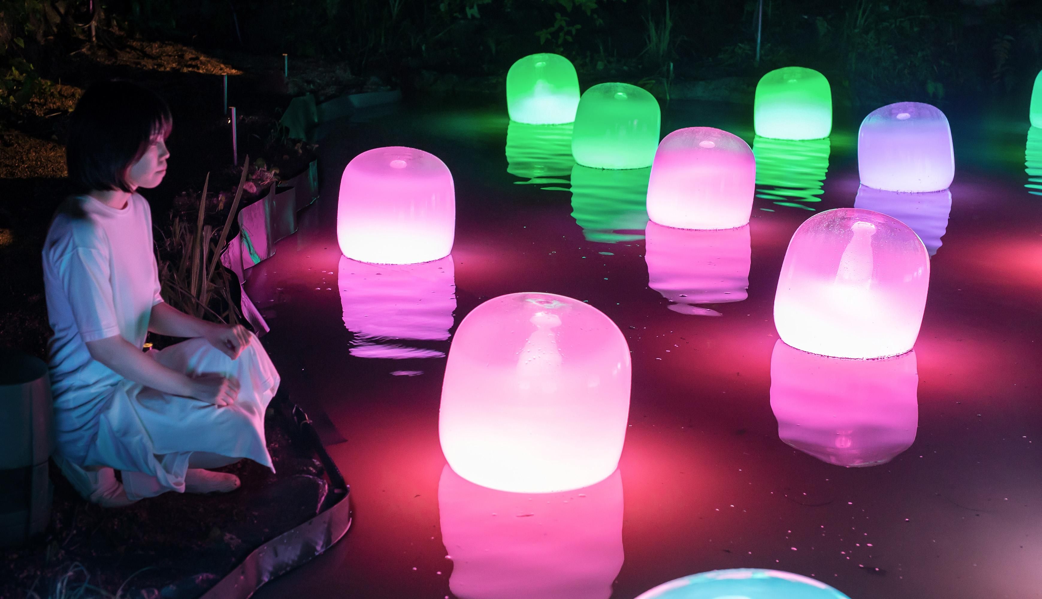 teamLab, 2019, Interactive Installation, Murano Glass, LED, Endless, Sound: Hideaki Takahashi, Production Support: Hirohito Saito (OryZa Design), Shinya Yoshida (SYD INC.)