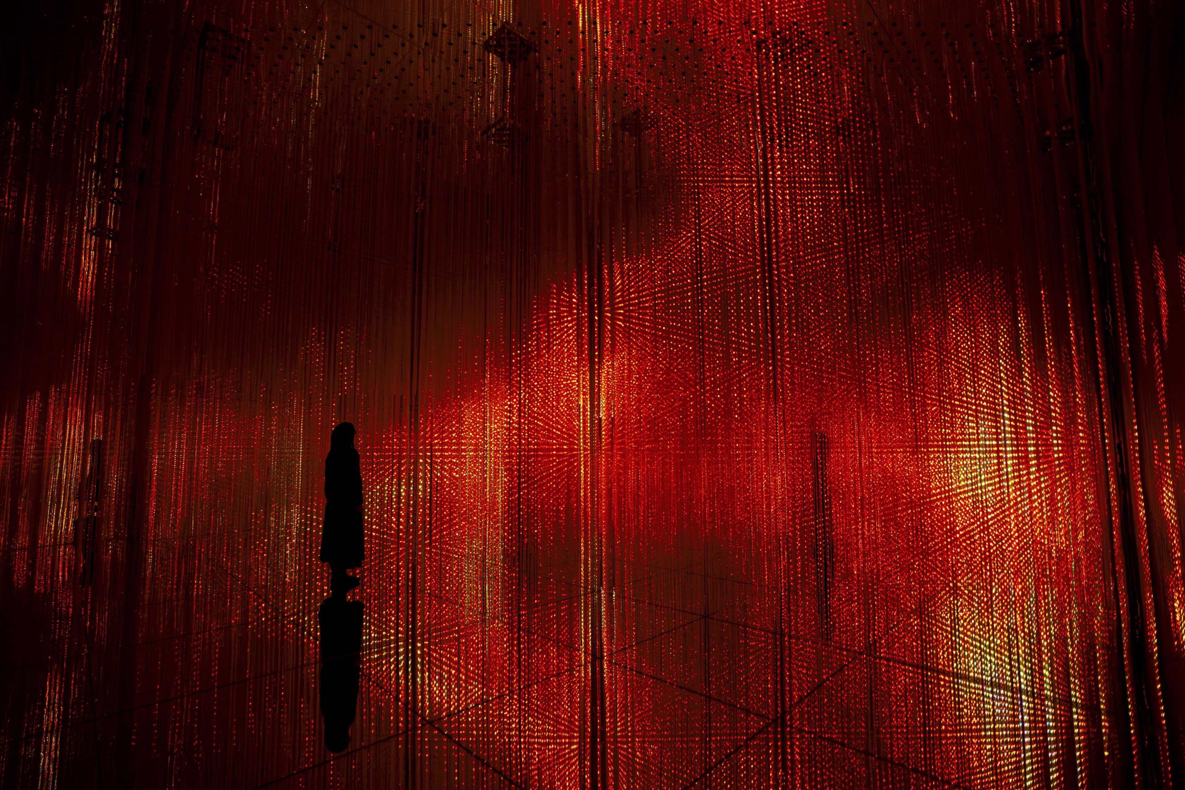 点描は、点の集合で絵画表現を行ったものだが、これは、光の点の集合で立体物を創っている。光の彫刻群が、無限に広がる。