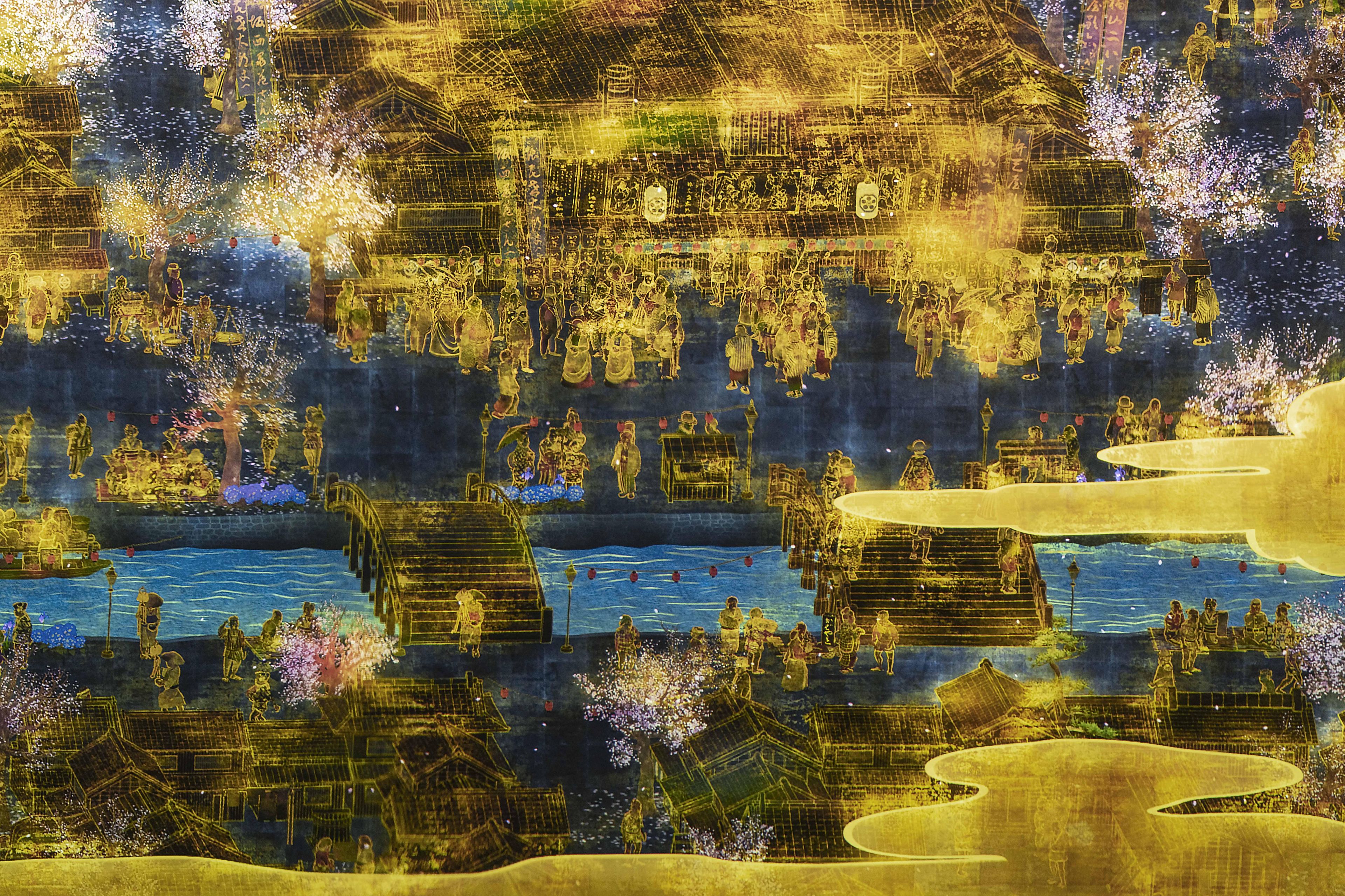 人々の生活も、現実の時間帯や天候によって常に変わりながら、季節とともに祭や行事が行われていく。日々、様々な物語が加わっていきながら、人々の営みが恒久的に続いていく。