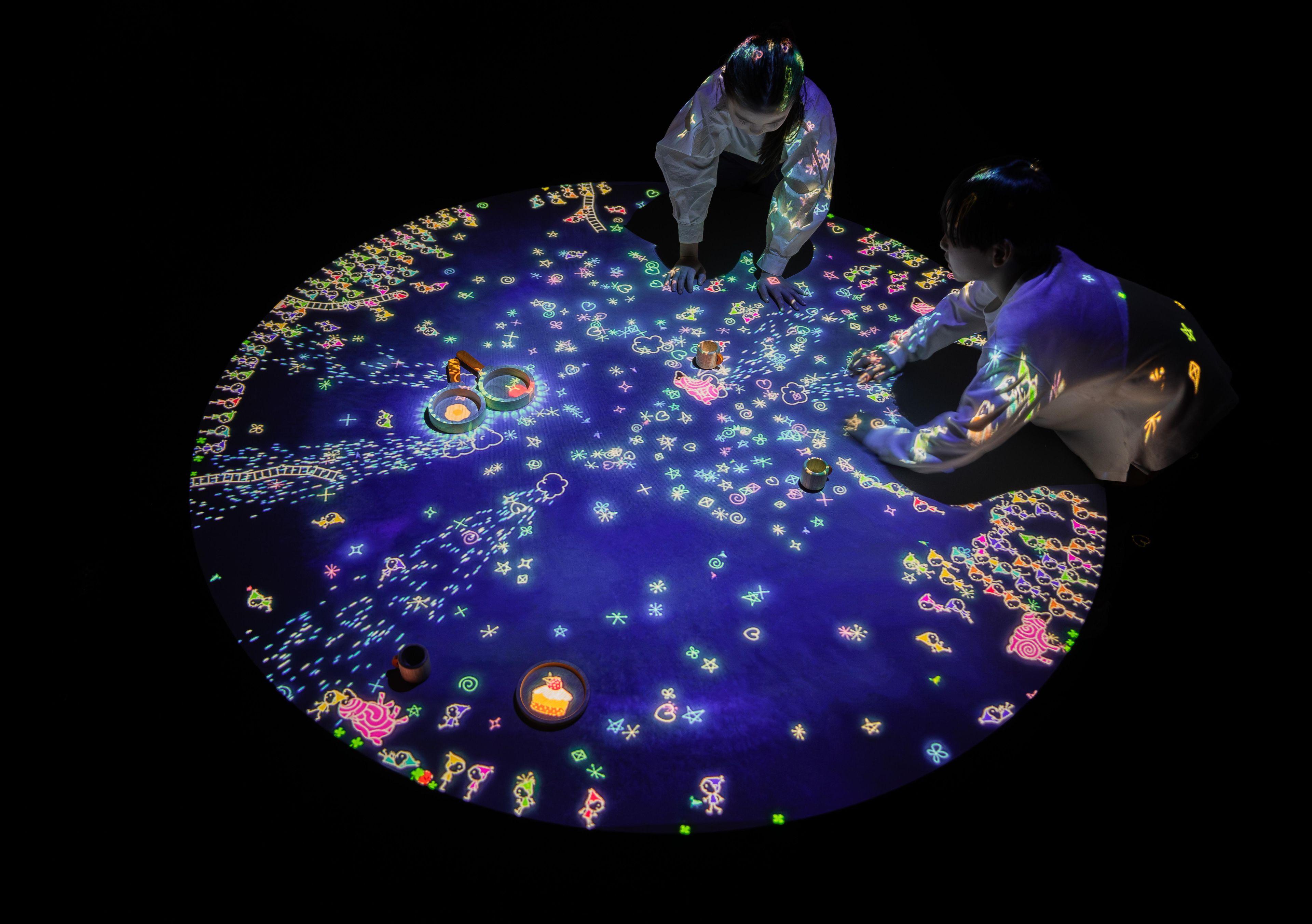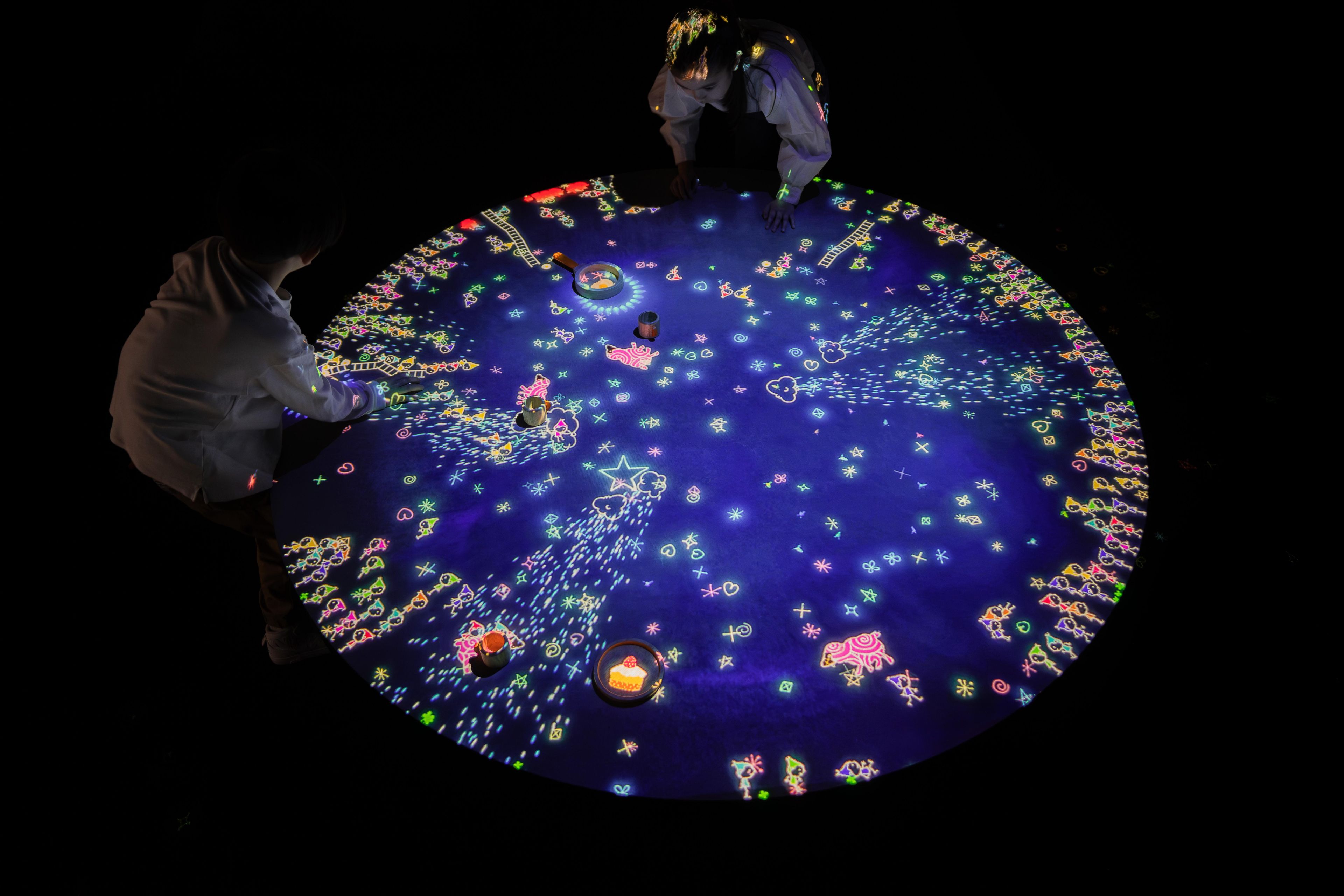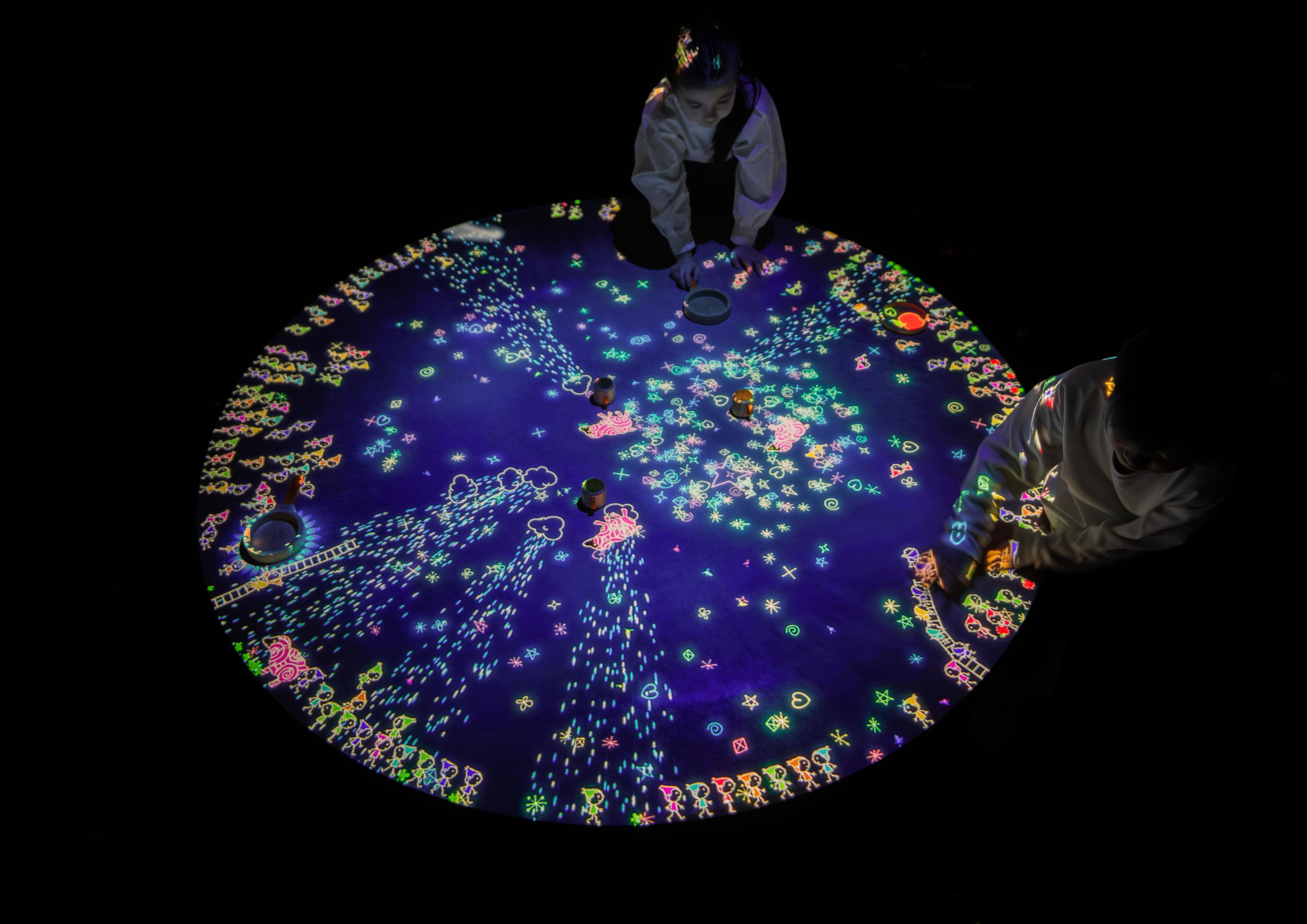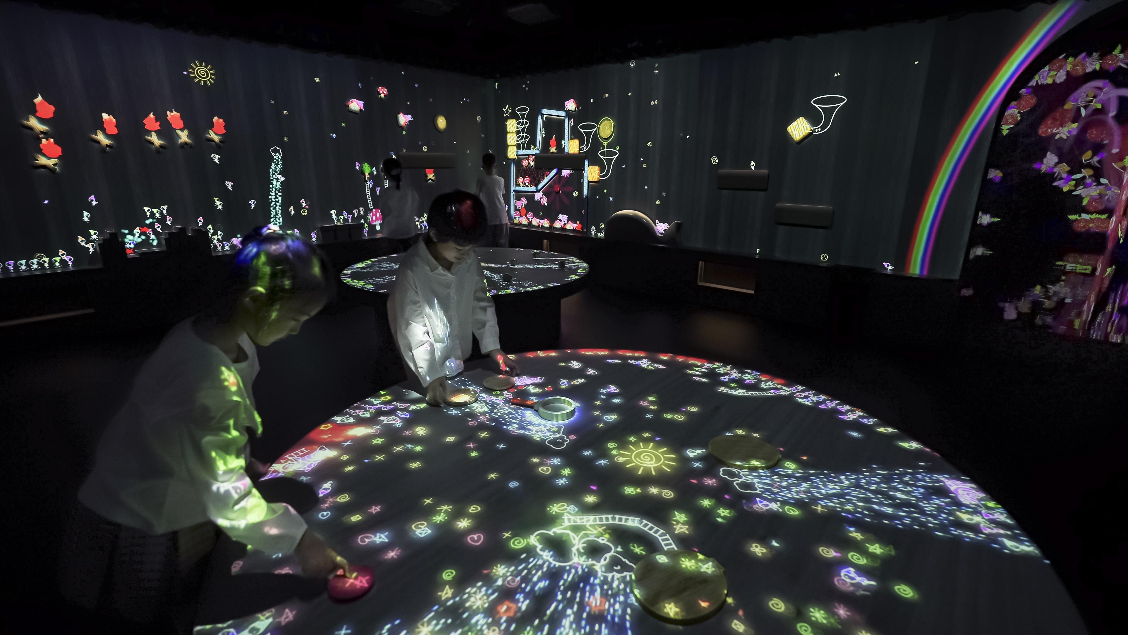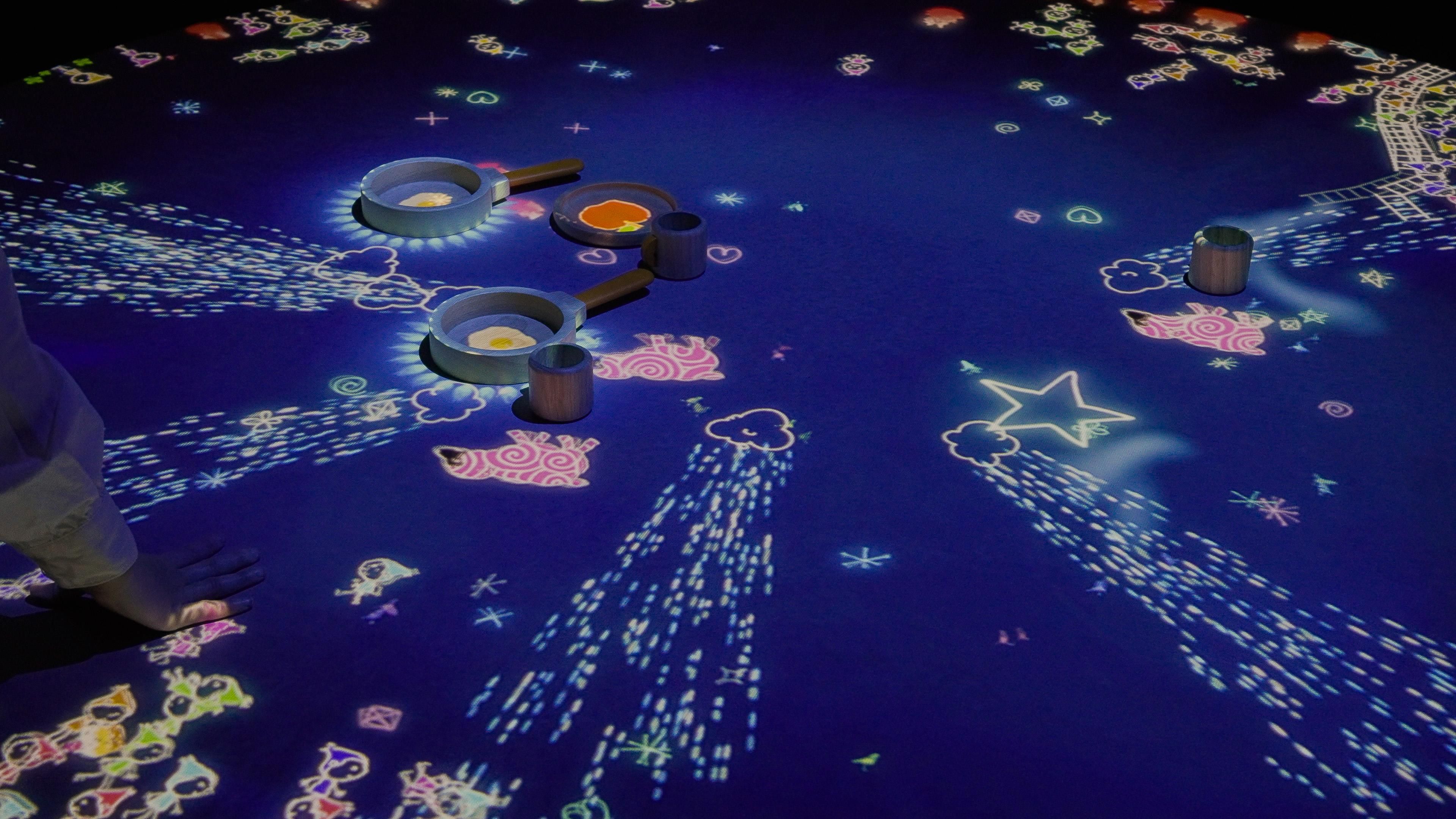 テーブルの上に手を置いたり、物を置いたりすると、こびとたちは気づいて、飛び乗ってくる。