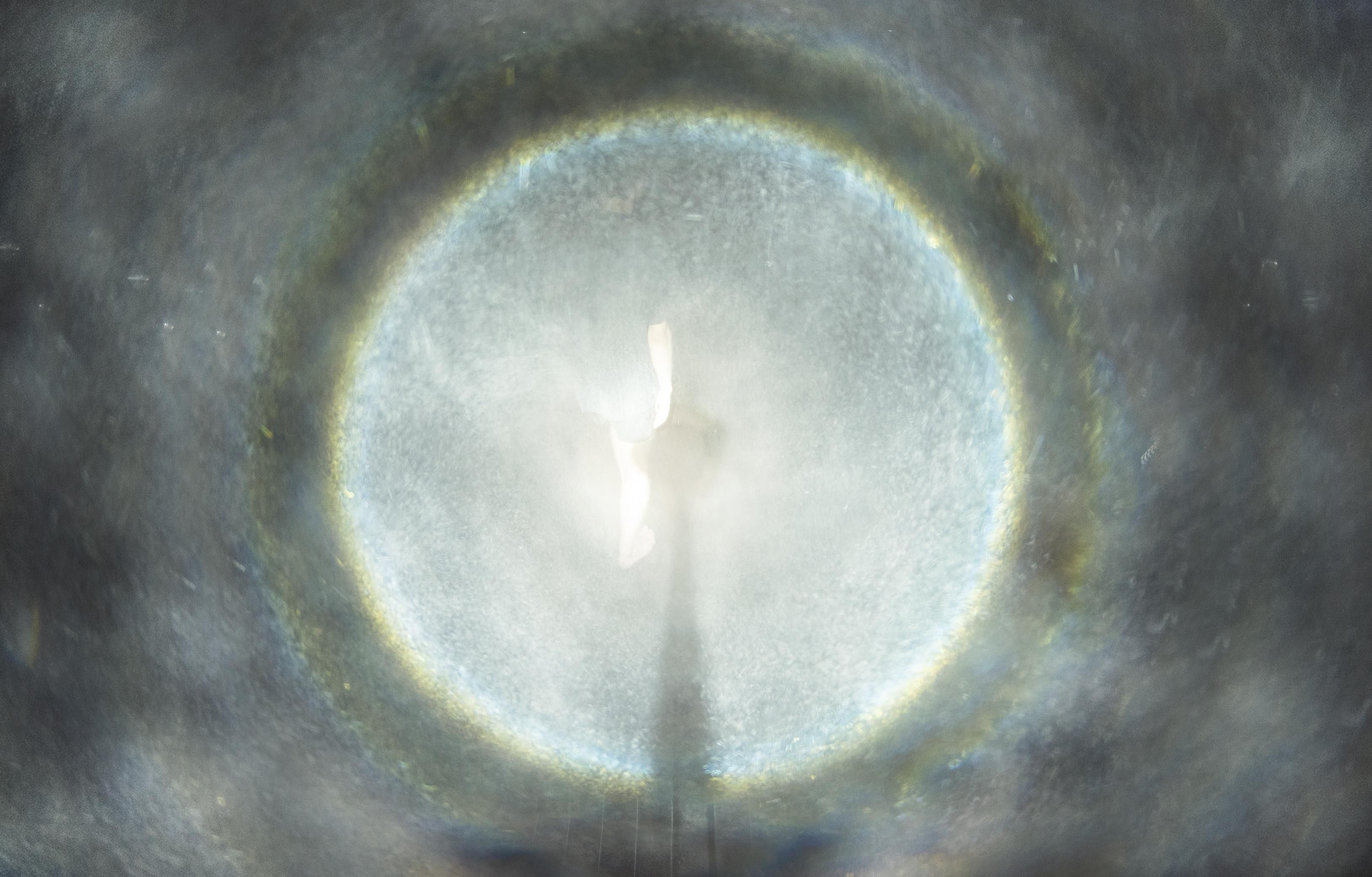 この光の円は、ゆがみない完全な円、真円である。数歩、前に歩き続けても完全な真円が続く。