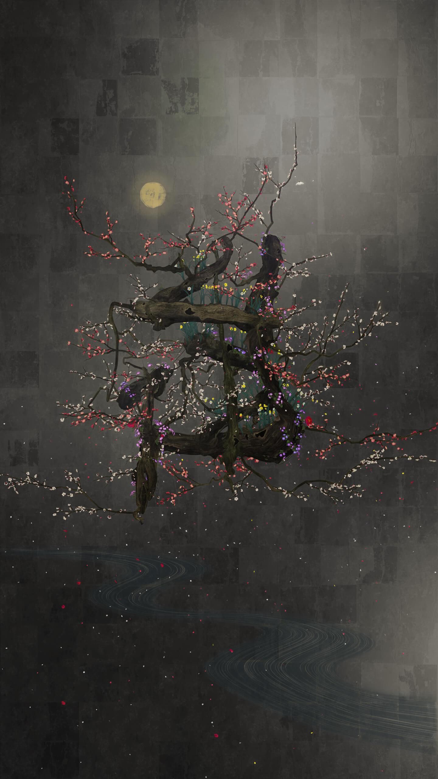 한자 ‘生(날 생)’을 ‘공서(空書)’로 입체적으로 써 나간다. ‘생(生)’은 삶이자 살아 있음을 뜻한다. ‘공서’란 teamLab이 초기부터 계속해 오는 작업 방식으로, 빈 허공에 쓰는 붓글씨다. 먹물을 머금은 붓의 궤적이 지닌 깊이와 속도, 힘의 강약 등을 새롭게 해석해 공간 속에 입체로서 재구축하고, teamLab의 ‘초주관 공간’ 논리 구조에 따라 다시 평면화한다. 결과적으로 붓글씨가 평면과 입체 사이를 끊임없이 오간다.