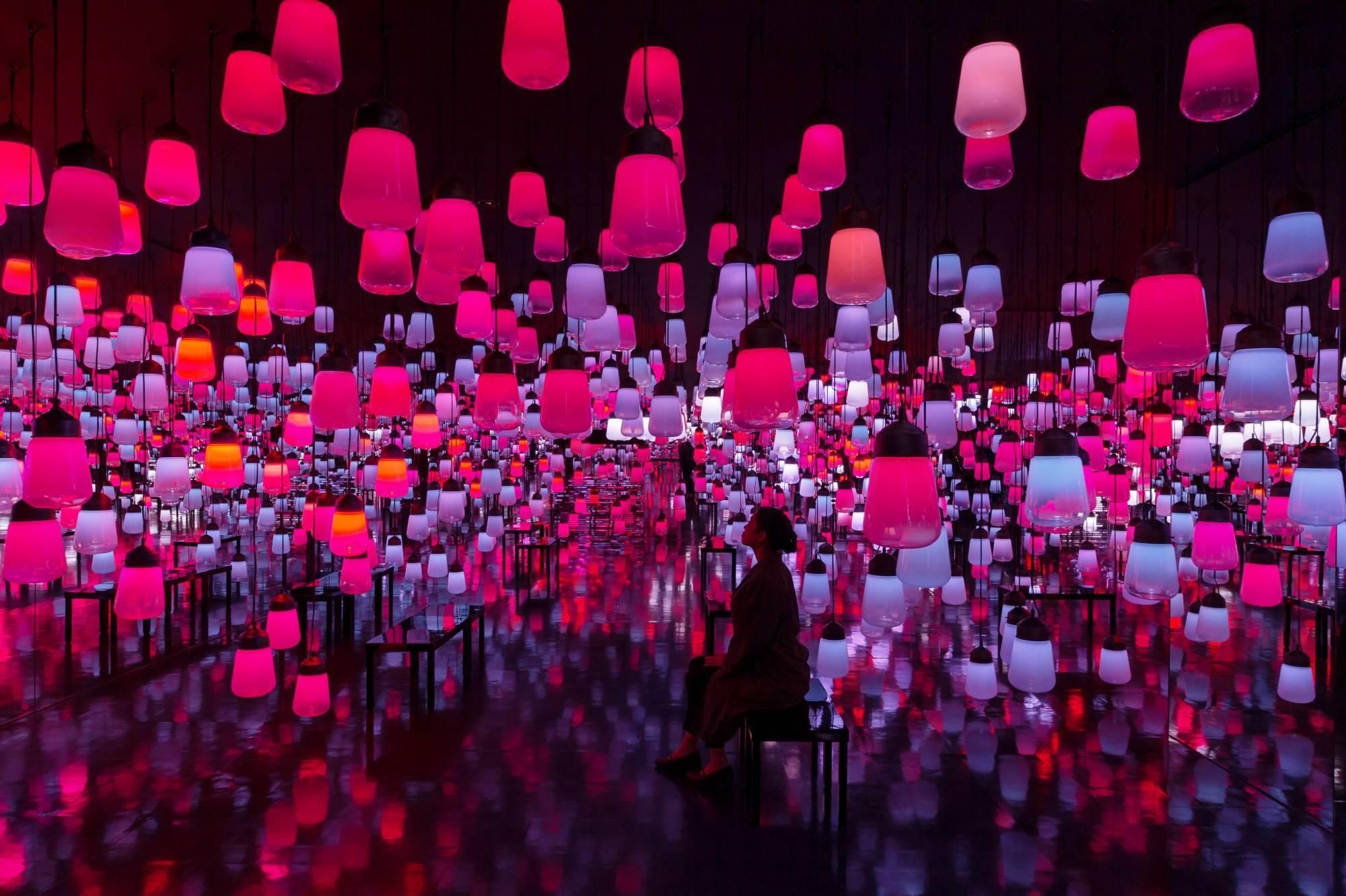 teamLab, 2018, from the series Forest of Resonating Lamps: One Stroke, 2016-, Interactive Installation, Endless, Sound: Hideaki Takahashi, Production Support: Hirohito Saito (OryZa Design), Shinya Yoshida (SYD INC.)