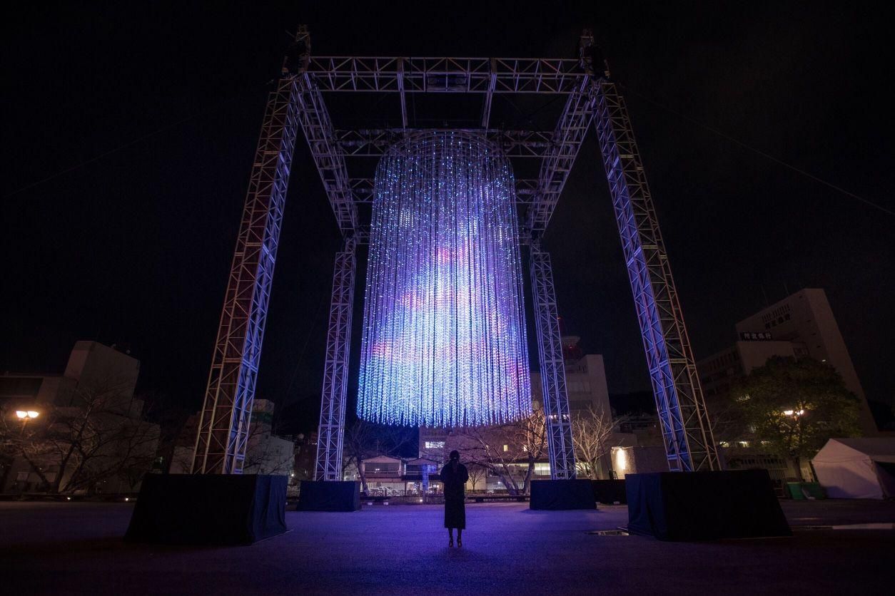 teamLab, 2013-, Interactive Installation of Light Sculpture, LED, Endless, Sound: Hideaki Takahashi
