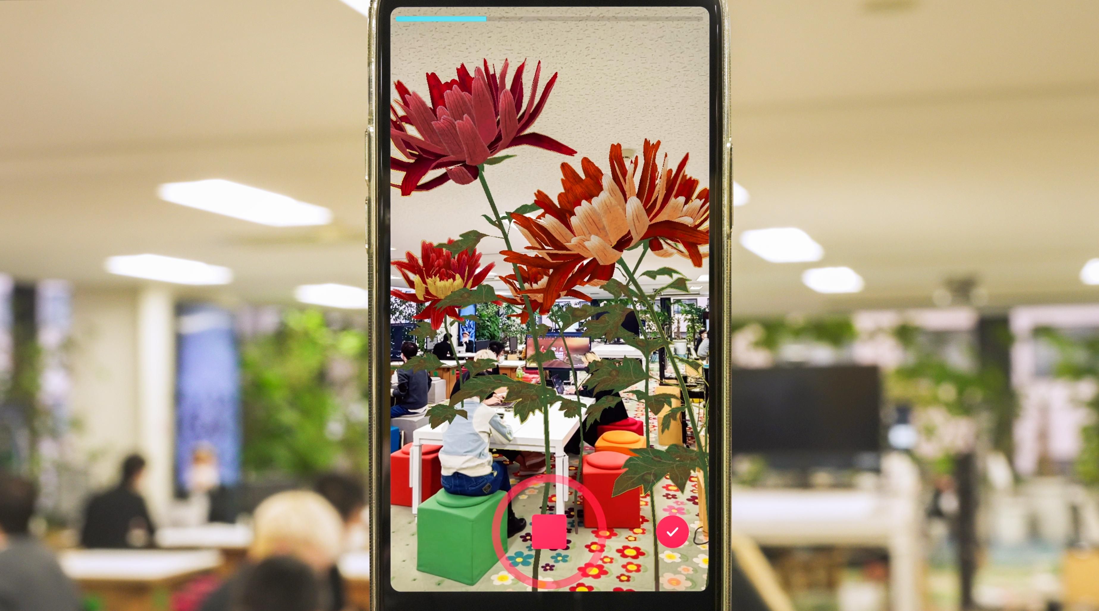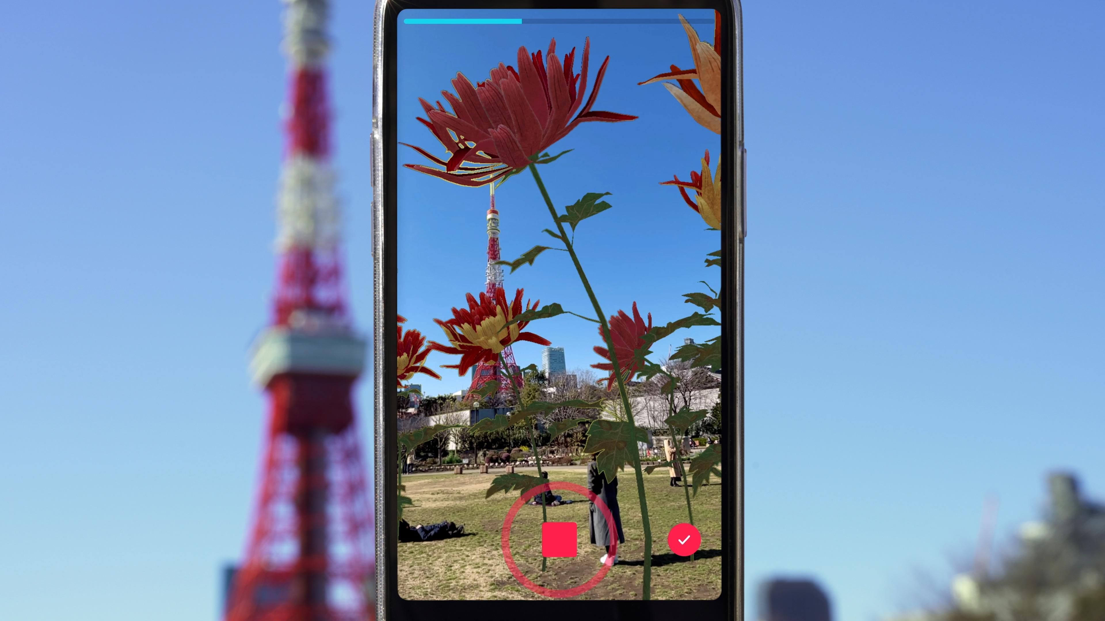 teamLab and TikTok, 2021, Augmented Reality, H: Flowers Bloom According to the Size of the Space