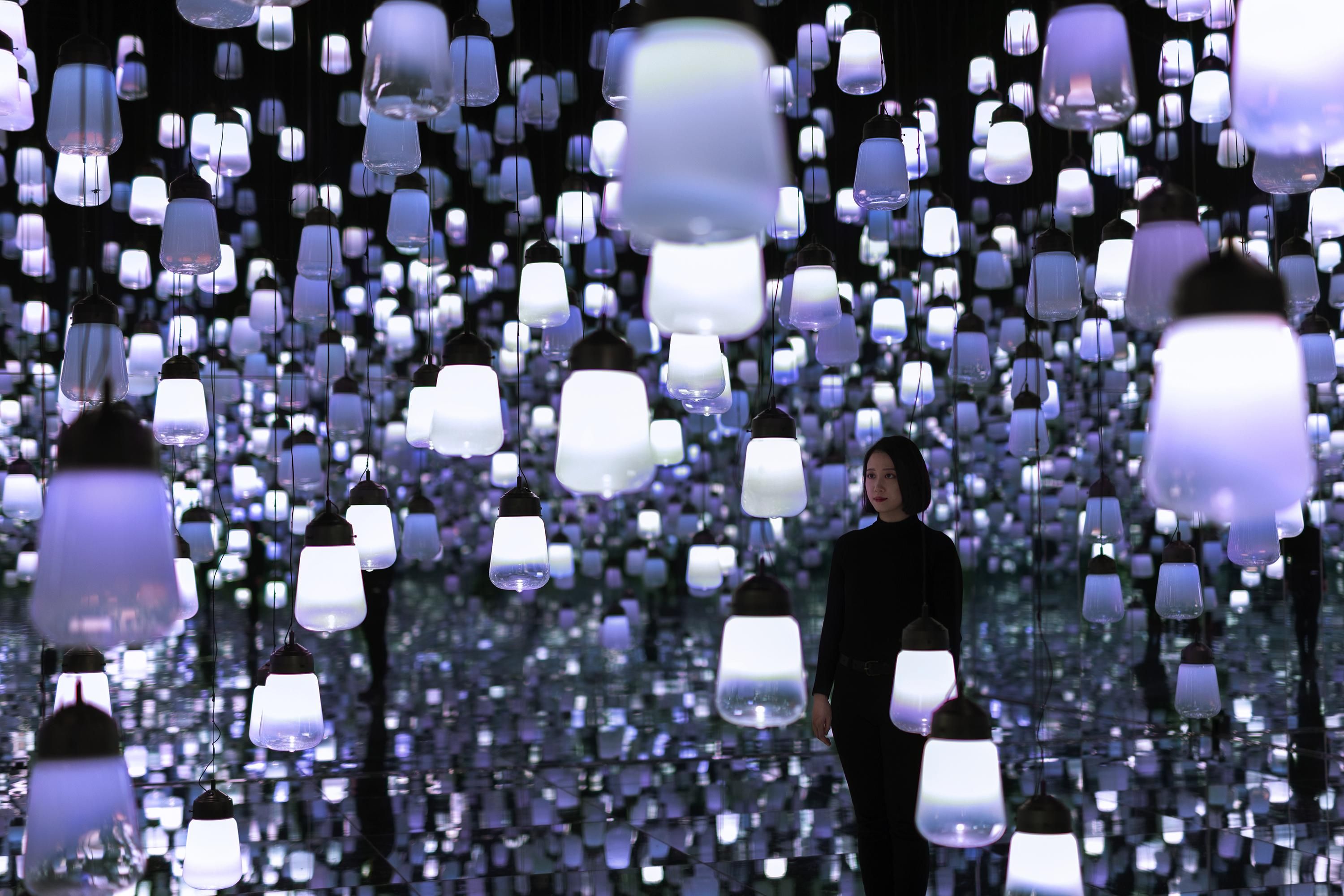teamLab, 2019, Interactive Installation, Murano Glass, LED, Endless, Sound: Hideaki Takahashi, Production Support: Hirohito Saito (OryZa Design), Shinya Yoshida (SYD INC.)