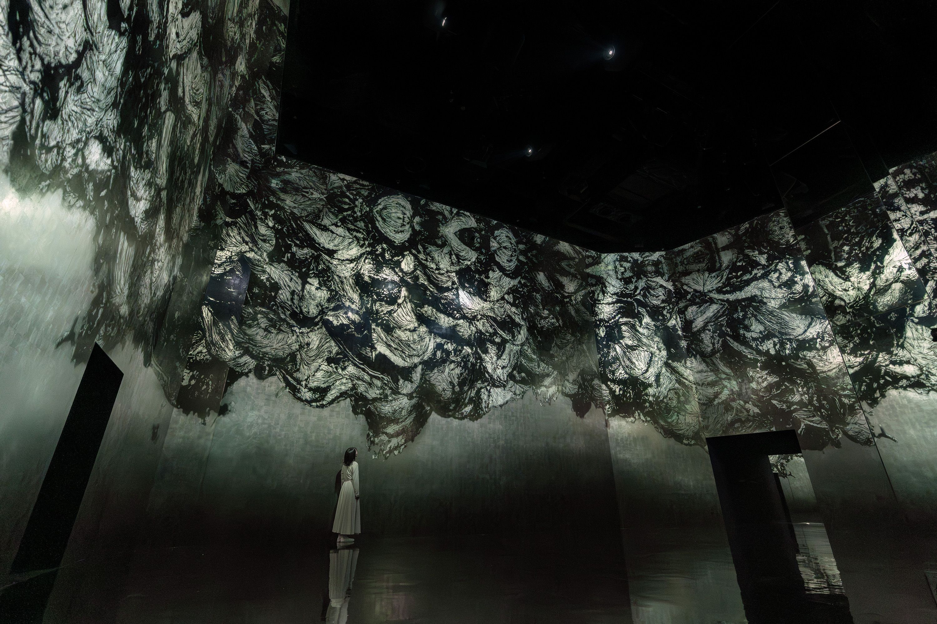 Not bound to a single point, the viewer moves their body and lets their gaze roam freely, continually re-composing the world of the work as it changes over time, and building pictorial space within themselves.