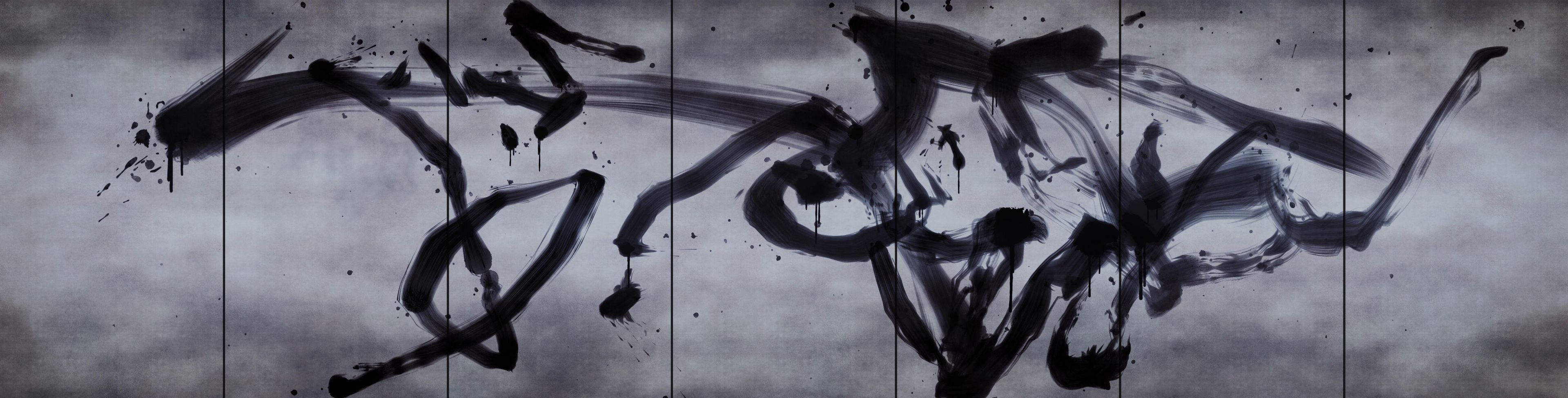 Spatial Calligraphy is a form of calligraphy drawn in space that teamLab has been exploring since it was founded. The artwork reconstructs calligraphy in three dimensional space to express the depth, speed and power of the brush stroke, and that calligraphy is then flattened using the logical structure of space that teamLab calls Ultrasubjective Space. The calligraphy shifts between two and three dimensions.