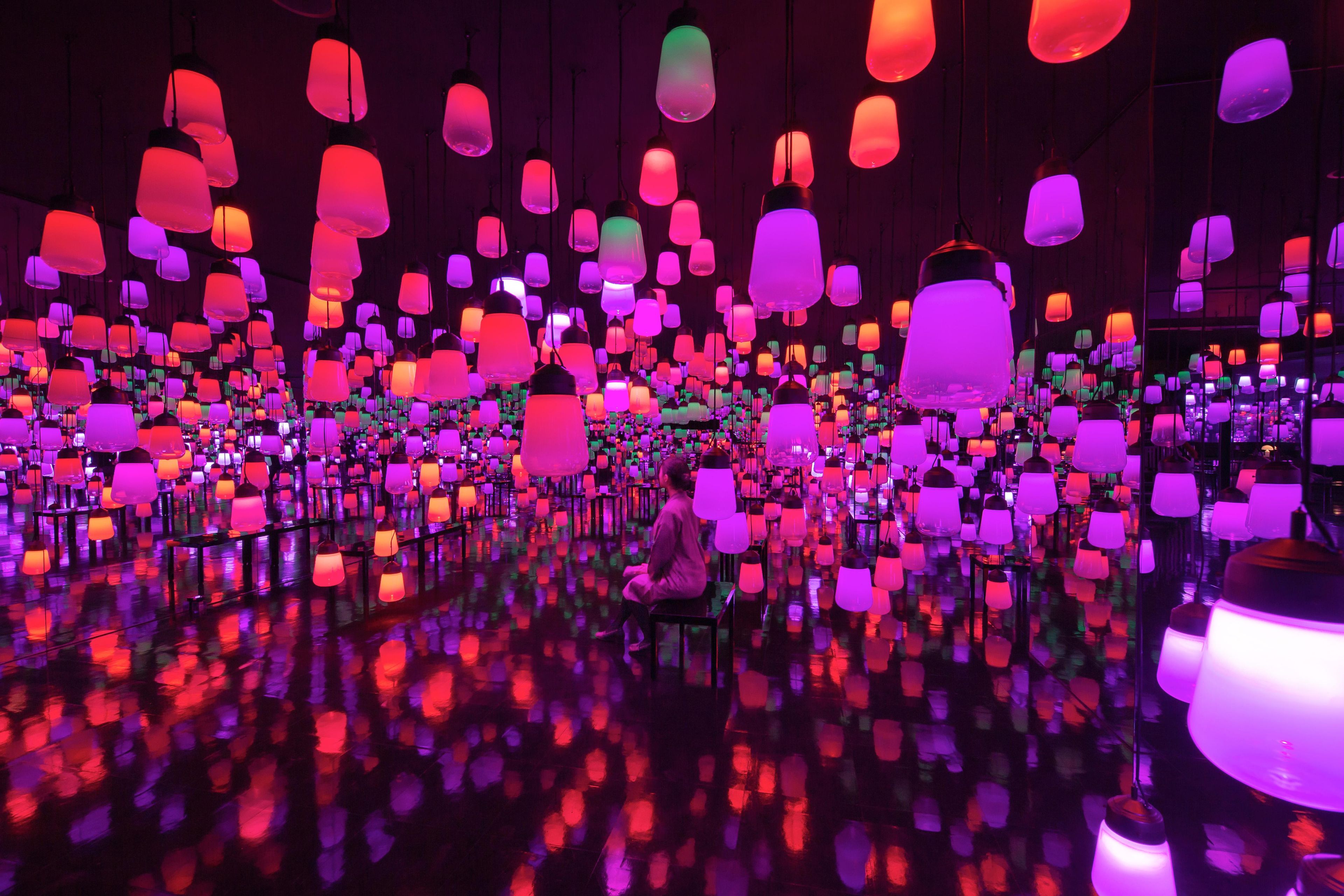 teamLab, 2019, from the series Forest of Resonating Lamps: One Stroke, 2016-, Interactive Installation, Endless, Sound: Hideaki Takahashi, Production Support: Hirohito Saito (OryZa Design), Shinya Yoshida (SYD INC.)