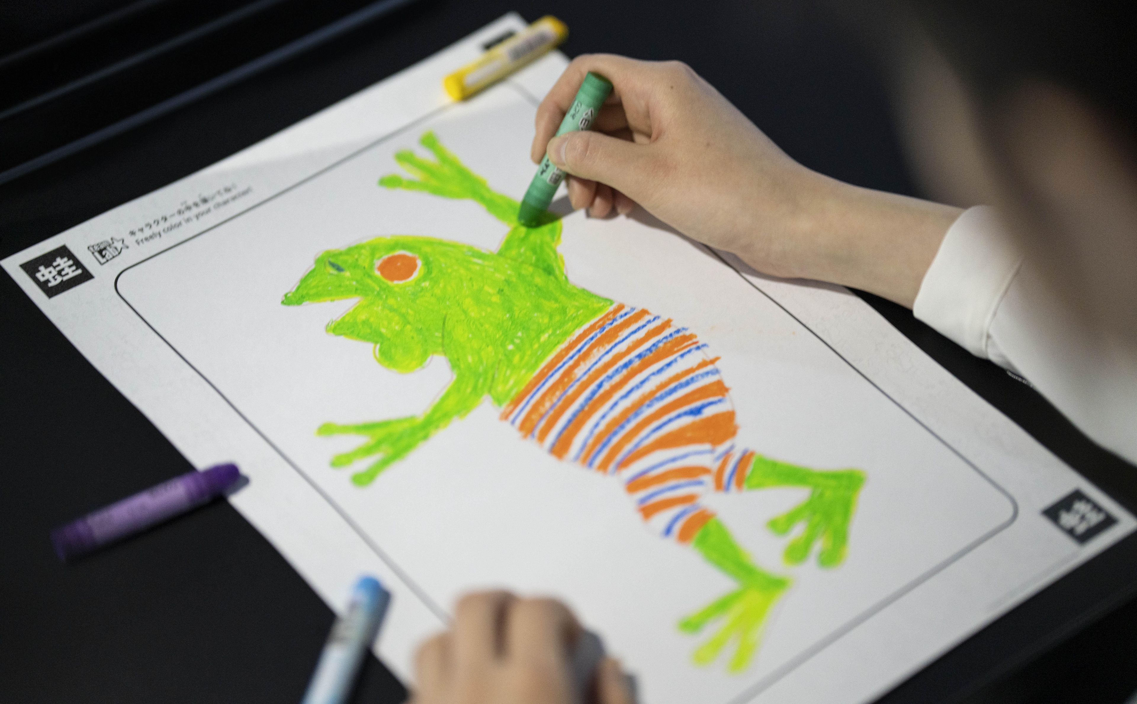 The characters you drew will walk in a line with the characters drawn by people all over the world, and they will start to walk around on TVs throughout the world. They will also walk life-size through the basement of GINZA 456.