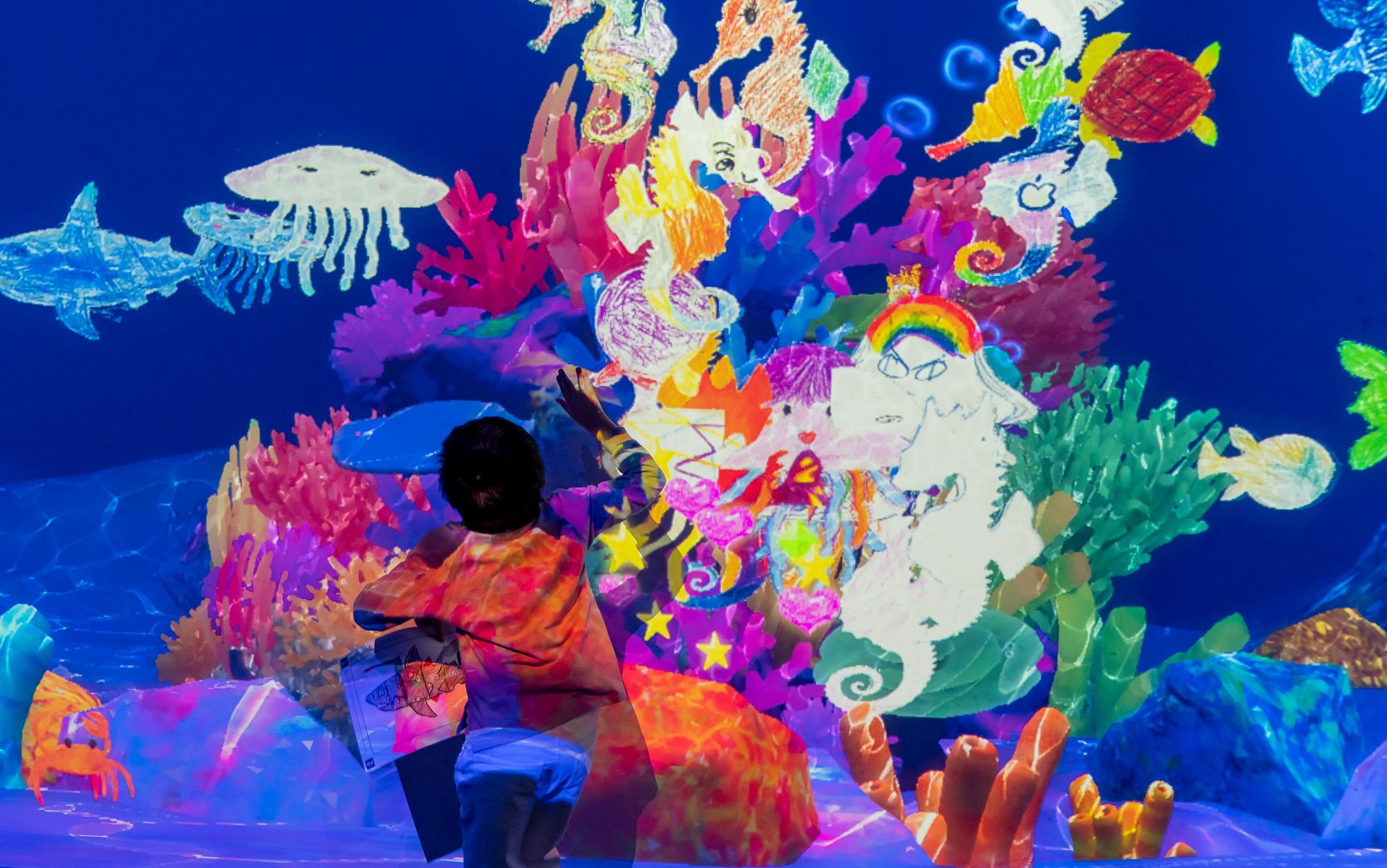 Observe the drawing come to life as the sea creature swims into the virtual aquarium.4