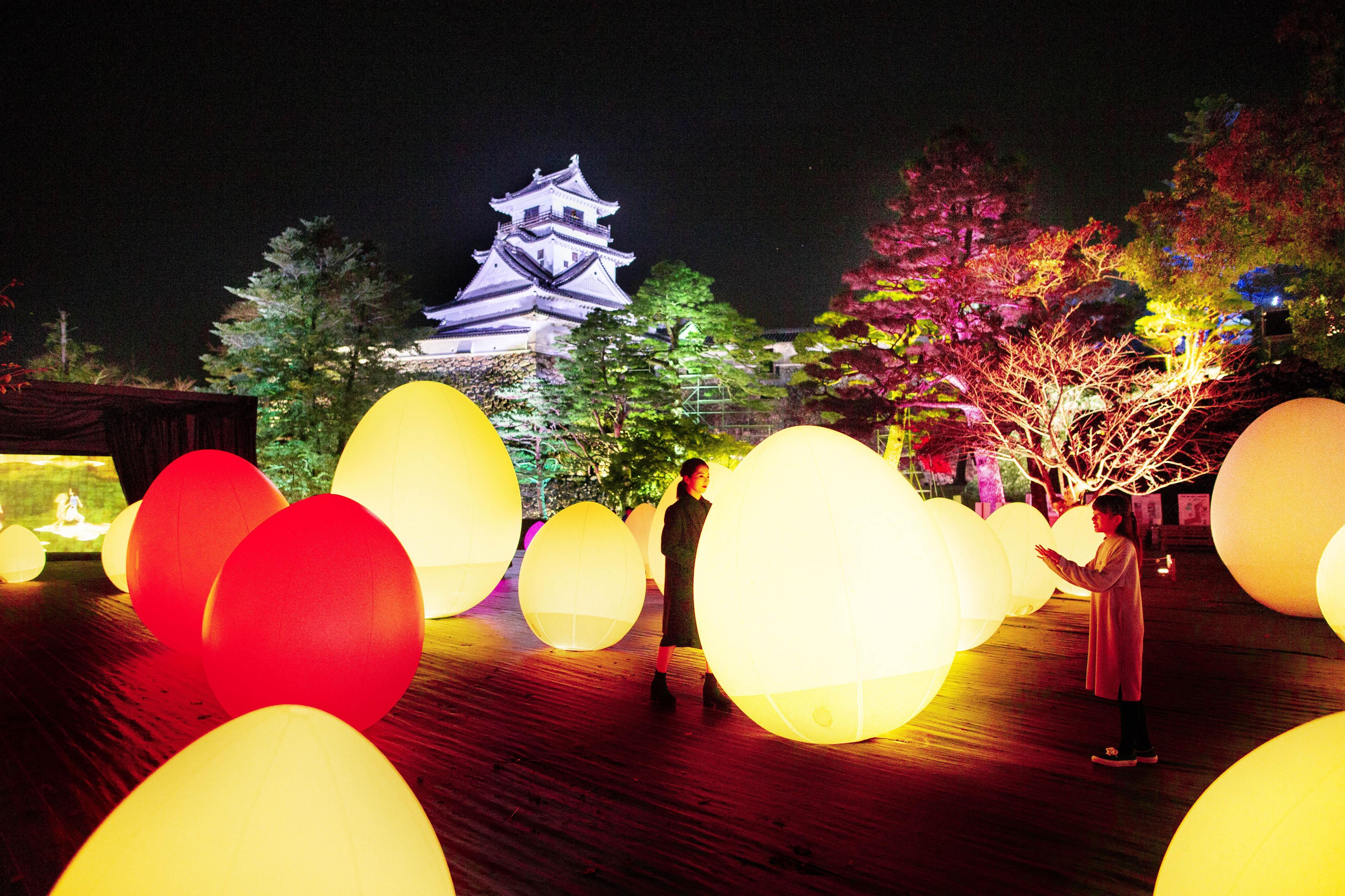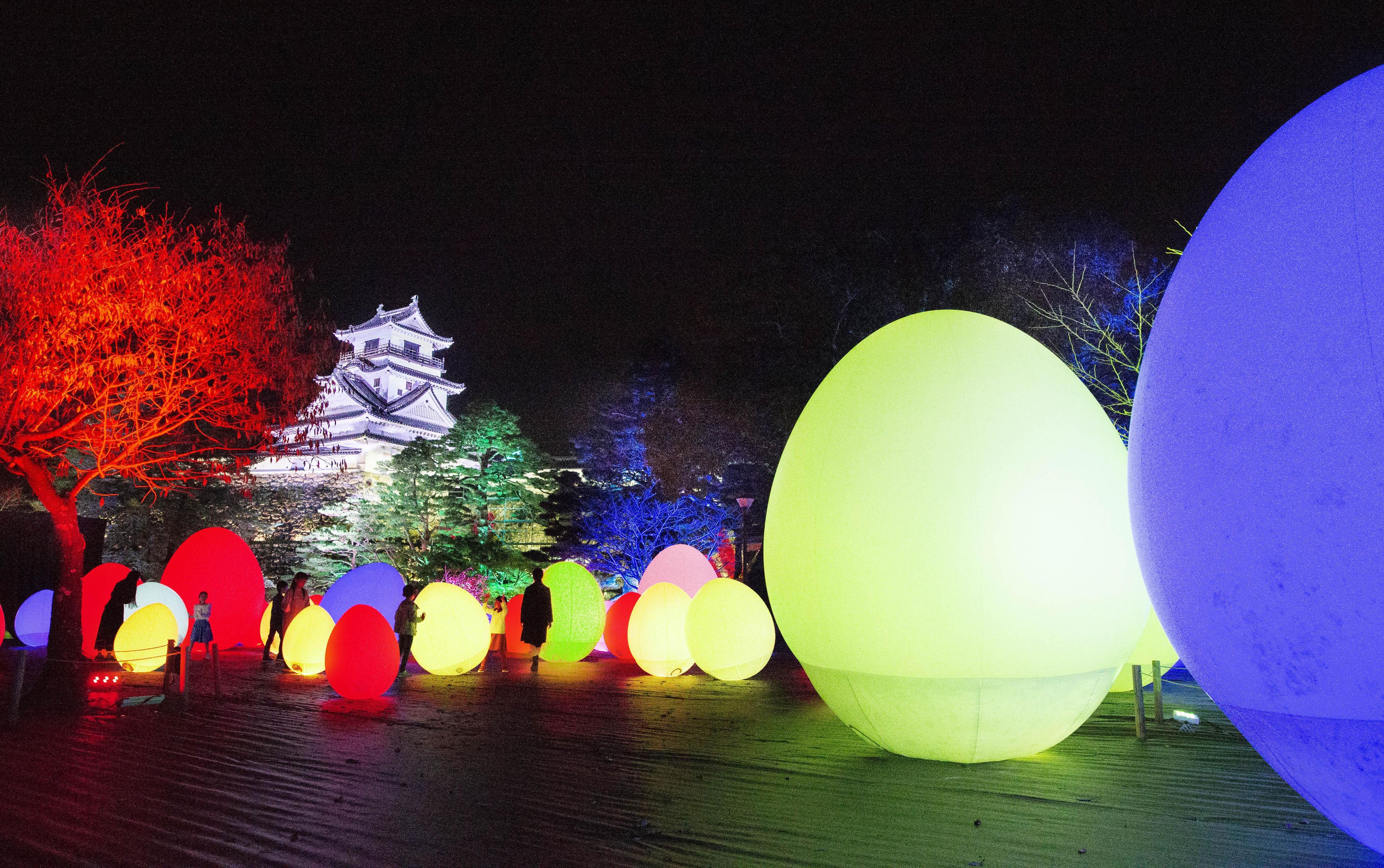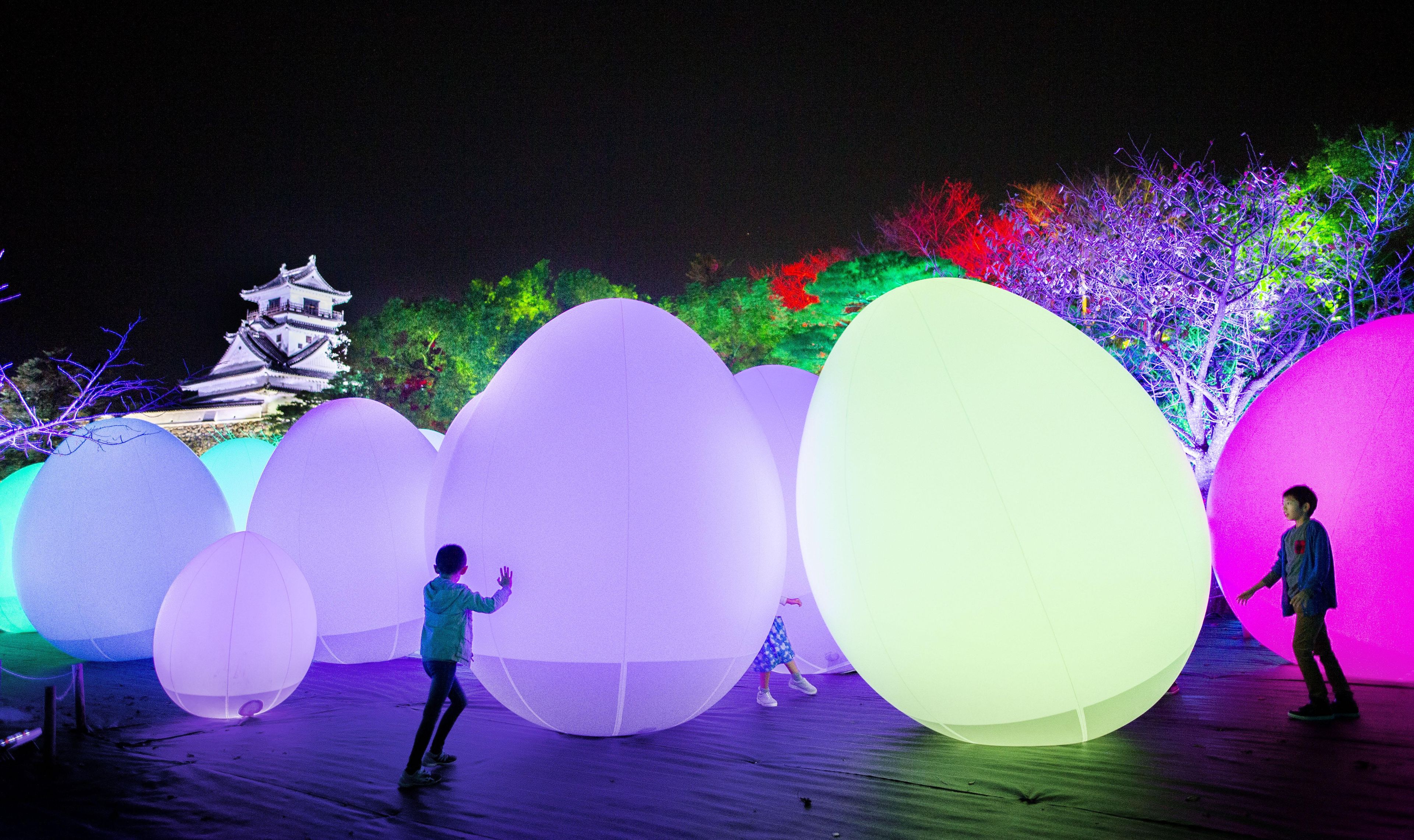When an ovoid is pushed, the color of its light changes, and it emits a sound tone specific to that color. The light resonates out to other ovoids nearby. The sound tone resonates out continuously in the same way as the light, spreading throughout the ovoids in the space.