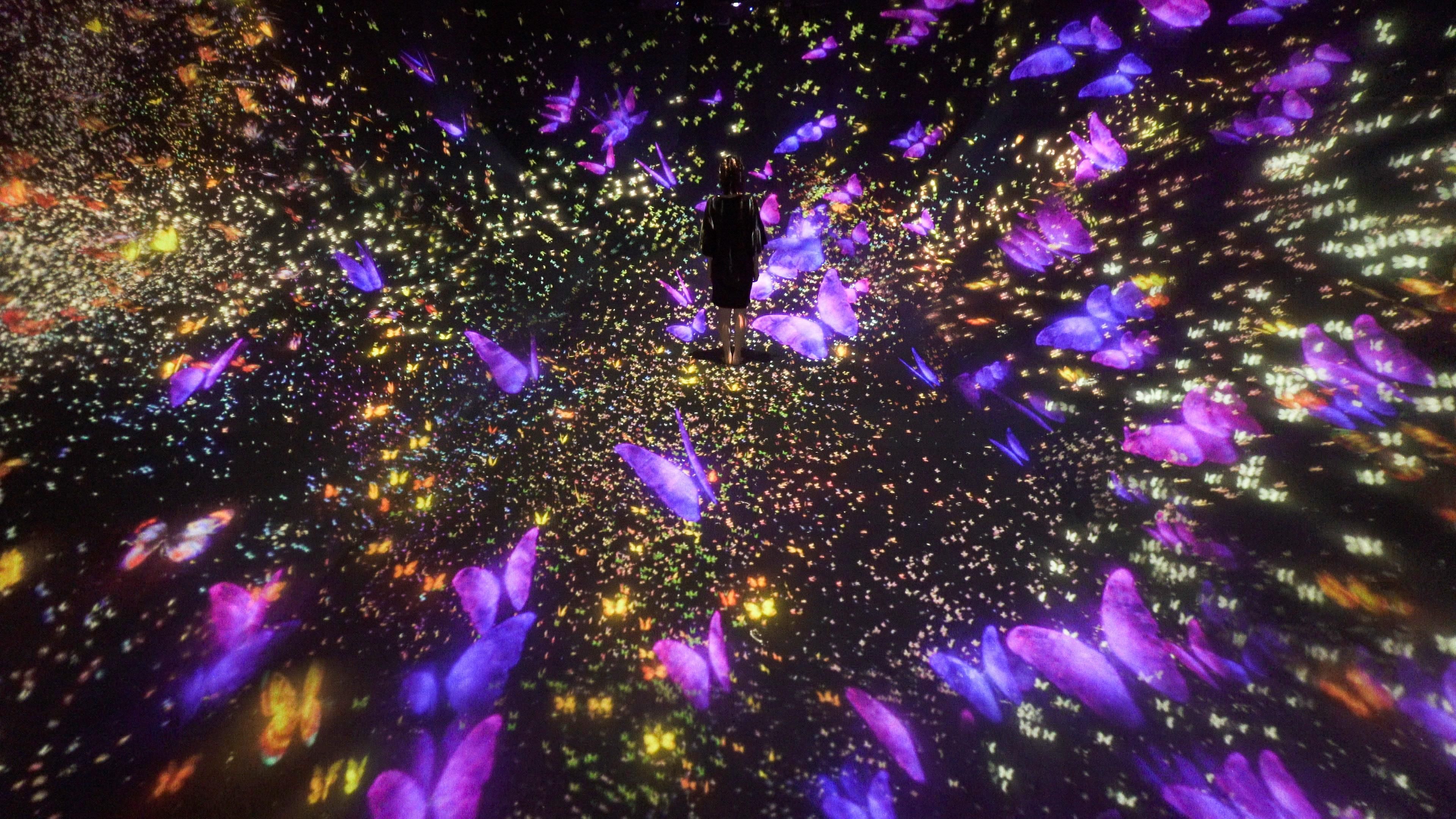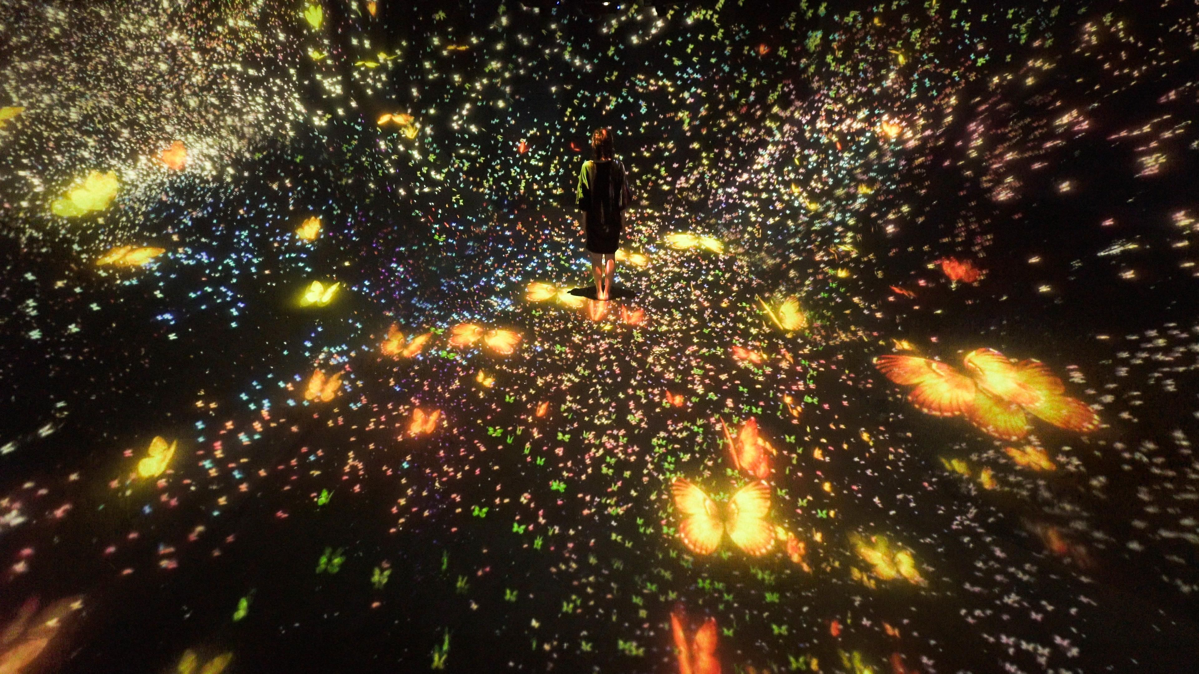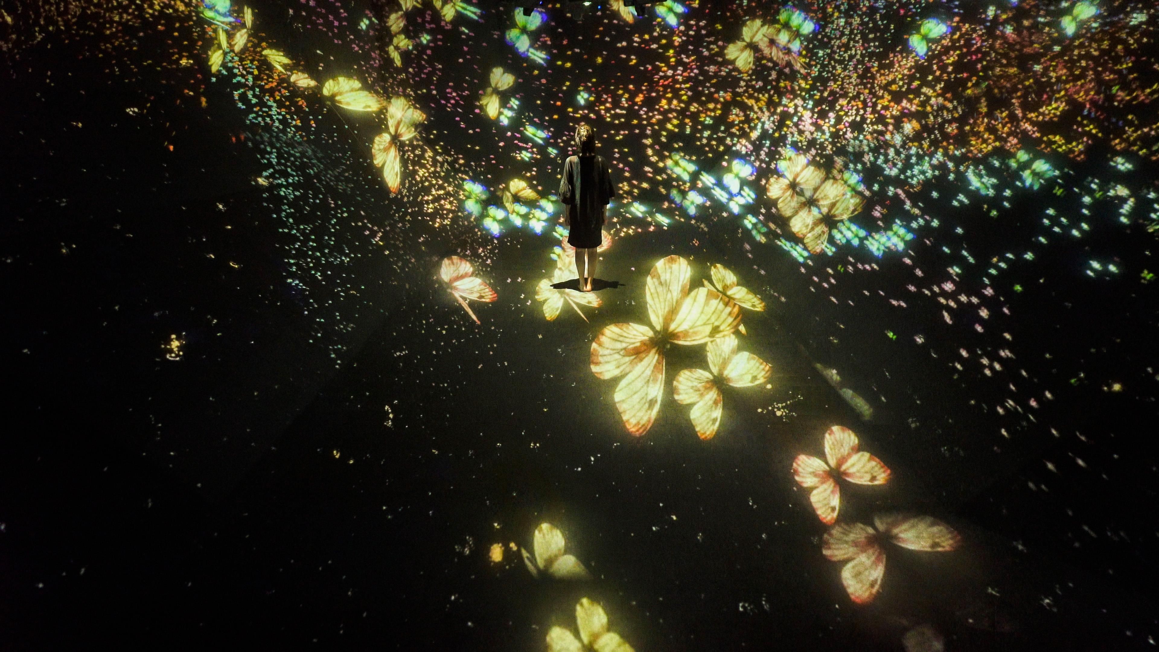 The butterflies are born from people’s touch in the Butterfly House as part of the Flutter of Butterflies Beyond Borders, Ephemeral Life. They transcend the notion of frames, removing the boundaries between artwork spaces as they seamlessly fly through works.