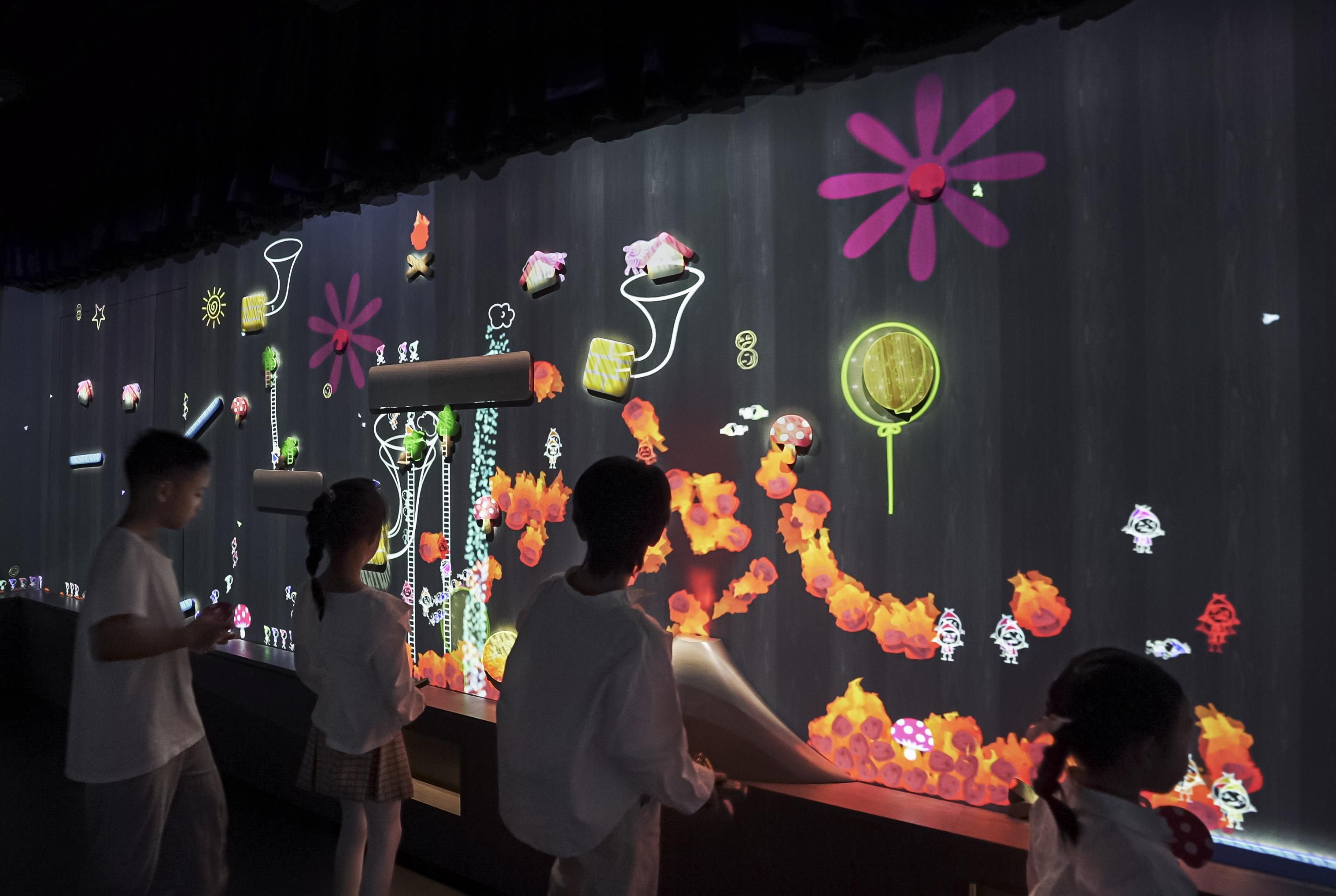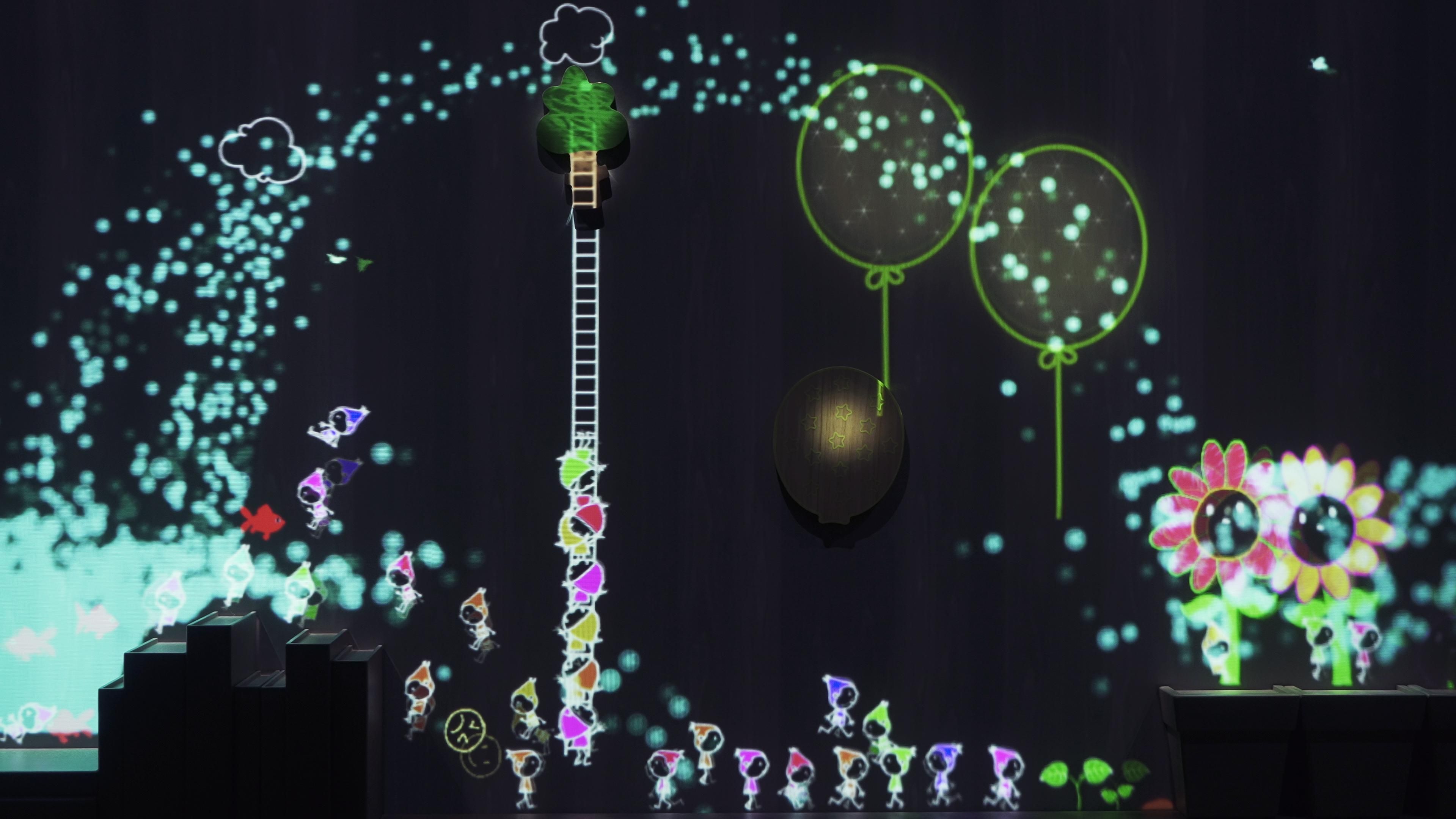 When seeds with smiley faces fall down from above and hit the various objects attached to the wall, different notes will play.