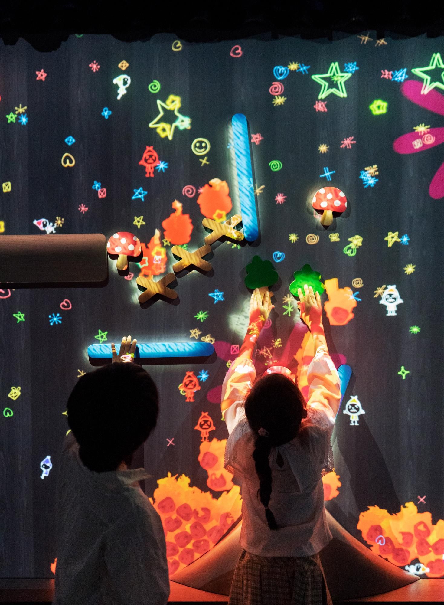 Attach various stamps to the wall, and see the little people’s world transform into a completely new world.