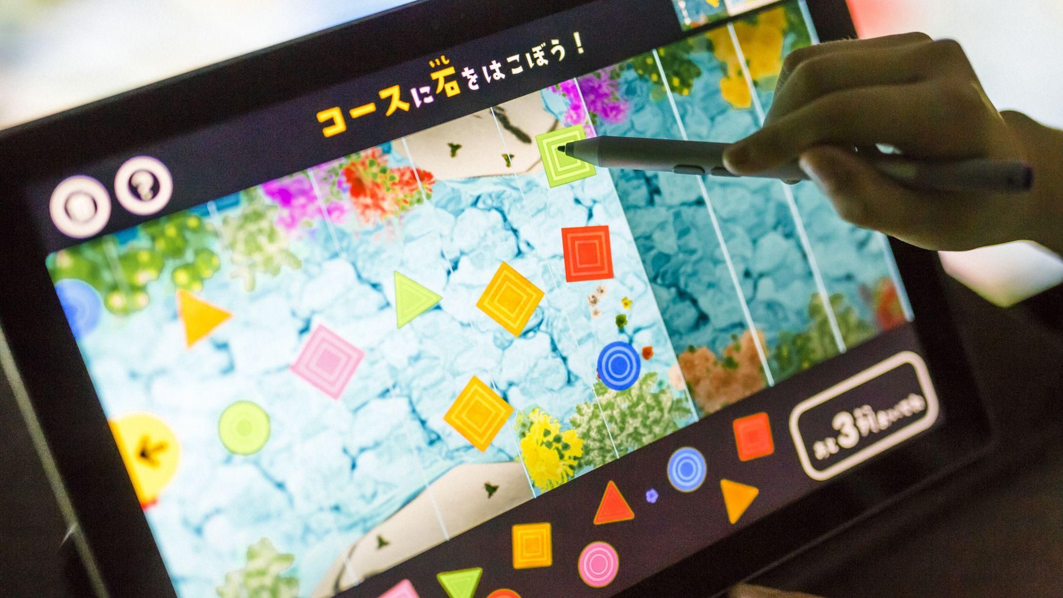 Press the start button and drag shapes onto the course.2