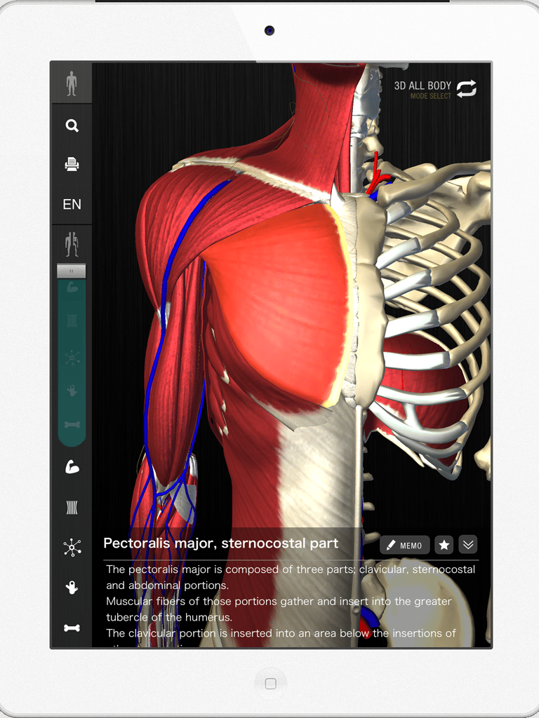 teamLabBody (beta) uses this huge amount of data to visualize the muscles, bones, nerves, vessels, and joints in the whole body, and has shown heretofore unknown bone joints in high precision, showing the bones and bone movement and combined with 3D motion interactivity.