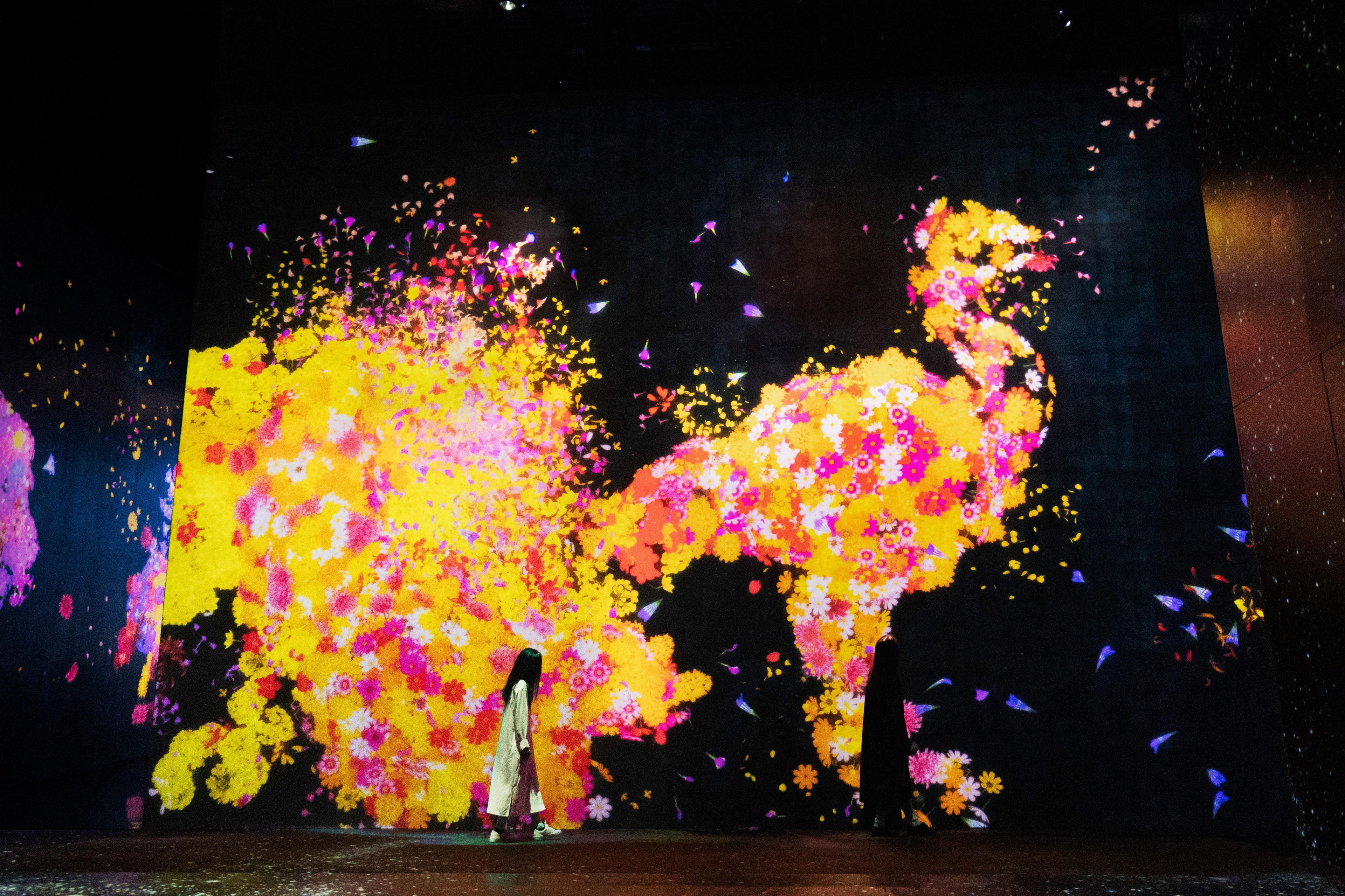 When the spheres change color, the space itself shifts between a collection of spheres forming a three-dimensional space and a flat color wall.