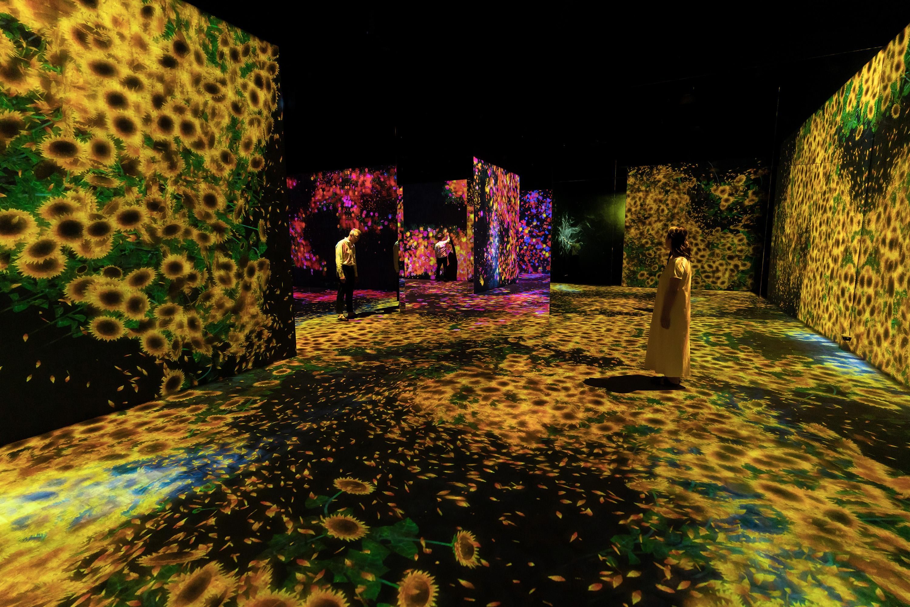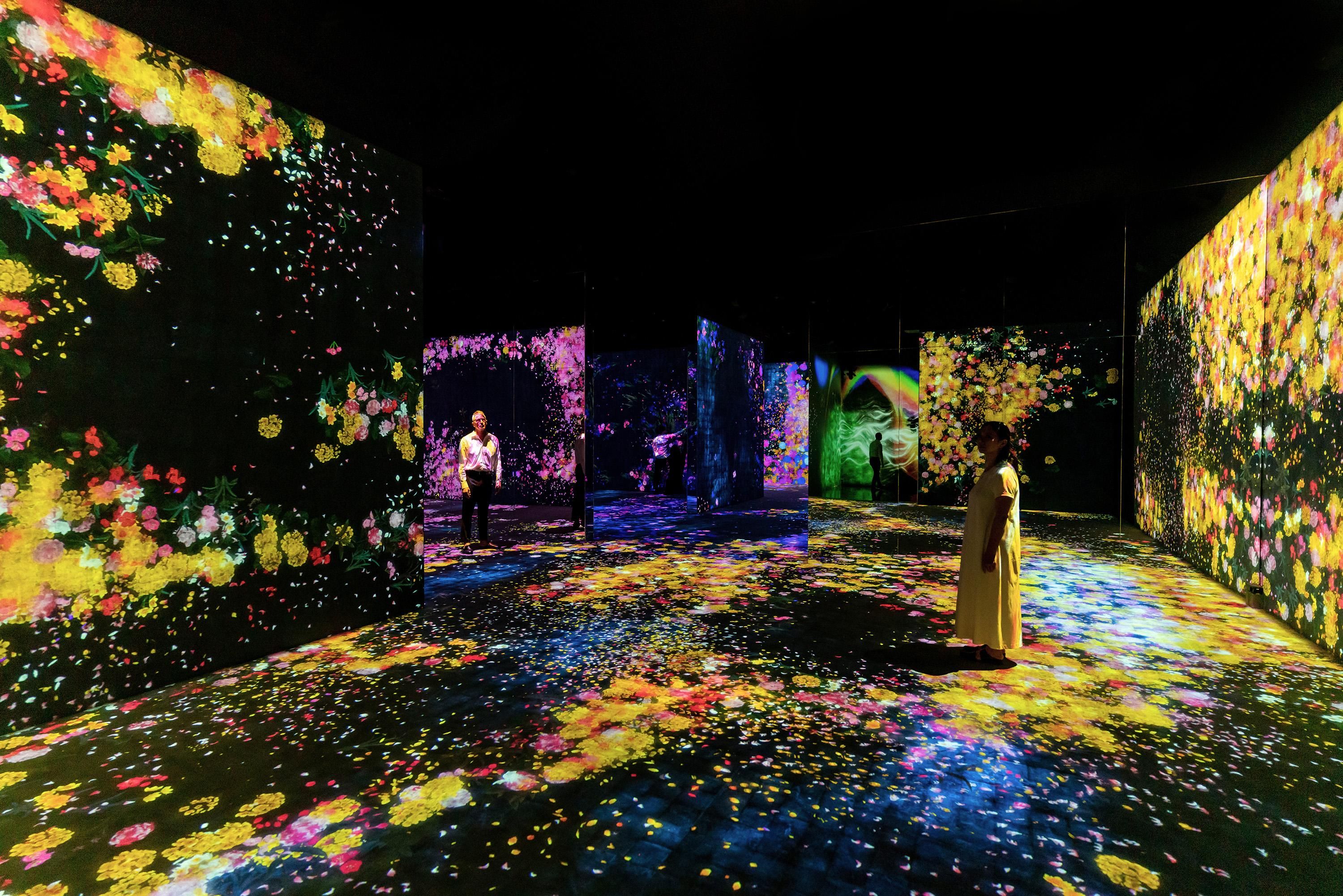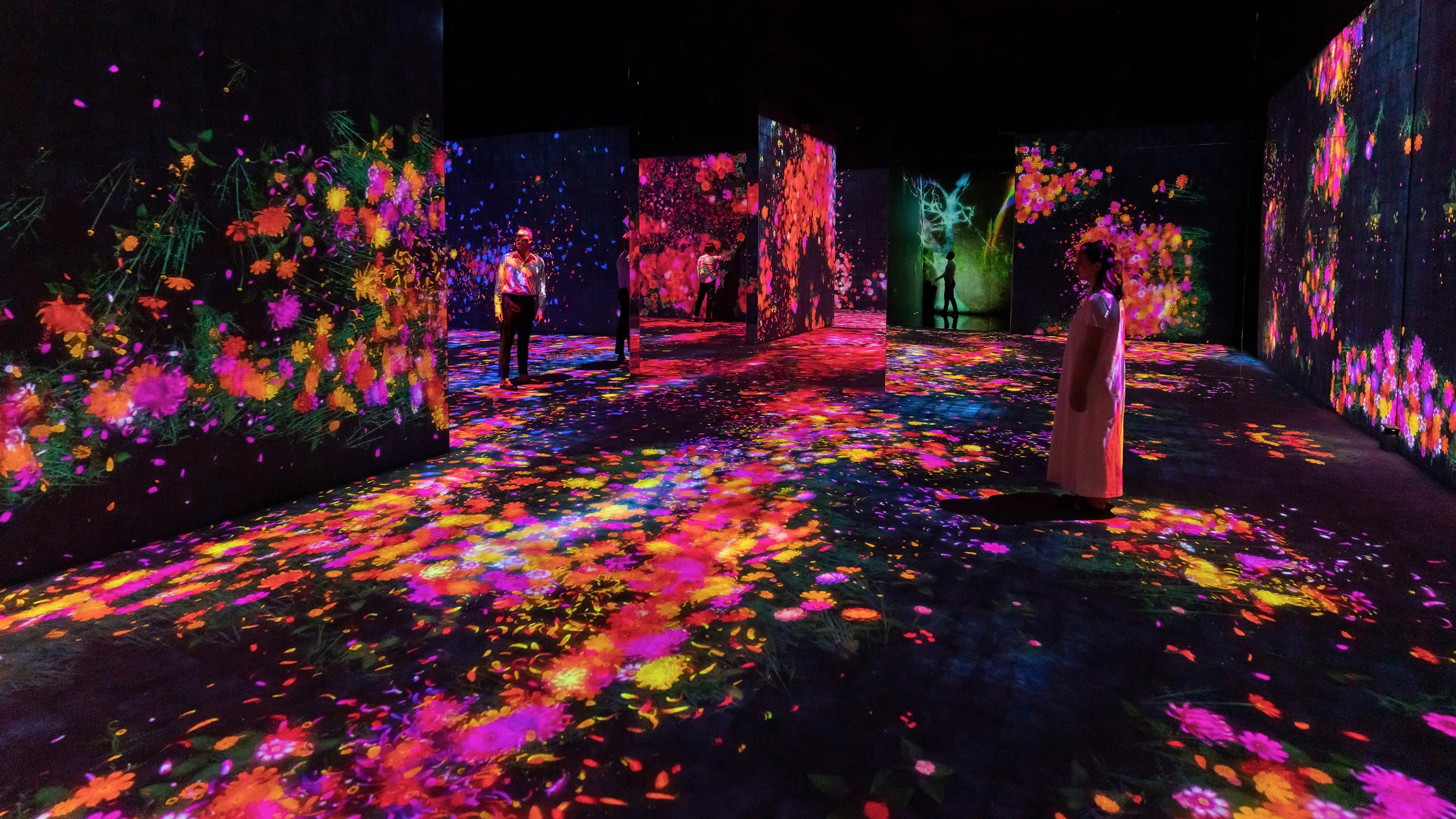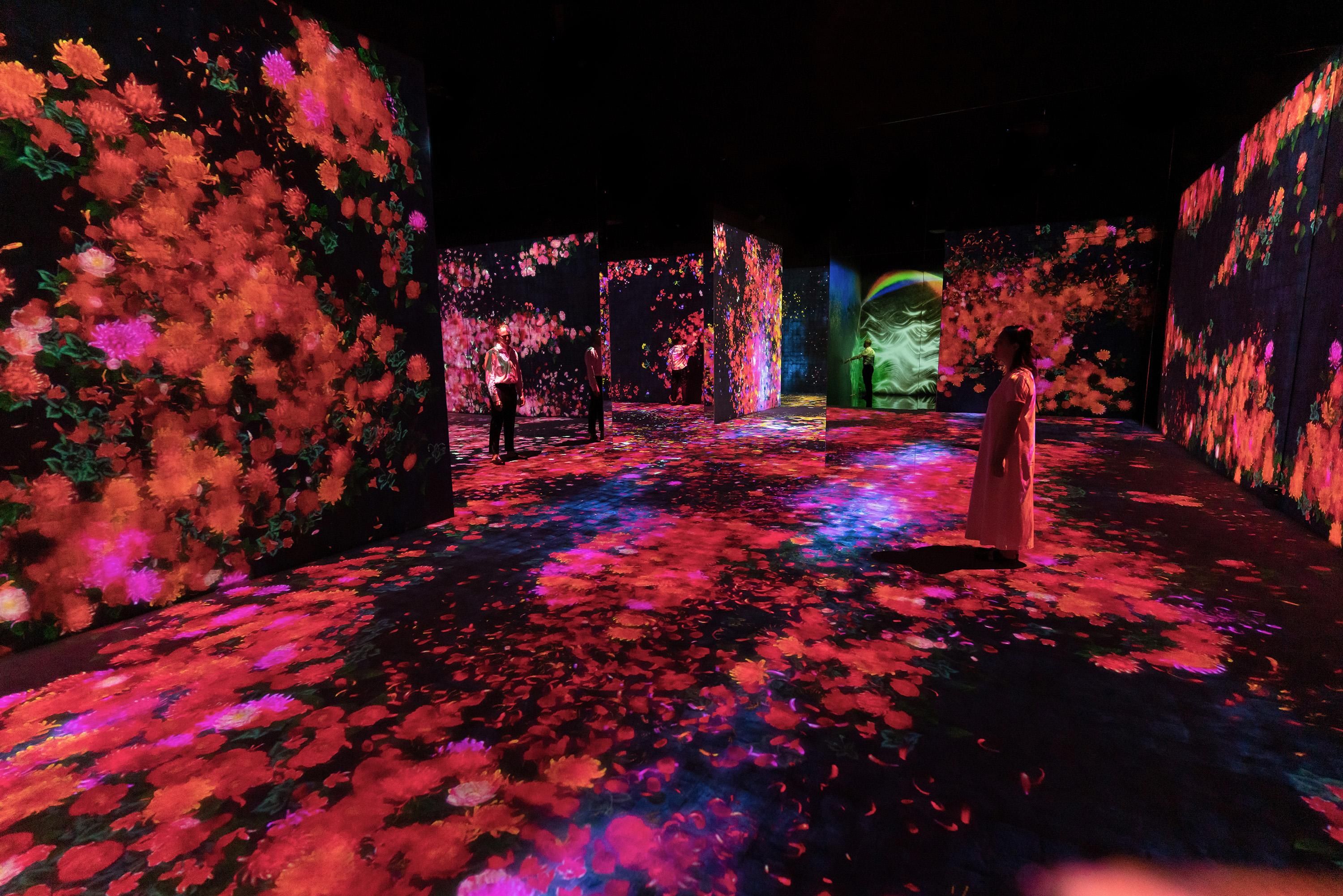 In spring in the Kunisaki Peninsula, there are many cherry blossoms in the mountains and canola blossoms at their base. A visit to this region led teamLab to wonder how much of these flowers were planted by people and how much of them were native to the environment. It was a place of great serenity and contentment. The expansive body of flowers is an ecosystem influenced by human intervention, and the boundary between the work of nature and the work of humans is unclear. Rather than nature and humans being in conflict, a healthy ecosystem is one that includes people. In the past, people understood that they could not grasp nature in its entirety, and that it is not possible to control nature. People lived more closely aligned to the rule of nature, which perhaps created a comfortable natural environment. We believe that these valleys hold faint traces of this premodern relationship with nature that once existed, and we hope to explore a form of human intervention based on the premise that nature cannot be controlled.