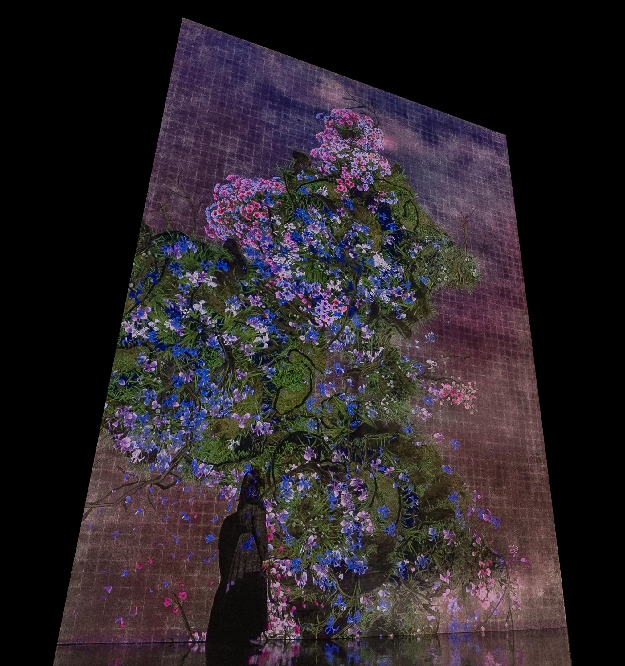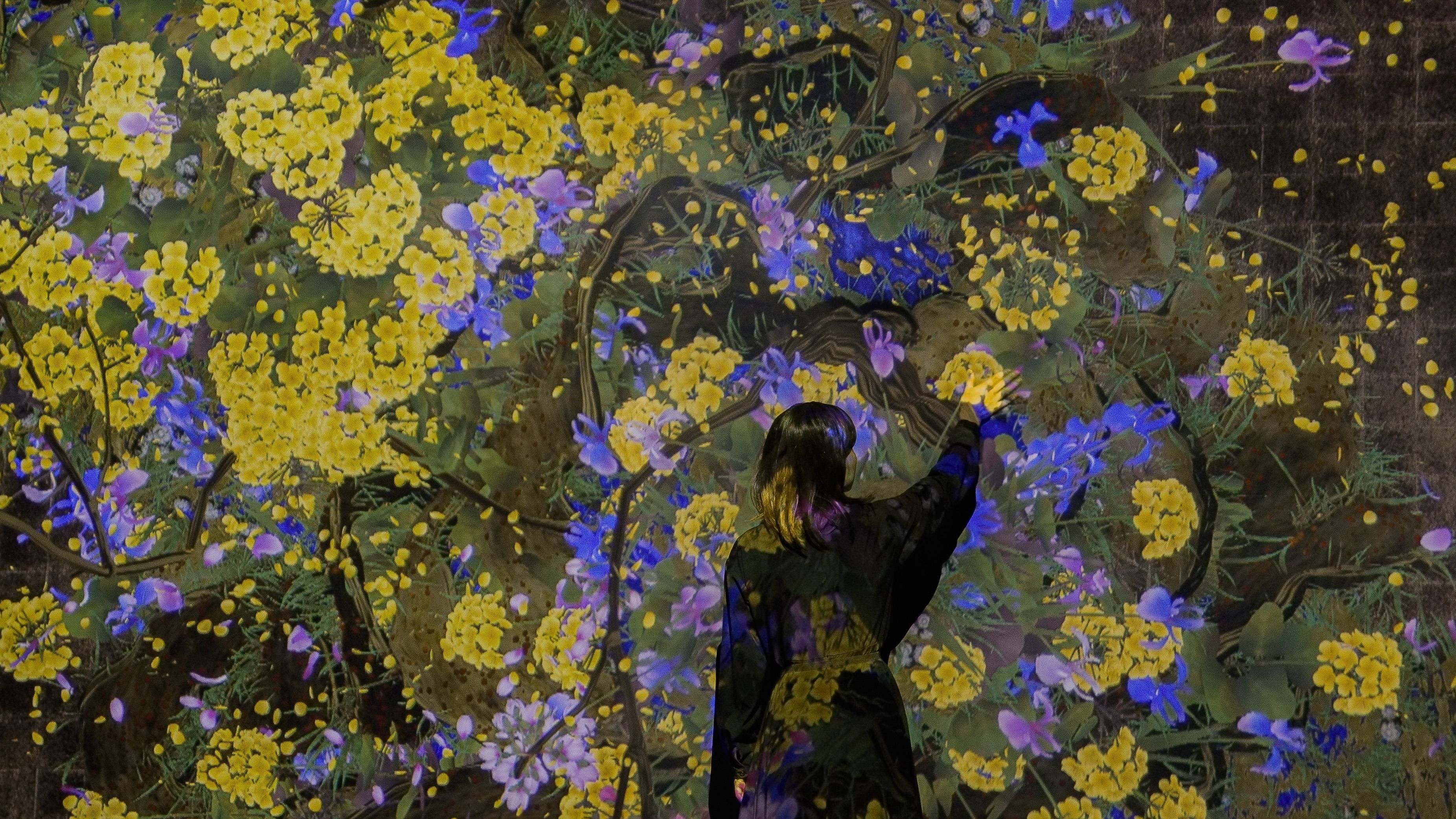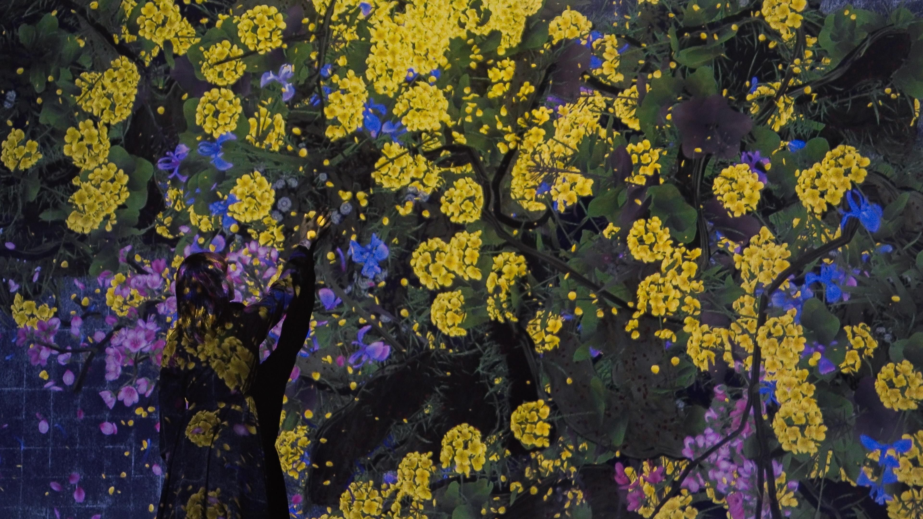 Flowers are eternally repeating the process of life and death. When people touch the flowers, their petals scatter. But if people hold their hands still against the work, more flowers will be born than usual.