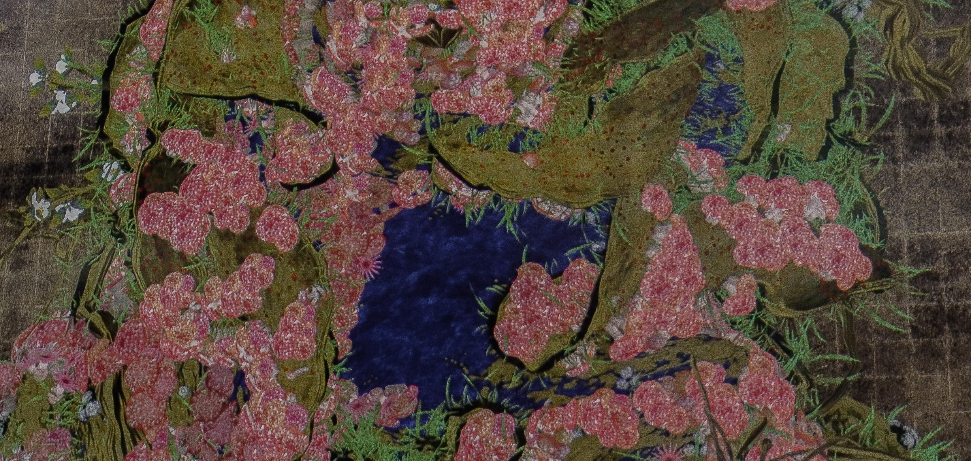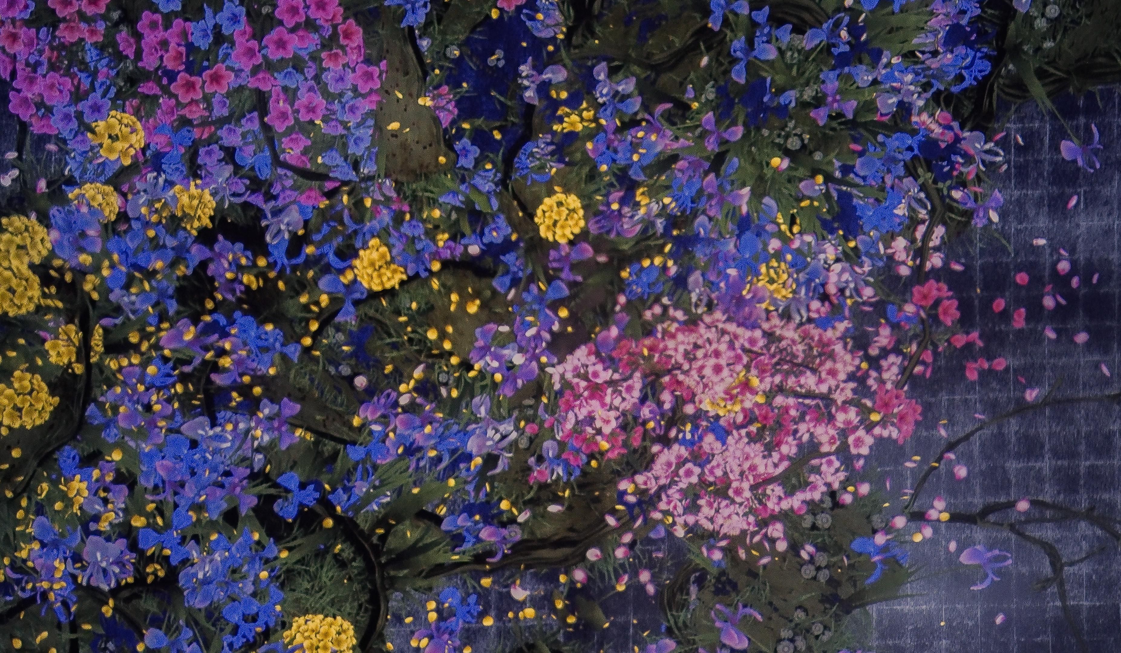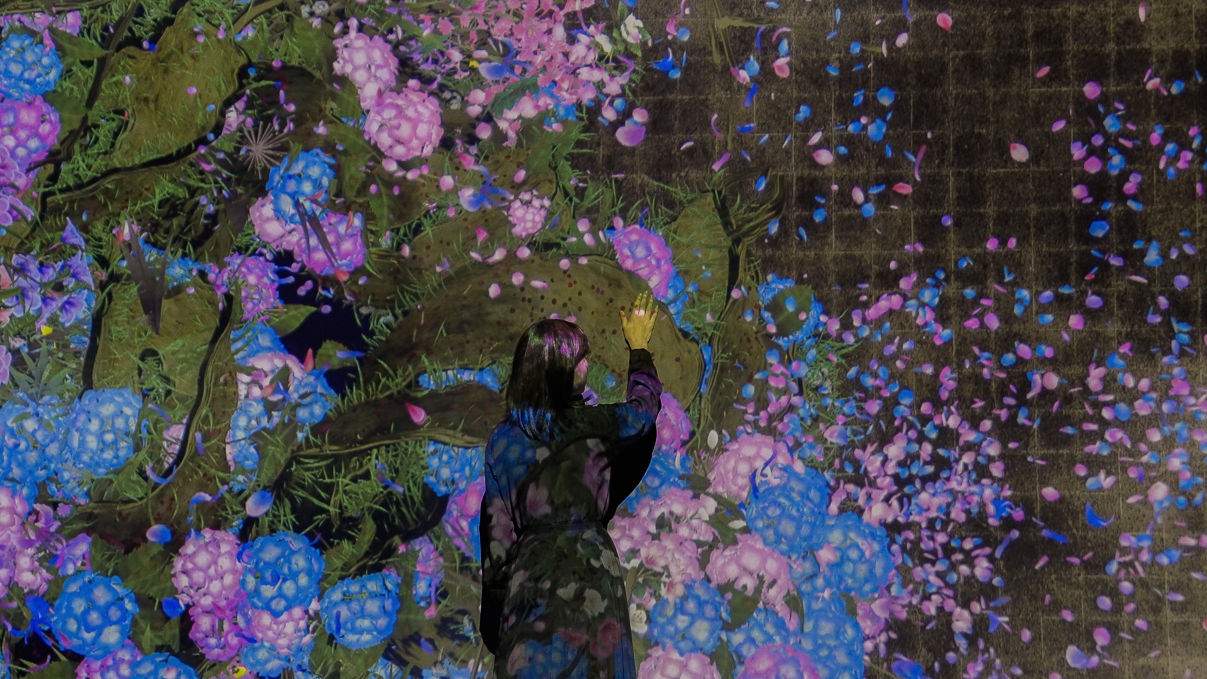 Flowers are eternally repeating the process of life and death. When people touch the flowers, their petals scatter. But if people hold their hands still against the work, more flowers will be born than usual.