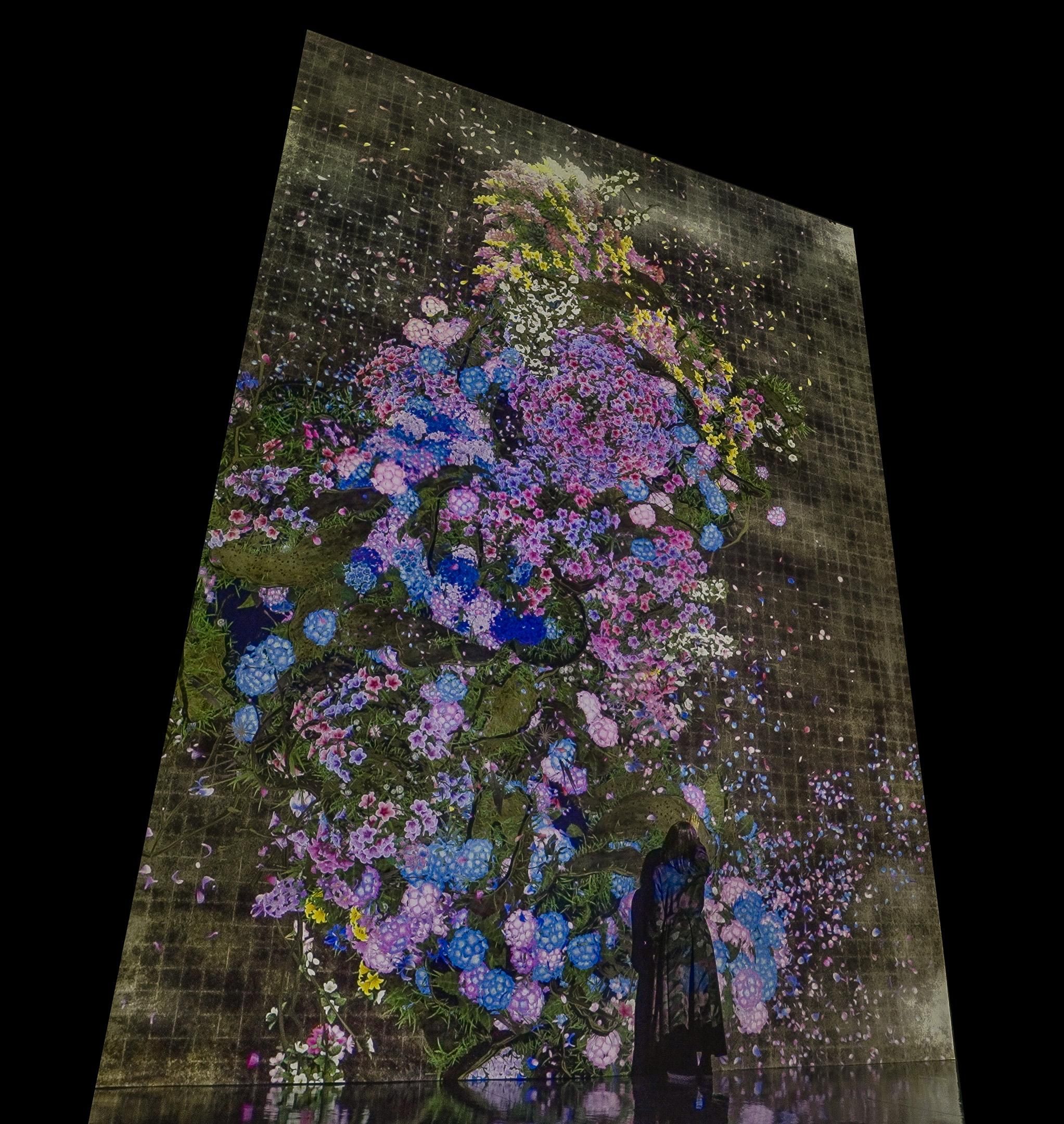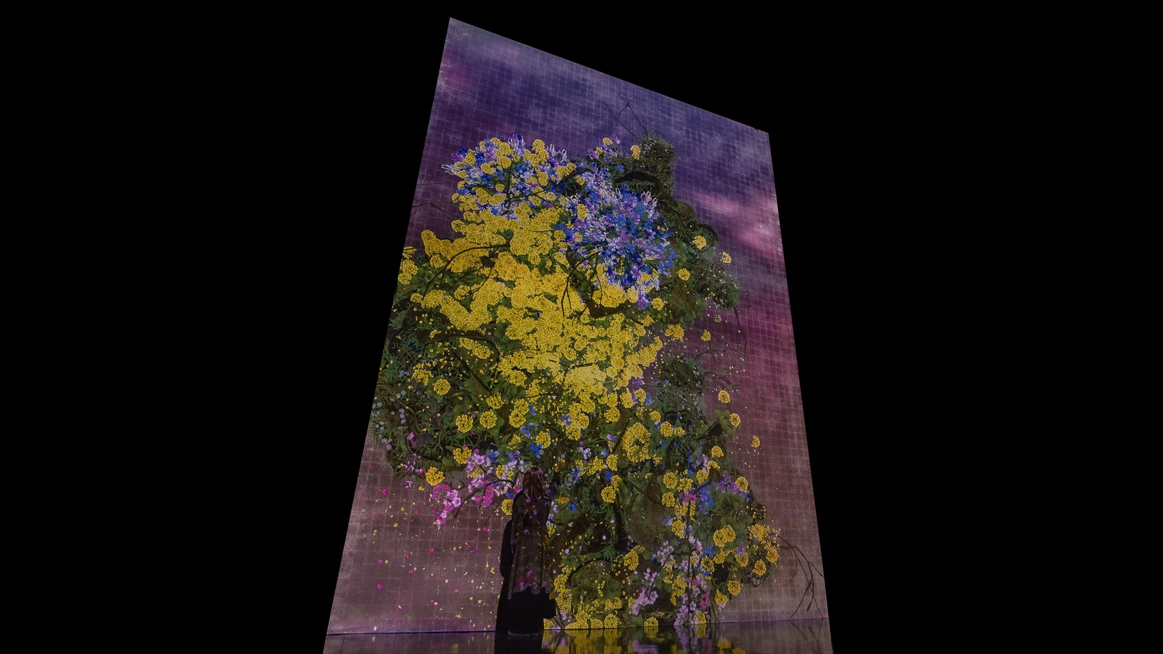 The world of the artwork changes with the real flow of time of its location. The artwork grows brighter as the sun rises and darker when the sun sets, and the flowers change.
