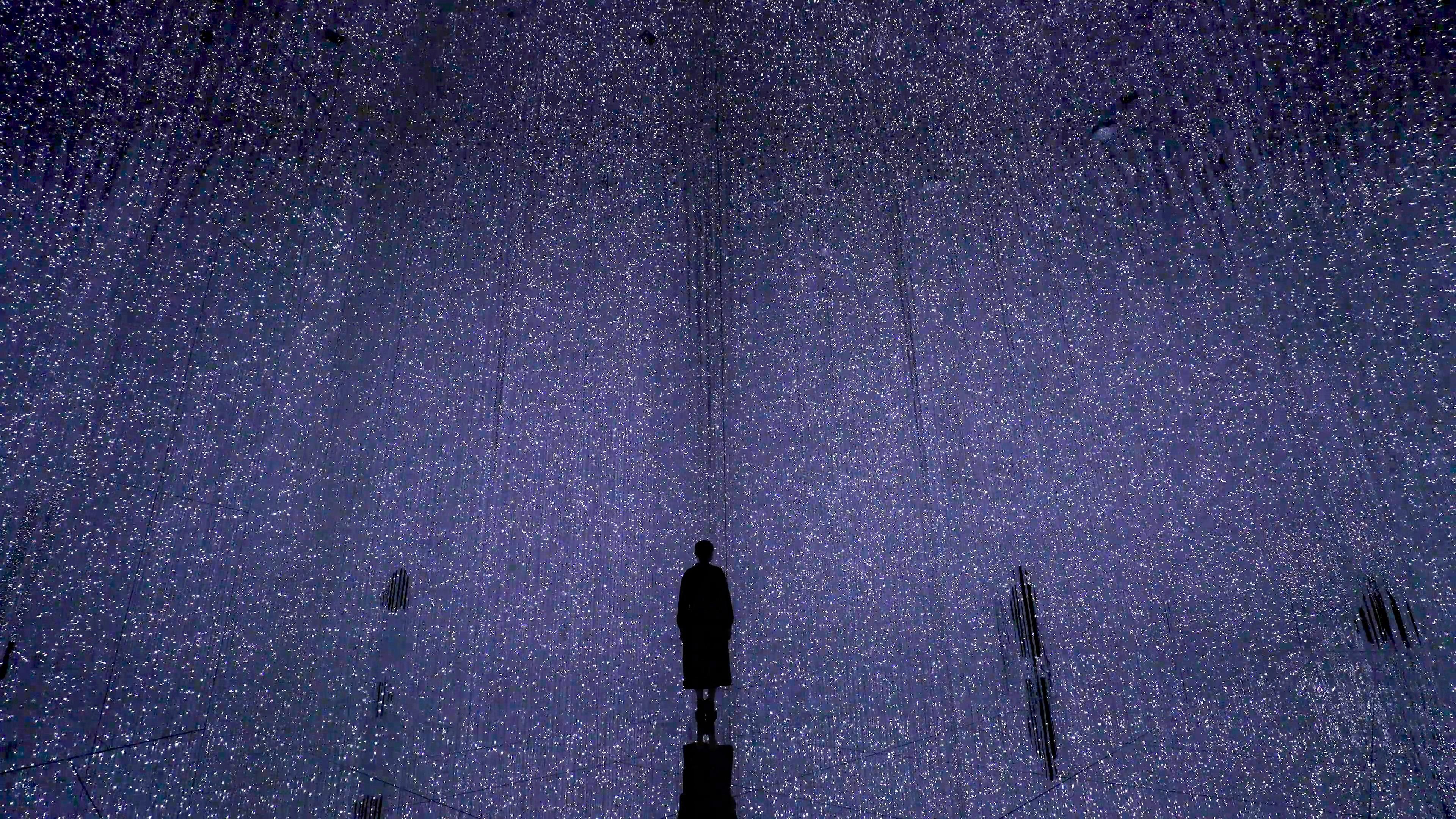 People use their smartphones to select stars to throw into The Infinite Crystal Universe. These stars are reborn in three dimensions, creating the artwork. The presence of people and their location within the work affect these three-dimensional stars, which in turn influence and are influenced by other stars in the space.
