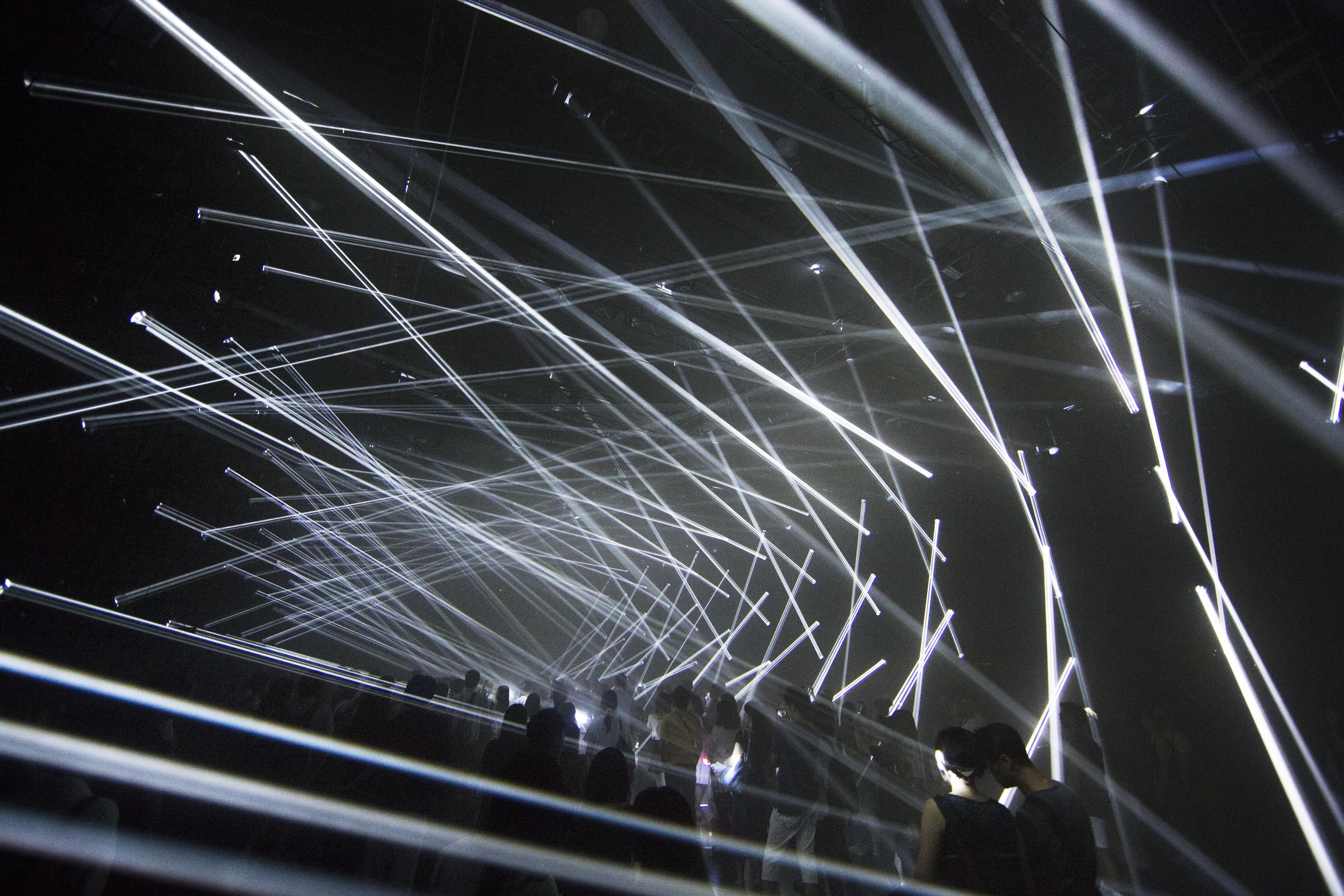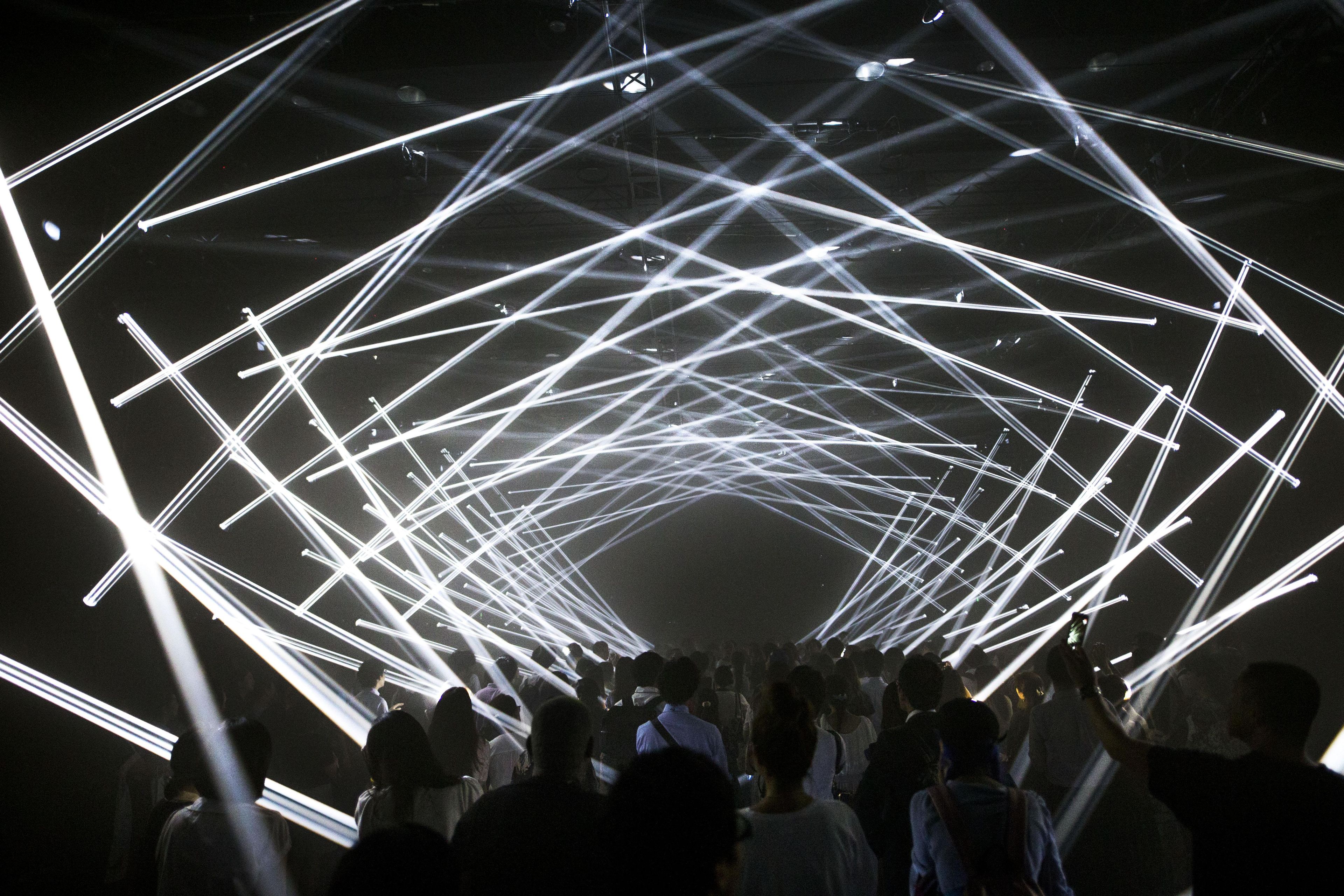 Light Sculpture - Line series. When the lines of light converge space is reconstructed into a three dimensional object. Because both the space around you and the space created are made of light, your body becomes part of the experience. CONCEPT Light Sculpture - Line Lines of light reorganize the space and create three-dimensional objects as they converge, allowing you to immerse yourself fully in them. For a physical learning experience - dance and experience the art not with your mind, but with your body.