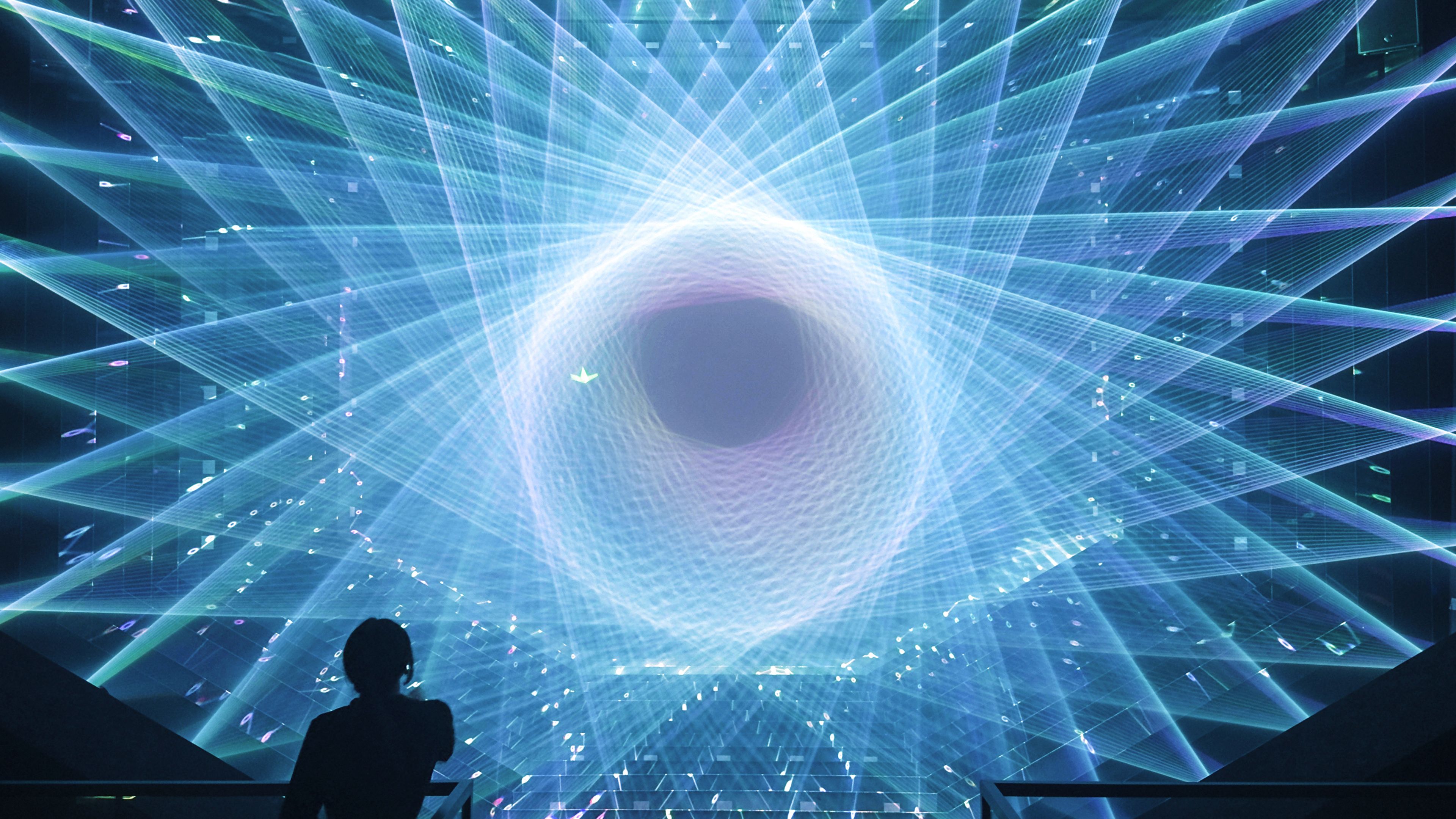 A sculpture composed of an order formed by a collection of light that flows continuously from the outside to the inside and from the inside to the outside.