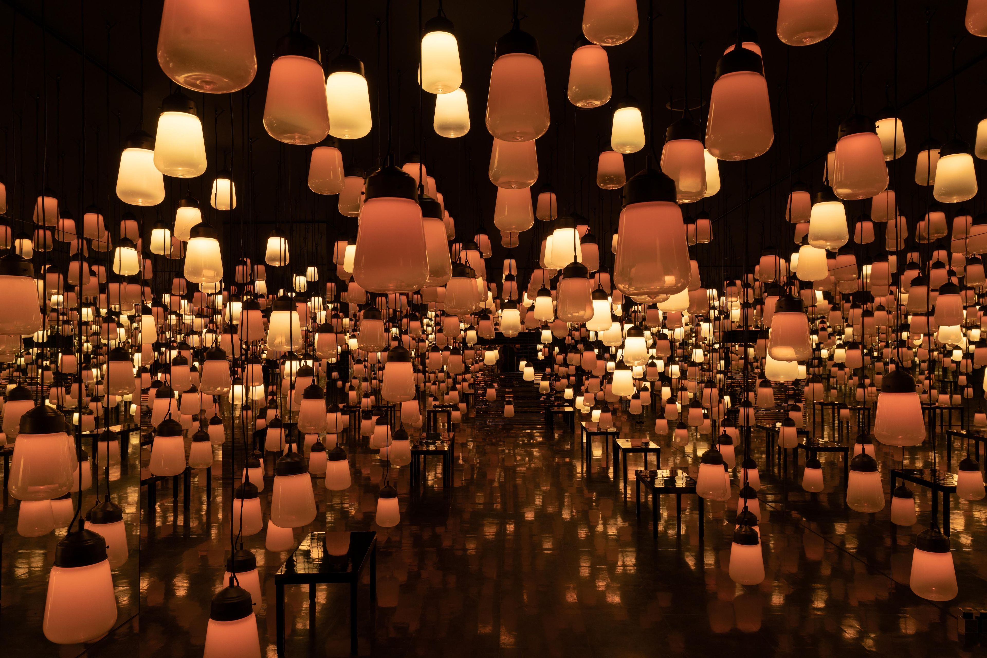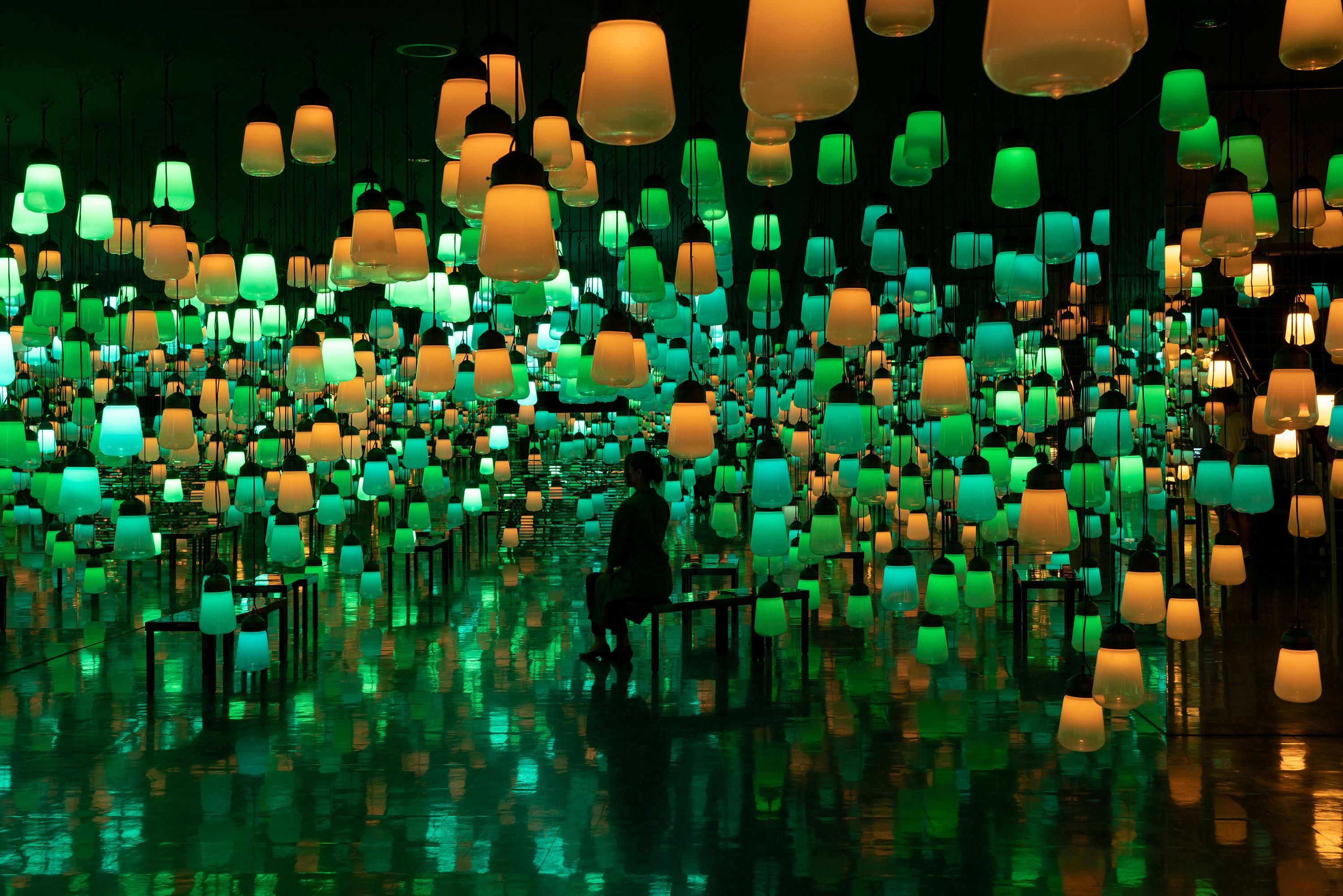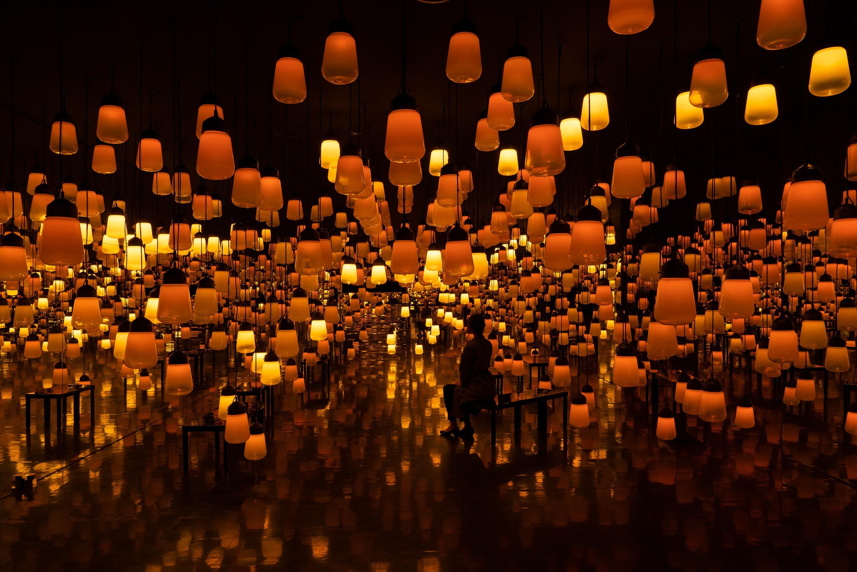 This is an artwork about the continuity of light, which is generated as people move around freely and interact with the lamps.