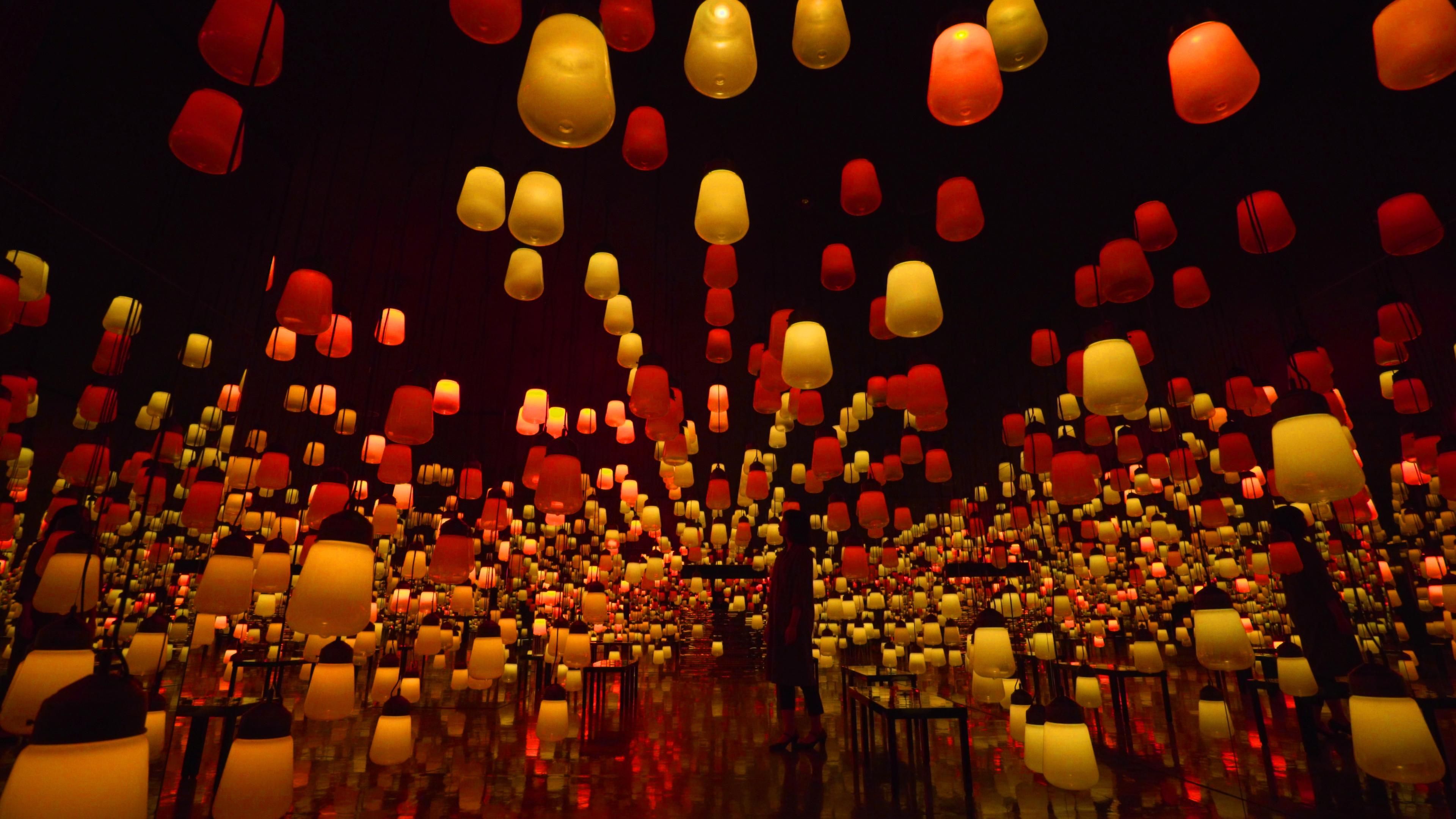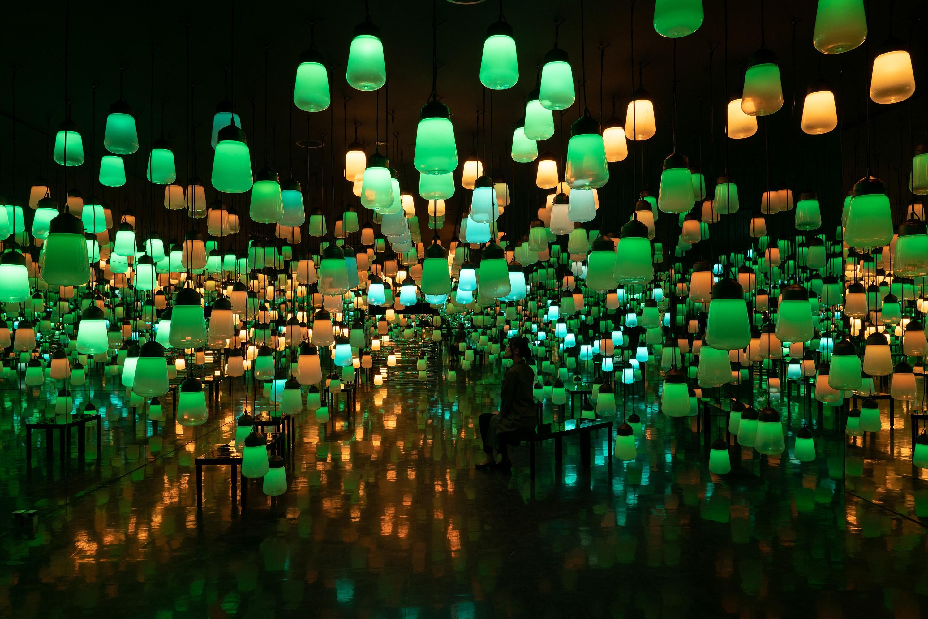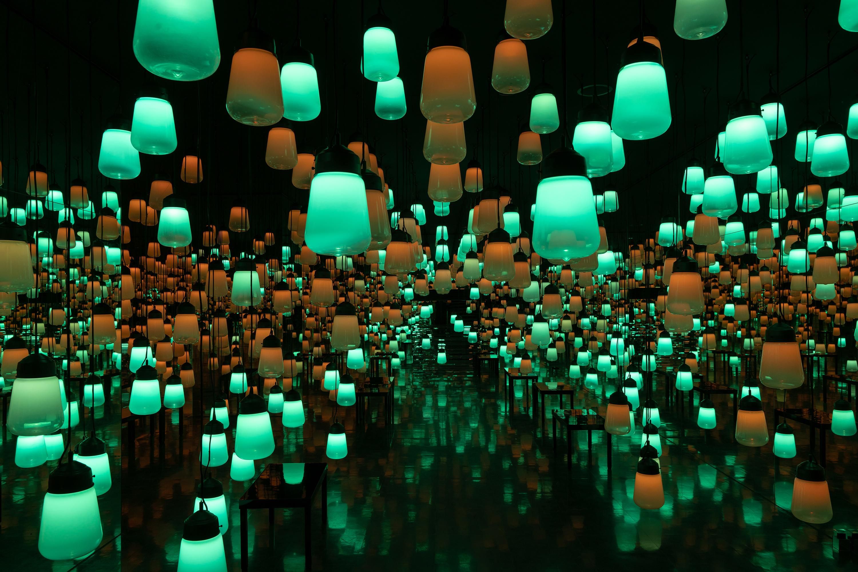 This is an artwork about the continuity of light, which is generated as people move around freely and interact with the lamps.