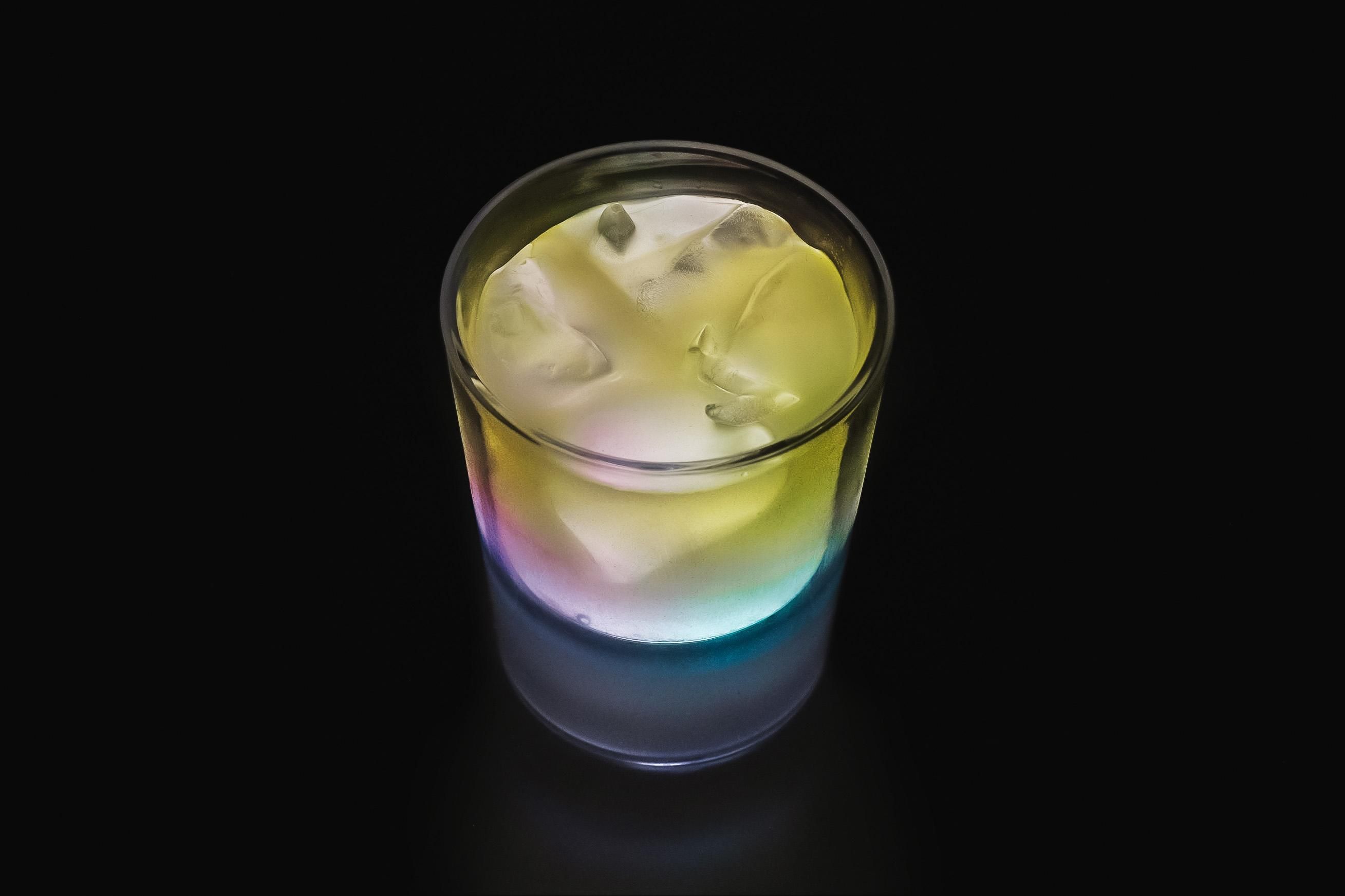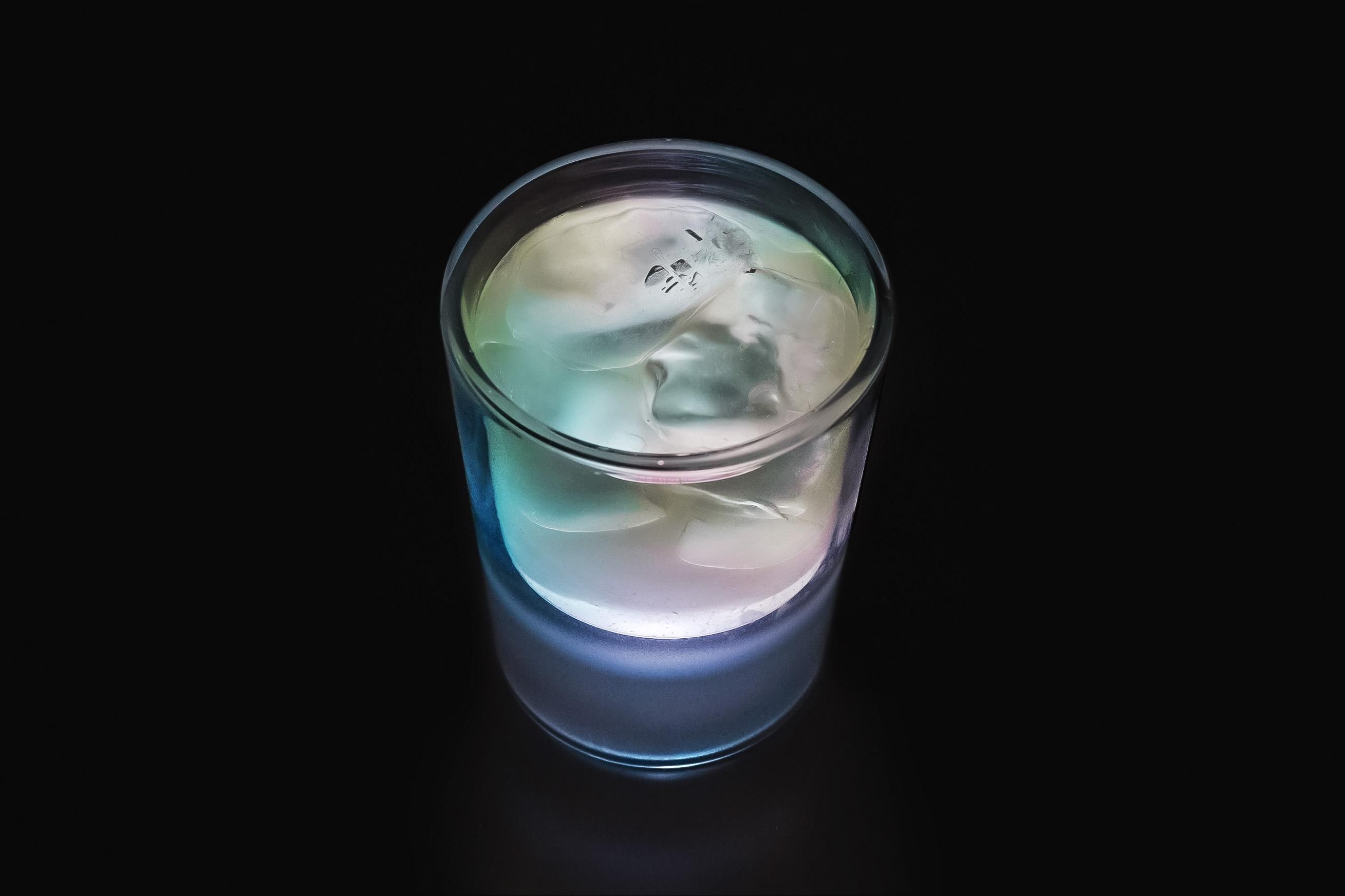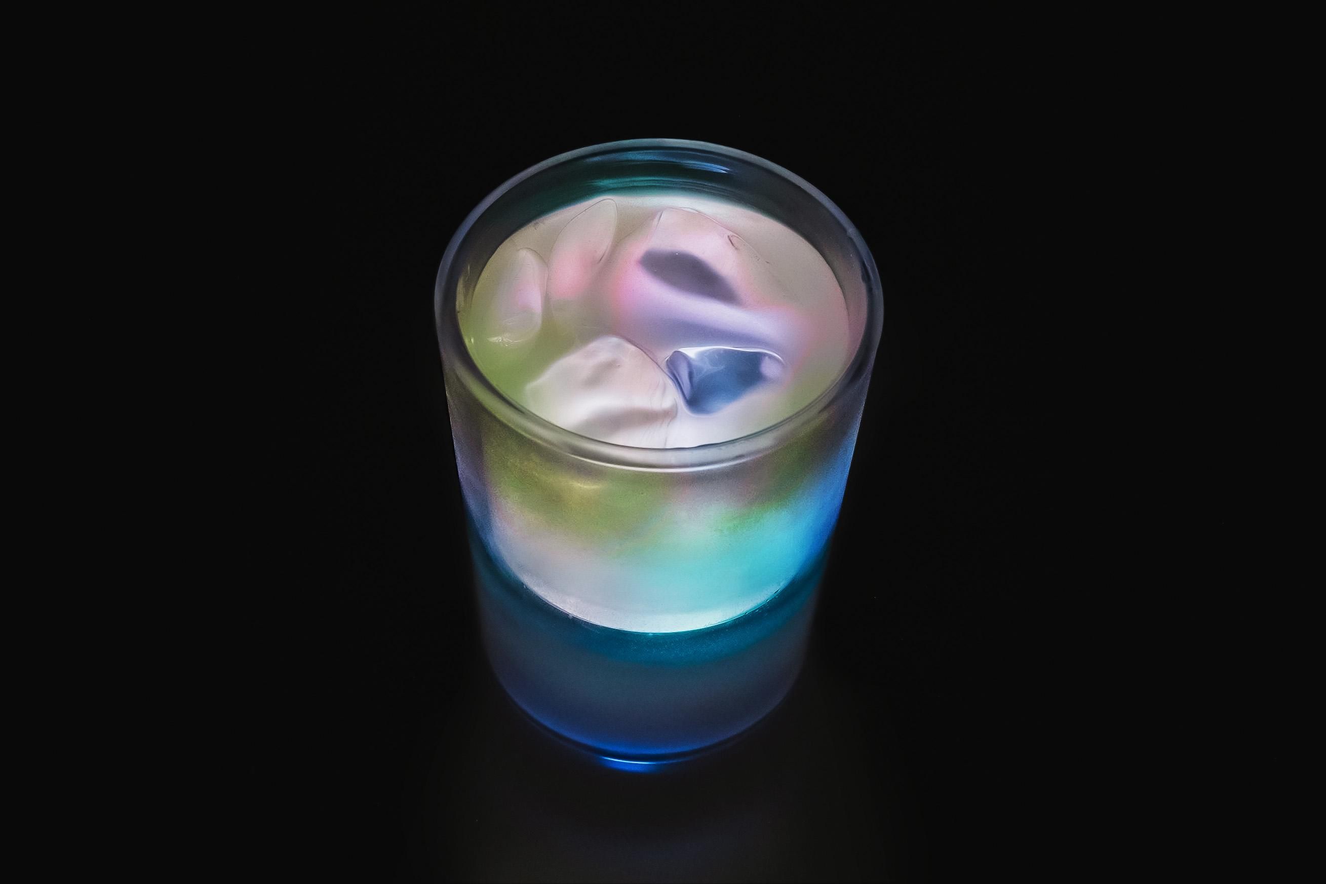 The light color of the tea is Dynamic Equilibrium Color, a new color concept by teamLab. When a person sees the tea in the cup from a distance, taking in its entirety, the color of the light does not appear to change; but when they look closely, observing the miniscule, the color of the light is actually continuously changing, and creating a new sense of time.