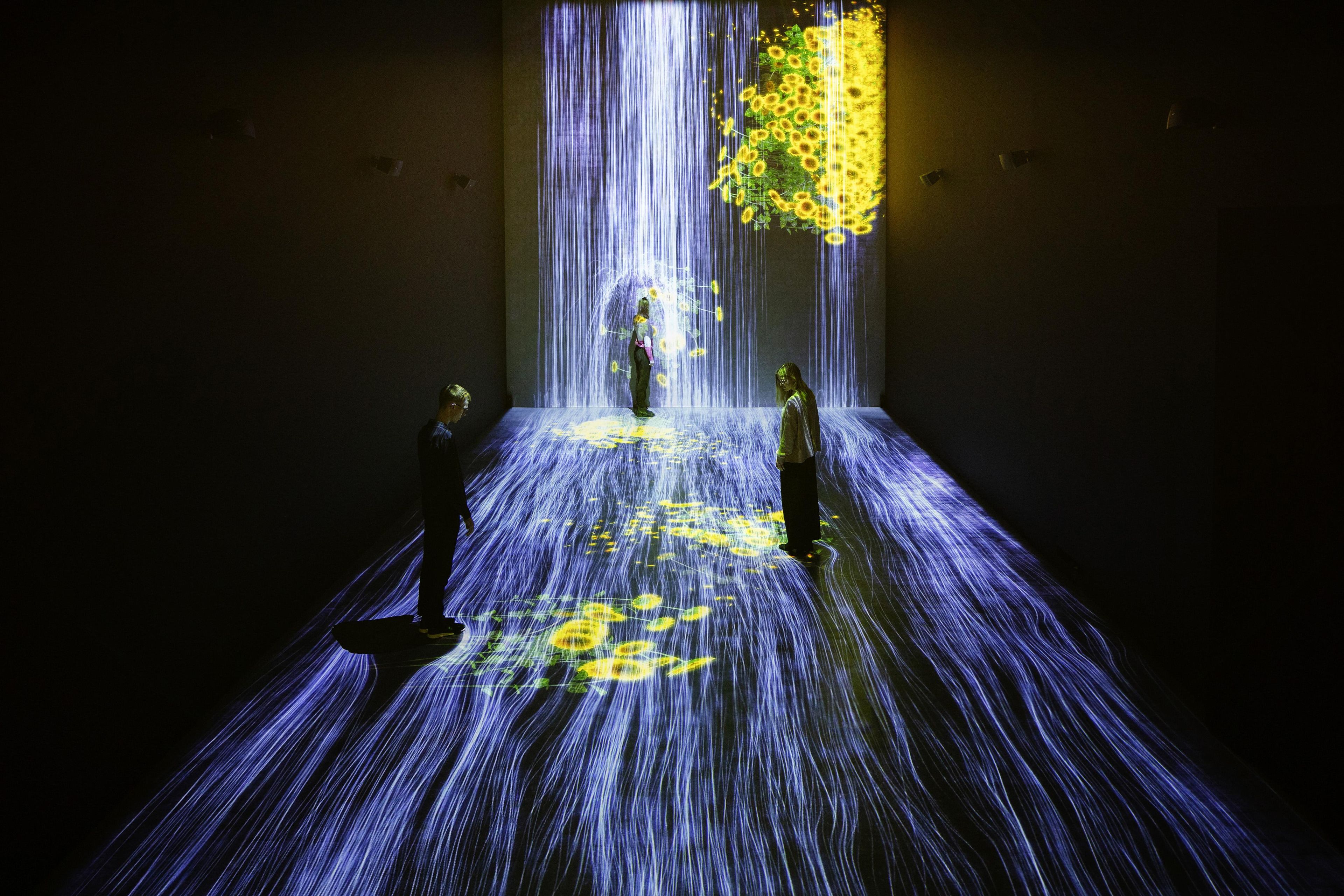 The exhibition features works by artists including Doug Aitken, Allora & Calzadilla, Edward Burtynsky, Julian Charrière, Simon Denny, Cao Fei, Mona Hatoum, Alfredo Jaar, Raqs Media Collective, Tomás Saraceno, Hito Steyerl, teamLab, Rirkrit Tiravanija, and Qiu Zhijie.