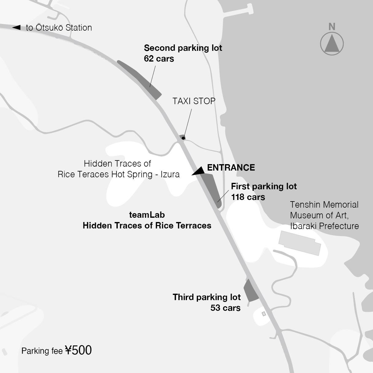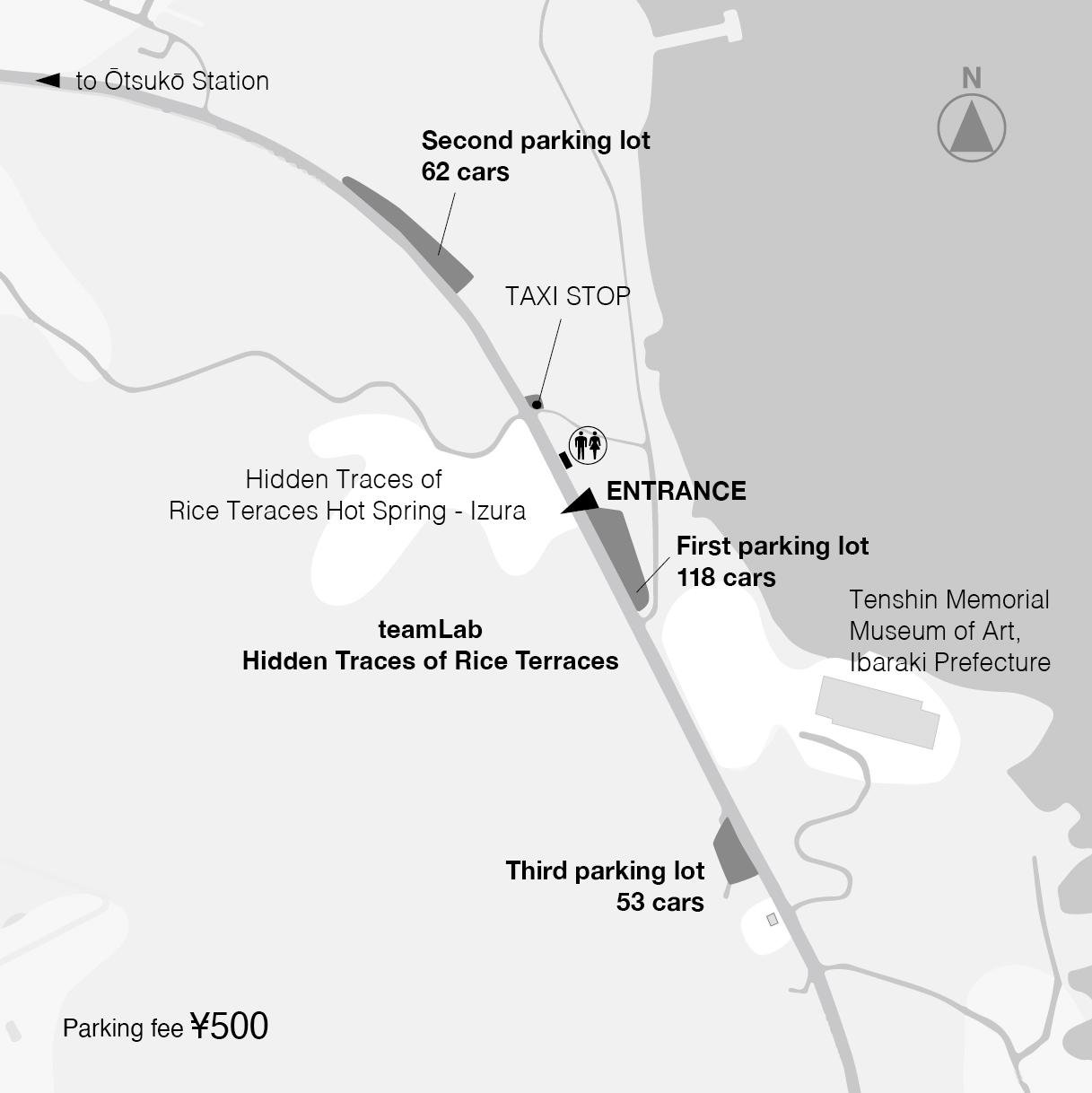 ‐You would enter the Onsen after you enjoy watching the art exihibition and before going back to the parking area. So please bring your belongings for onsen to the exhibition and carry them during watching it.