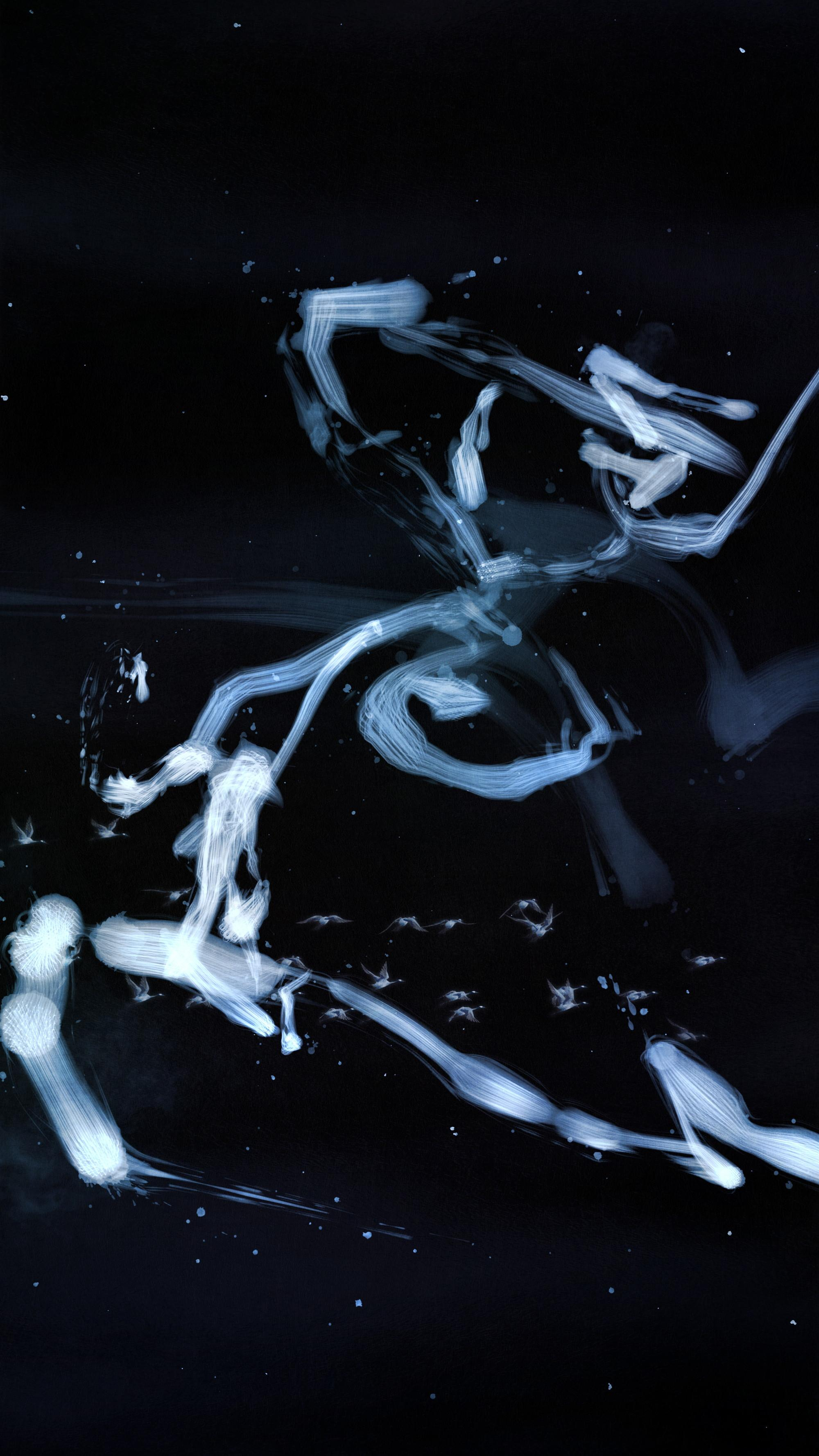 Spatial Calligraphy, Reversible Rotation and Crane - Itami Blue Light, Day & Night | teamLab