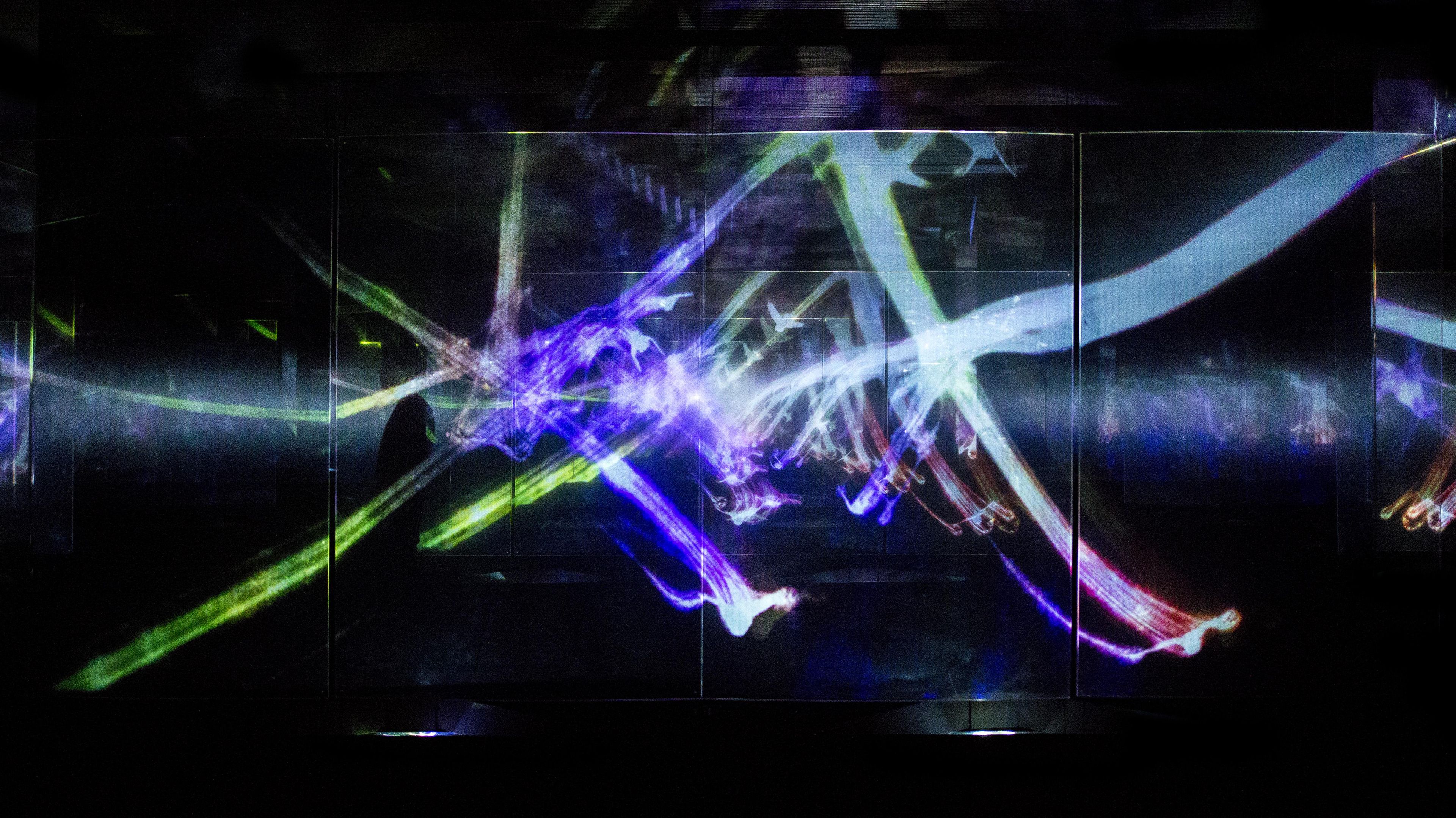 teamLab, 2018-, from the series Crows are chased and the chasing crows are destined to be chased as well, Division in Perspective – Light in Dark, 2014-, Installation, 4 min 20 s, Sound: Hideaki Takahashi