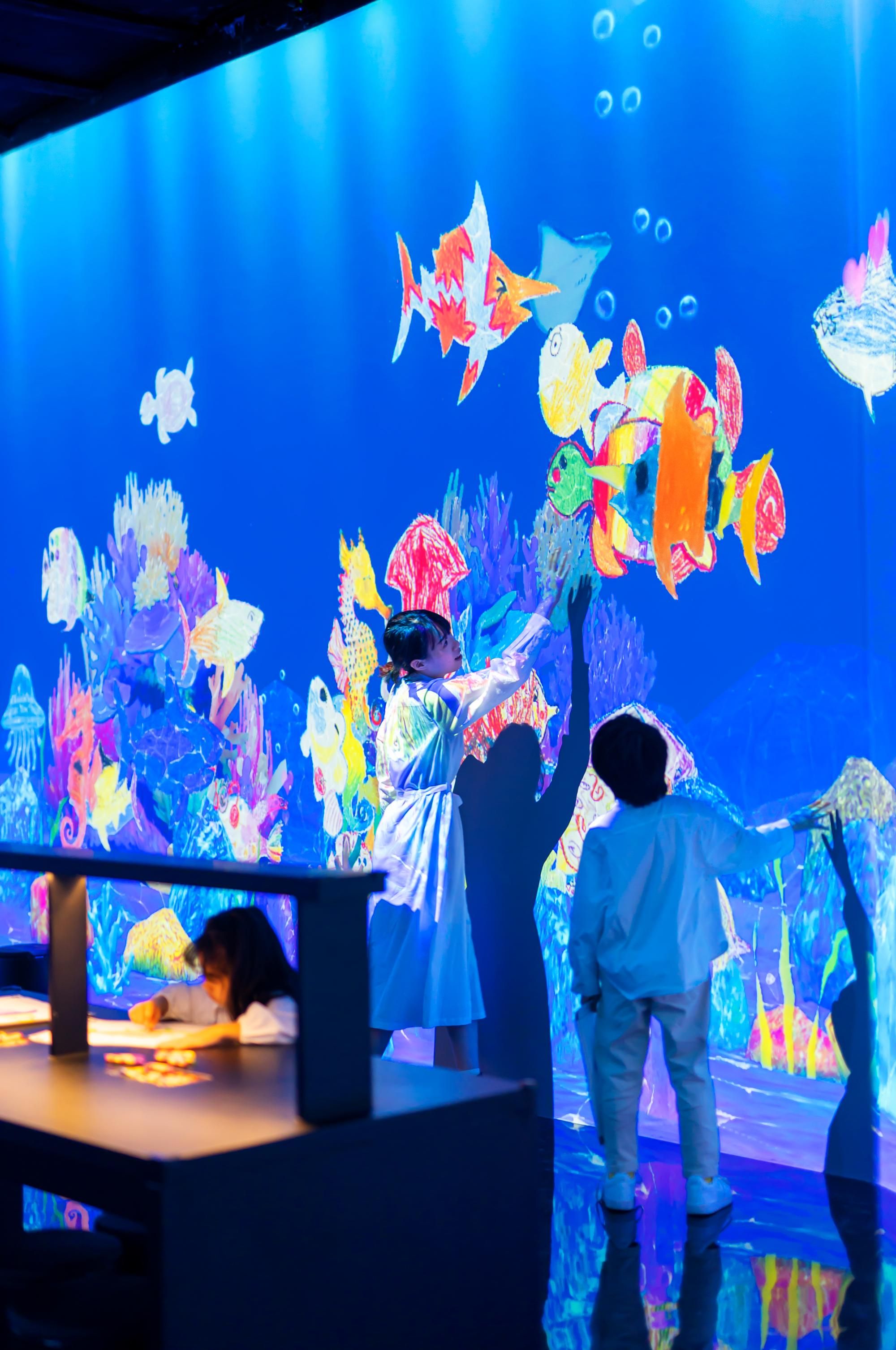 The tuna transcend the physical boundaries of the museum and swim out into the Sketch Ocean or Sketch Aquarium: Connected World artworks in other exhibitions. Similarly, tuna drawn in other exhibitions may appear and swim into the Sketch Ocean right in front of you.
