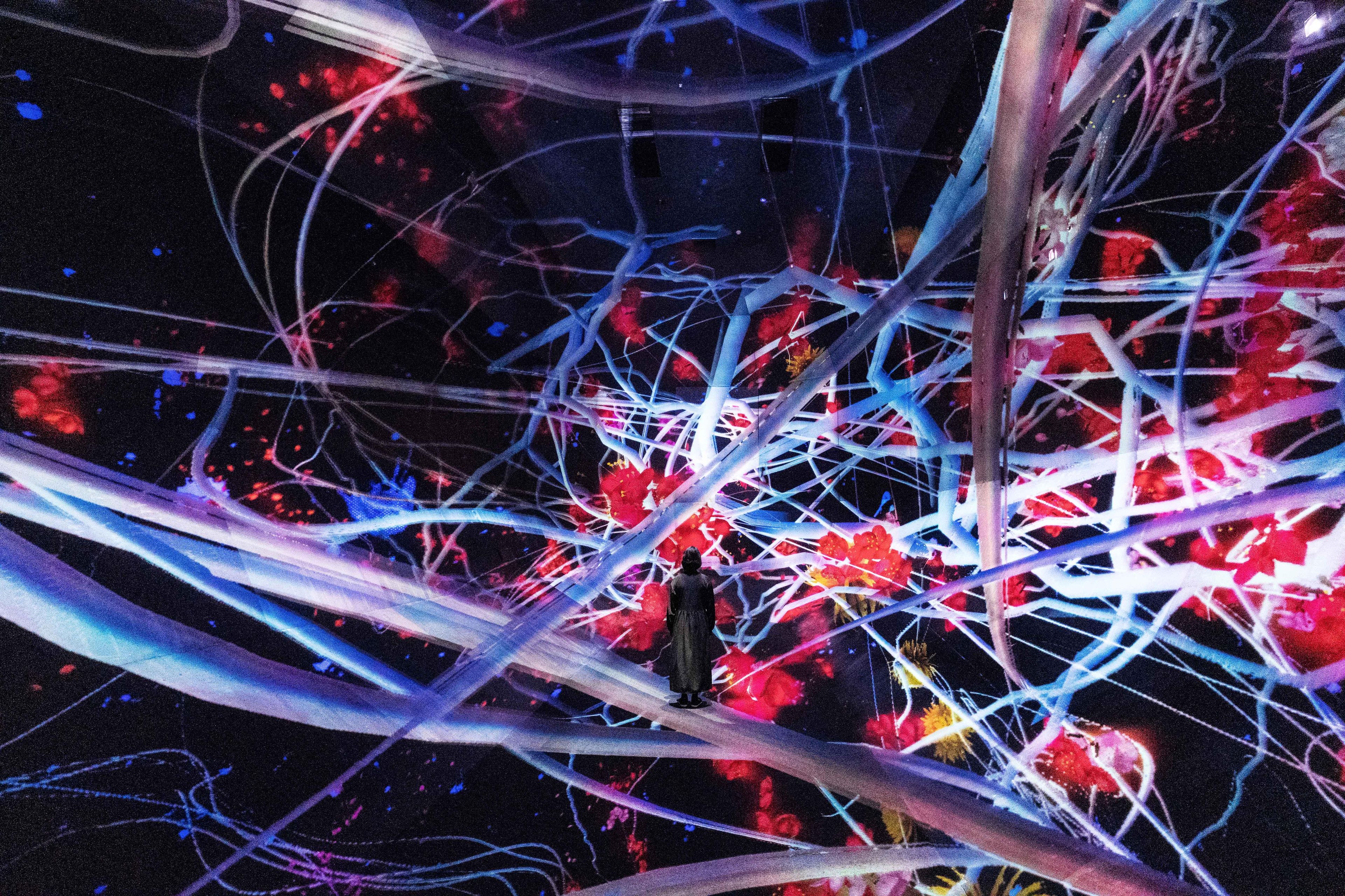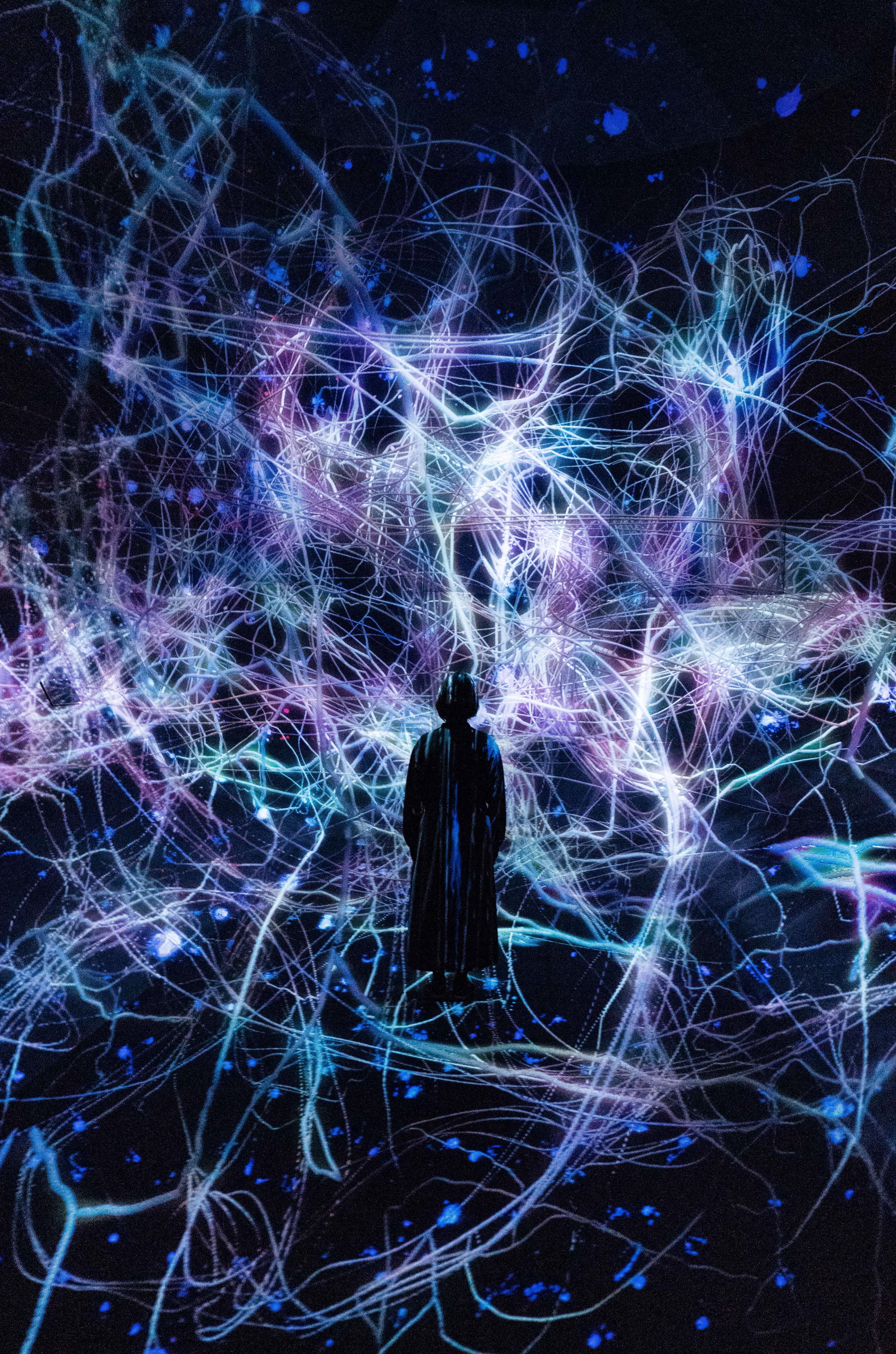 When people enter the artwork space, the artwork becomes one with the people and begins to move. Traces form in front of the people from their feet, eventually creating a single, long line as the artwork space and people move together as one. The world of the artwork transcends physical space, and the boundaries between people and the artwork world disappear.