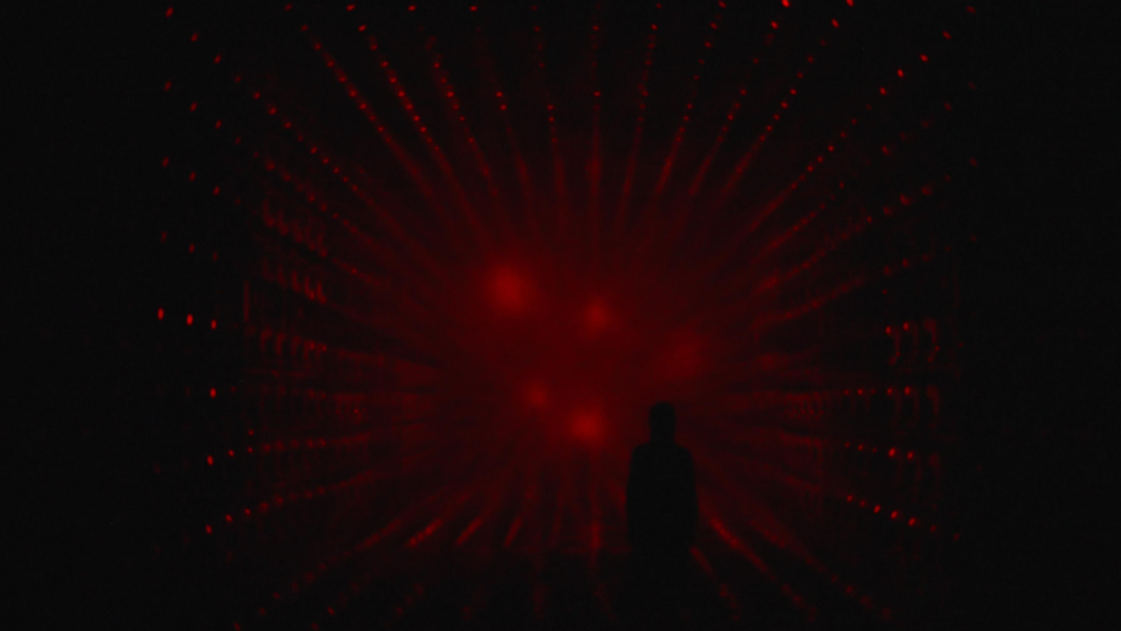 A sculpture made of ordered light that continues to flow outward.