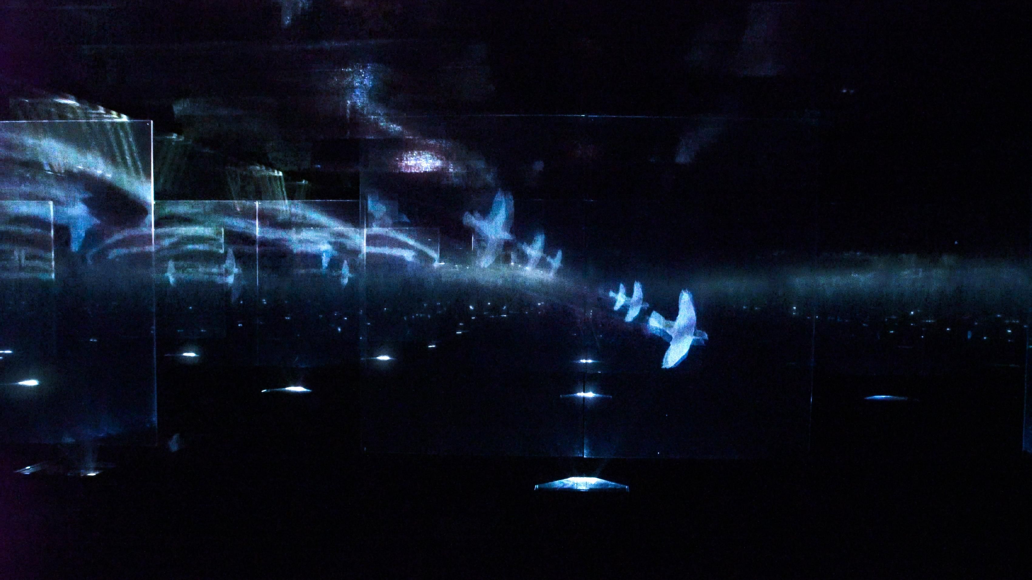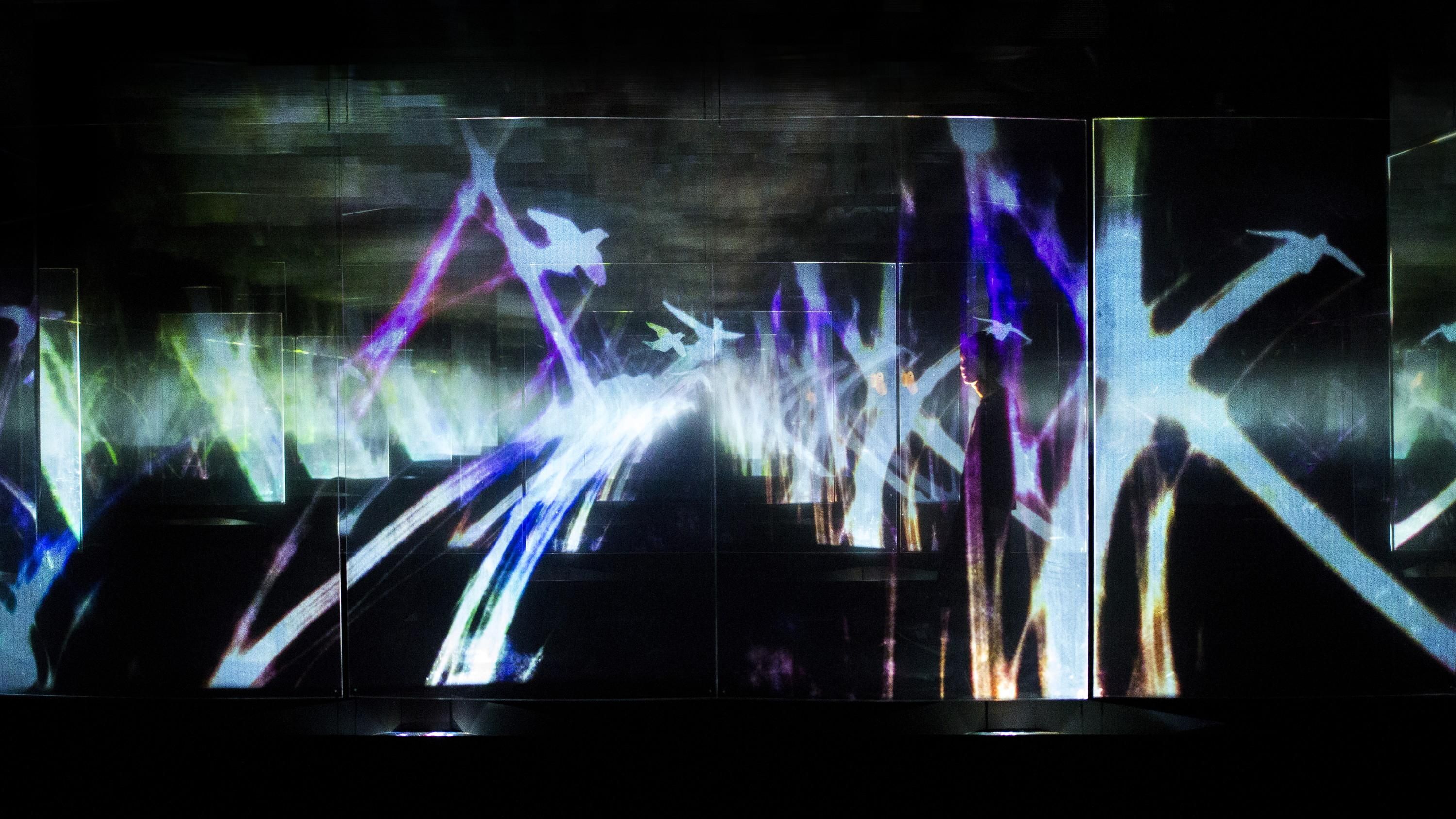 teamLab, 2018-, from the series Crows are chased and the chasing crows are destined to be chased as well, Division in Perspective – Light in Dark, 2014-, Installation, 4 min 20 s, Sound: Hideaki Takahashi