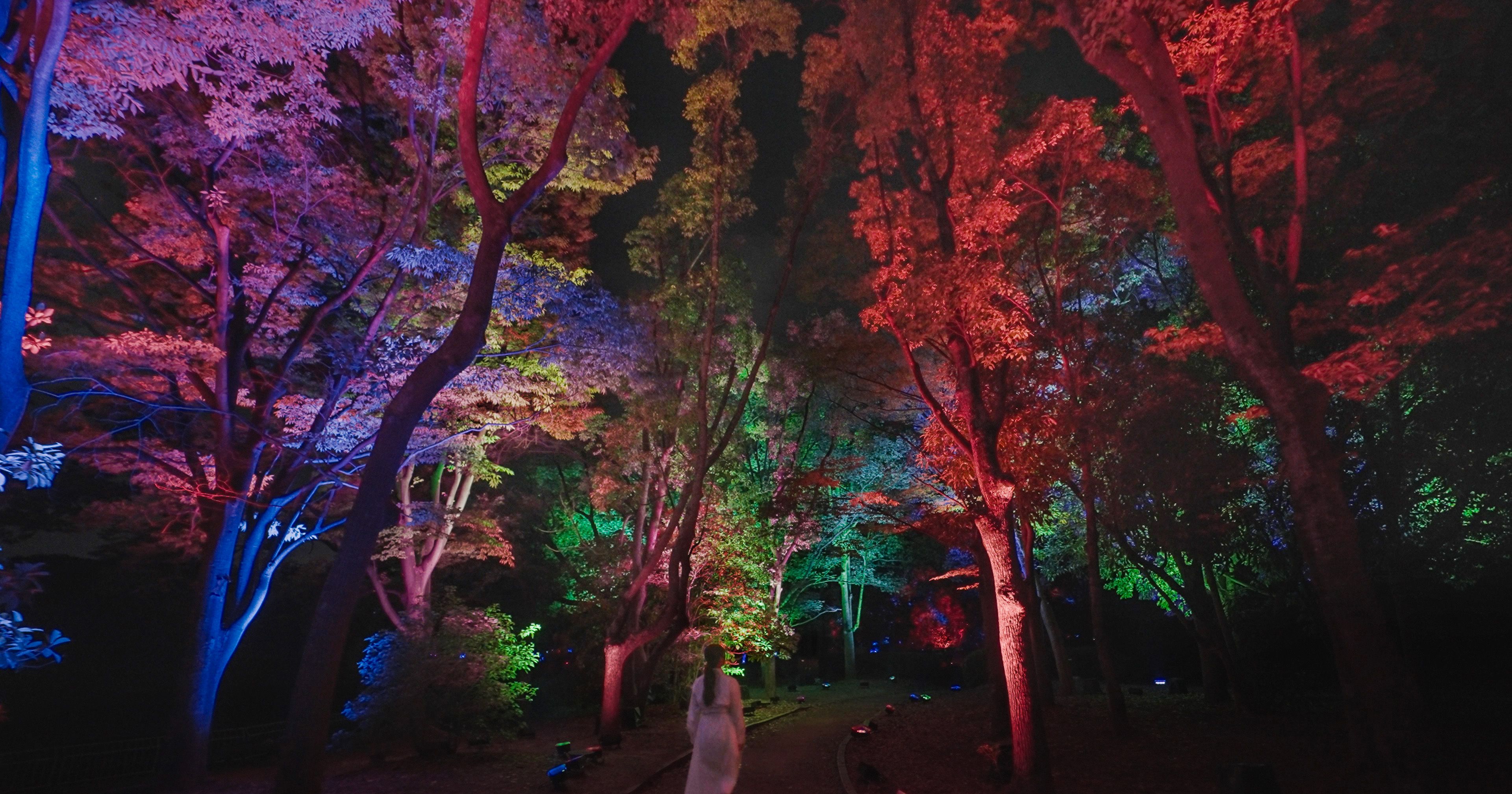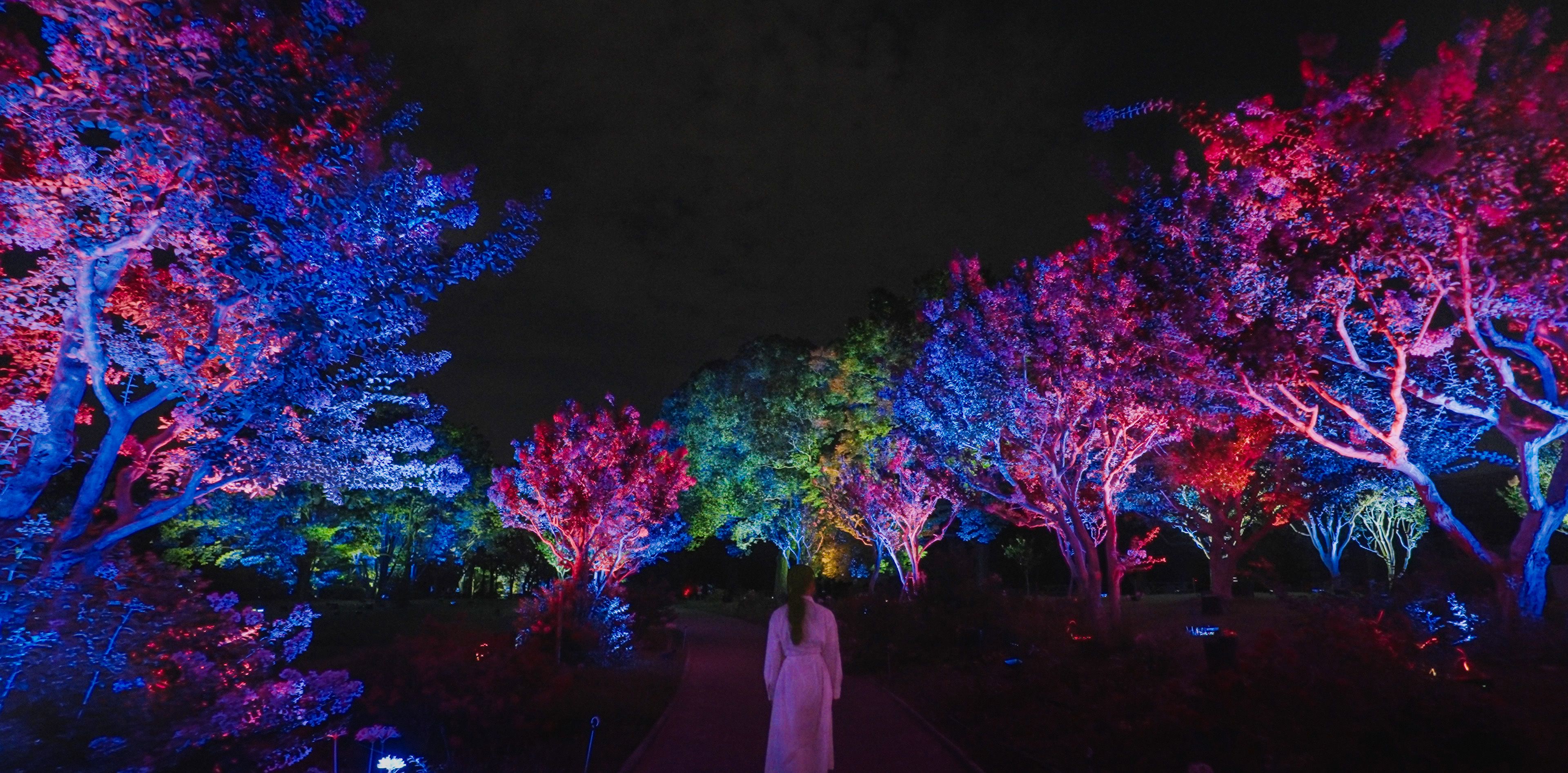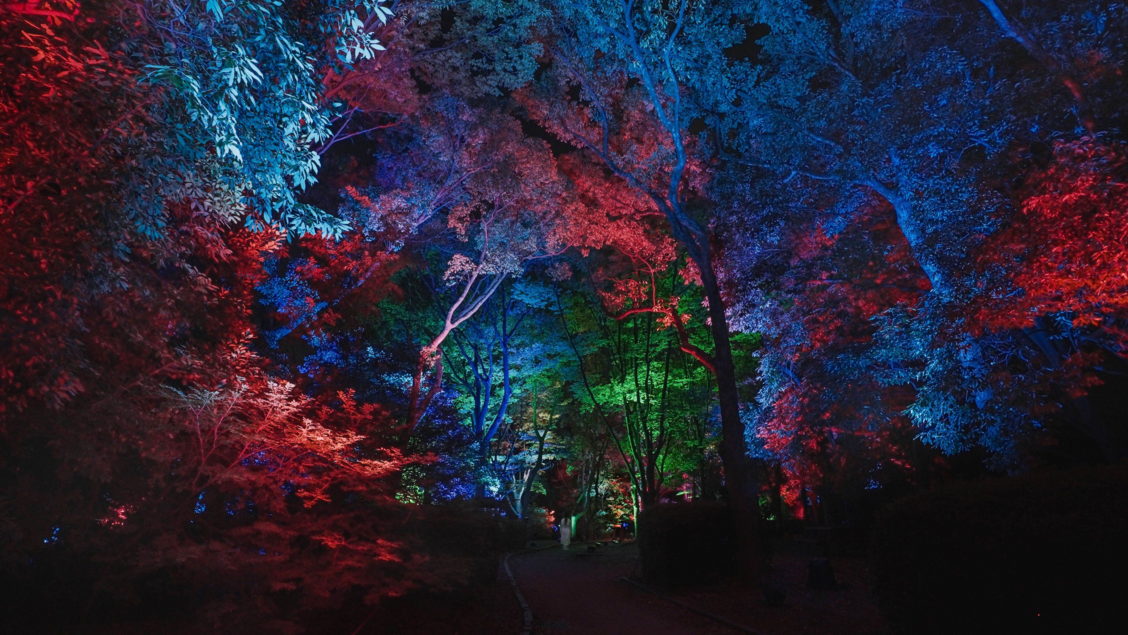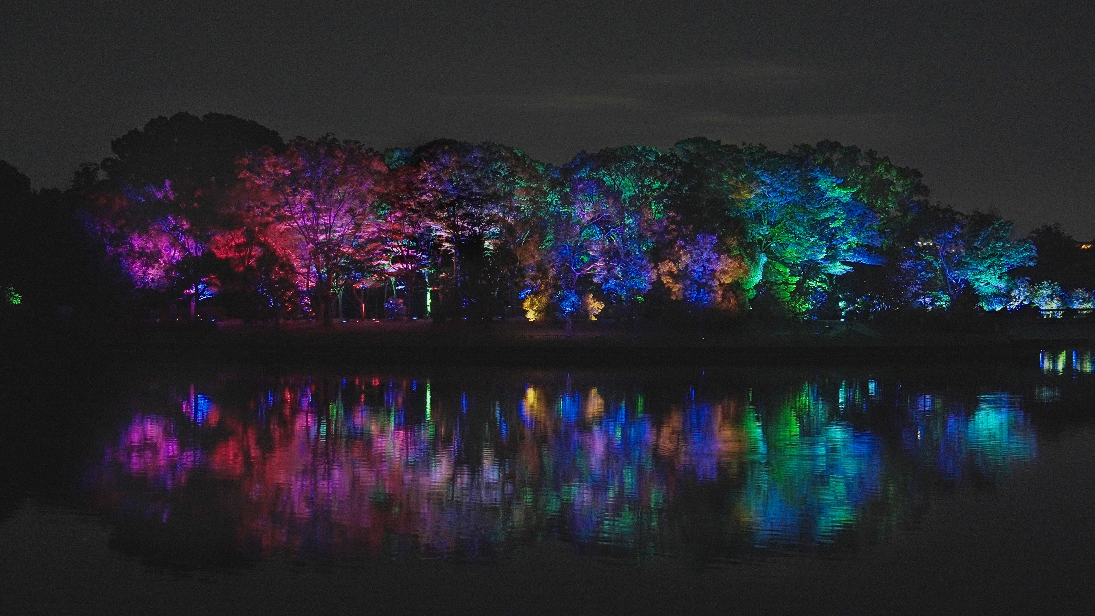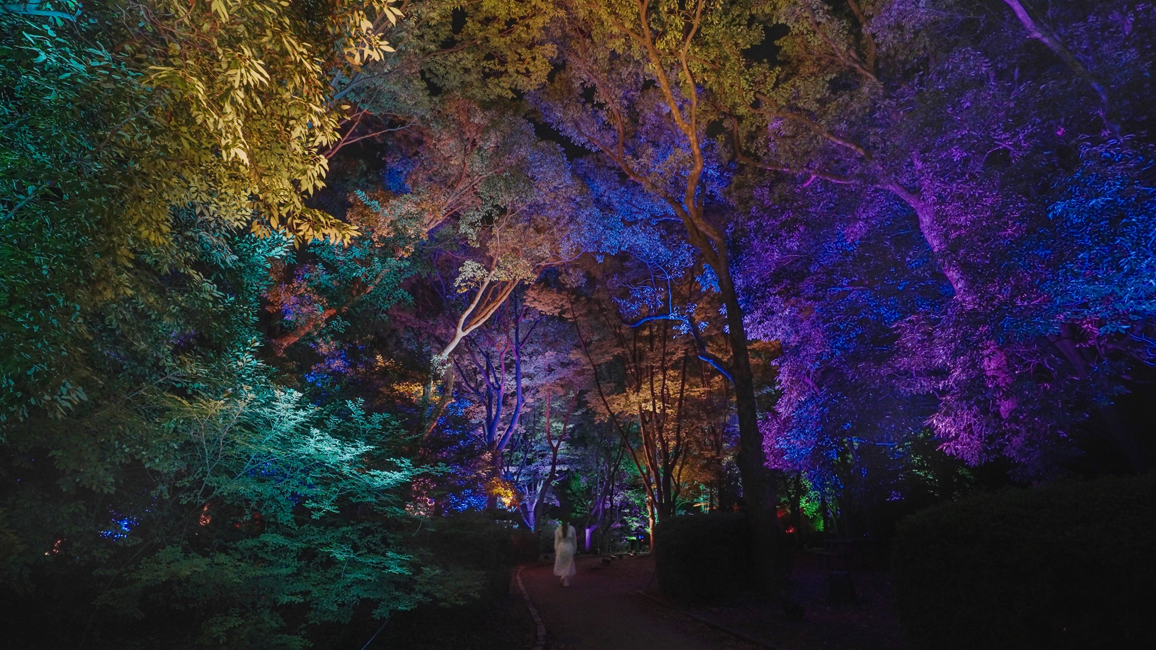 When people pass close to the trees, the light changes color, and a tone specific to that color resonates out. The light of the tree is transmitted to the surrounding trees one by one, continuously emitting the same tone.
