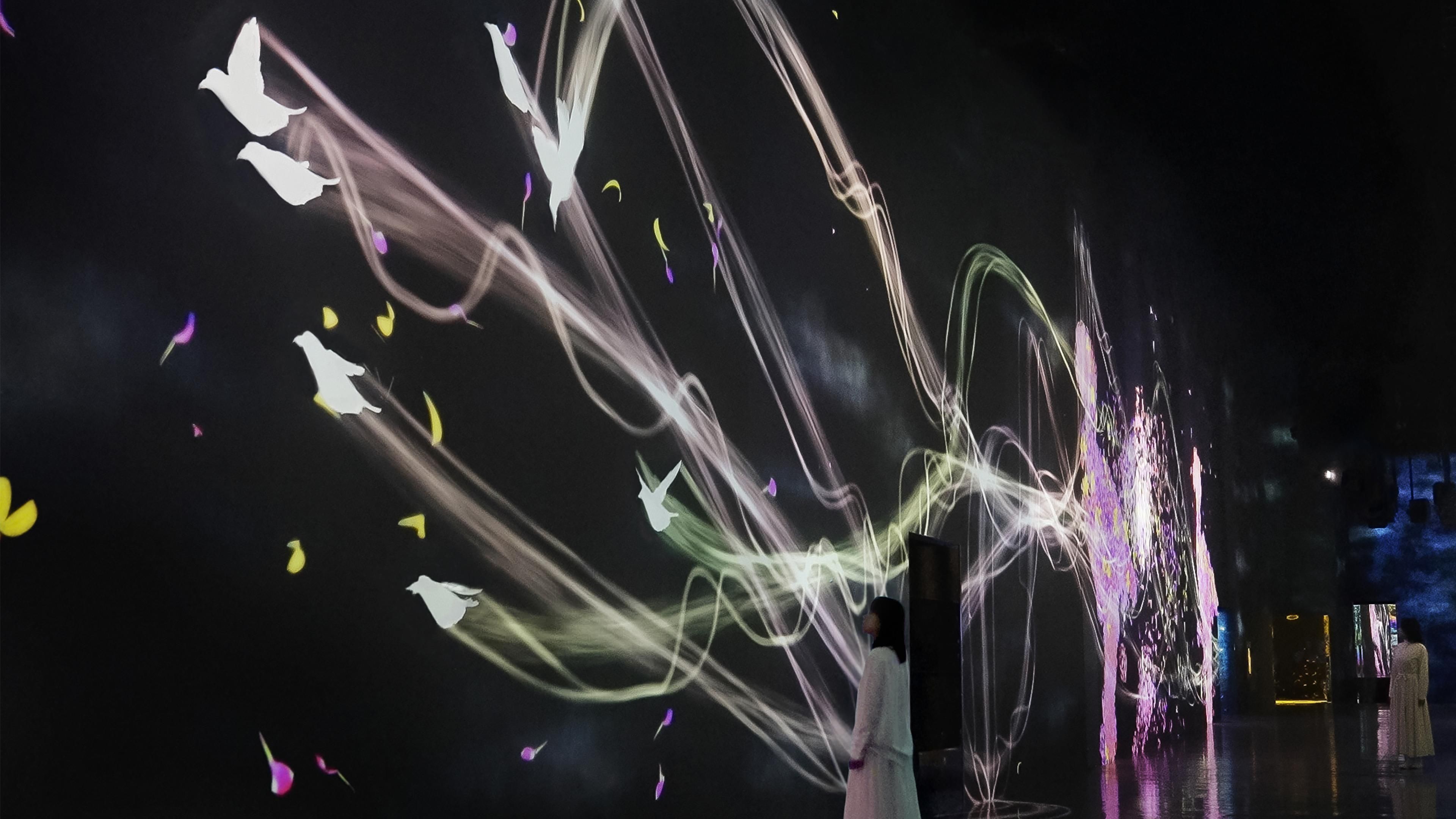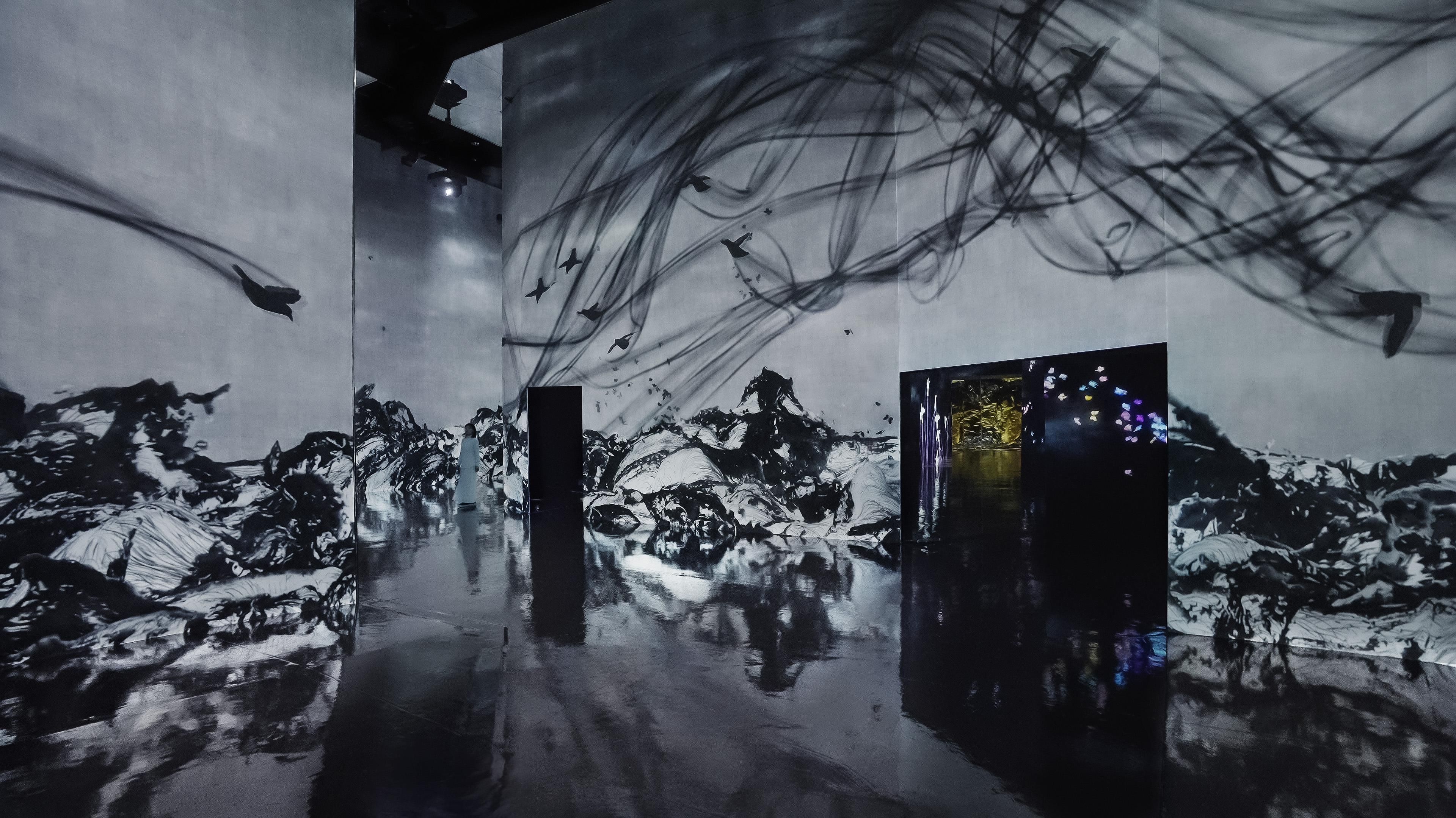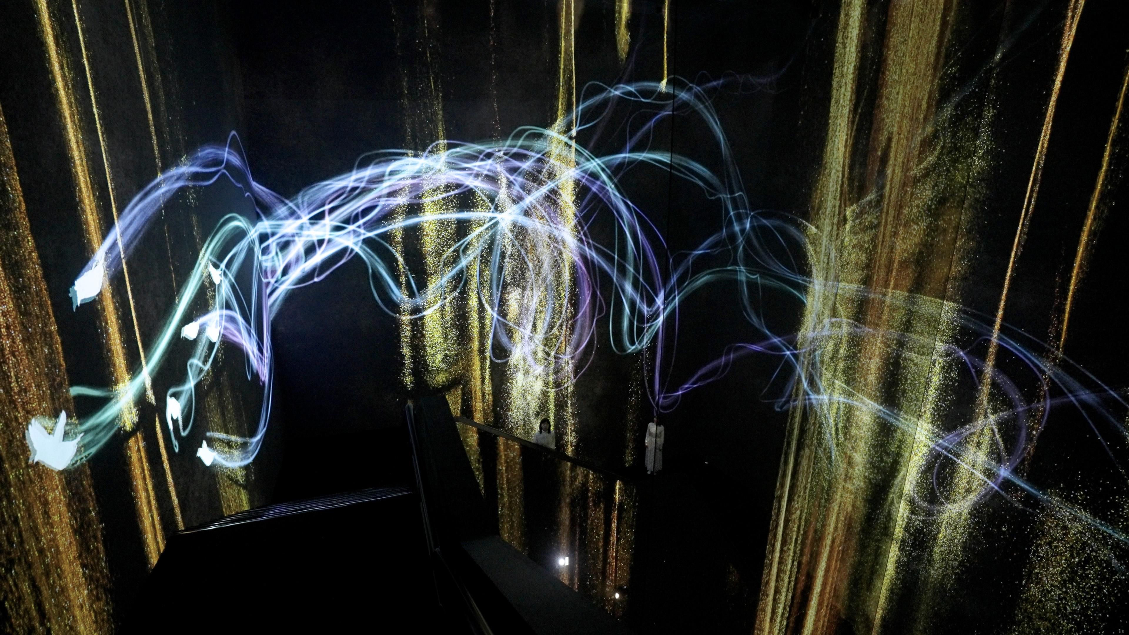 teamLab, 2018-, from the series Crows are Chased and the Chasing Crows are Destined to be Chased as Well, 2013-, Interactive Installation, Endless, Sound: Hideaki Takahashi