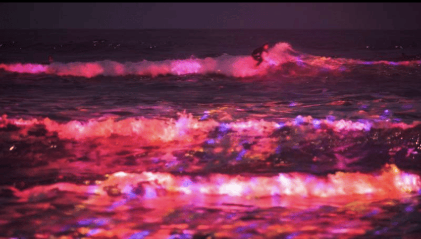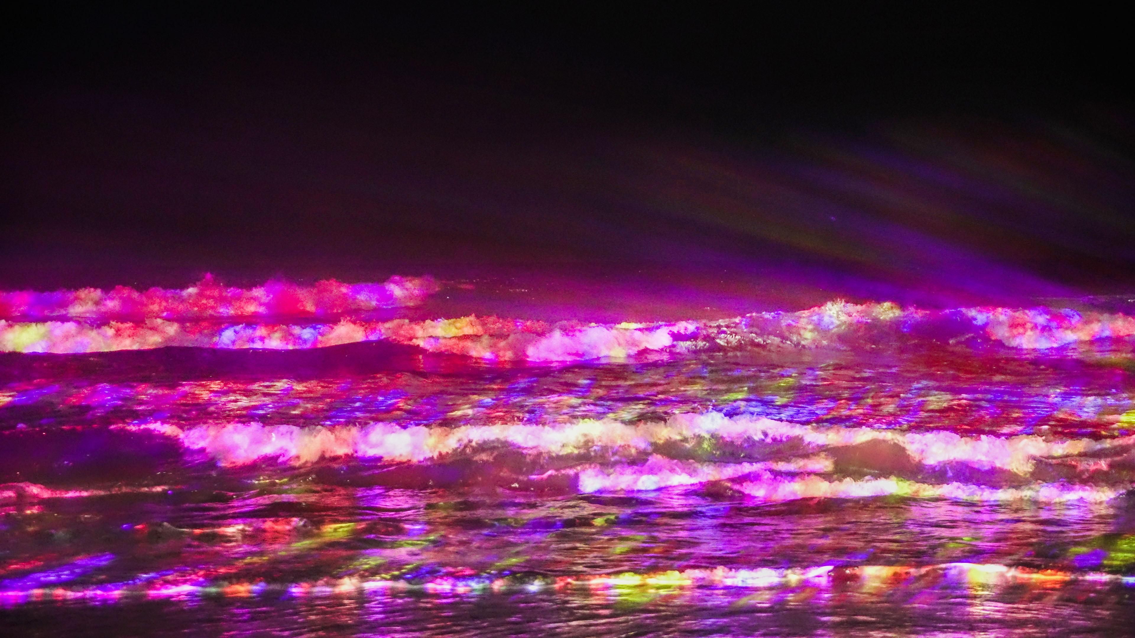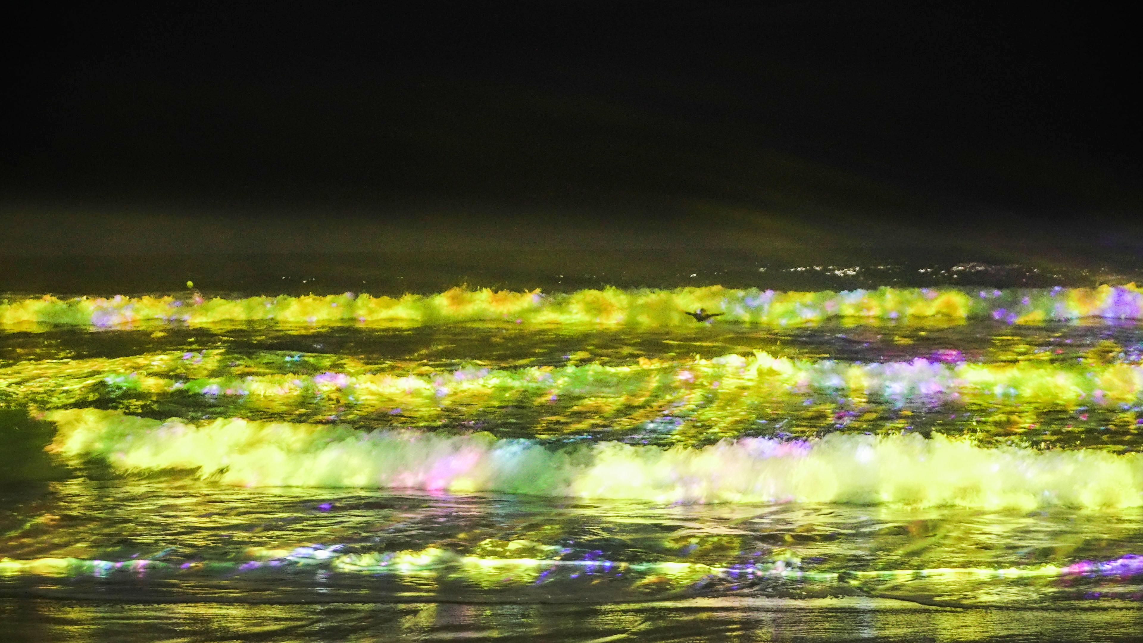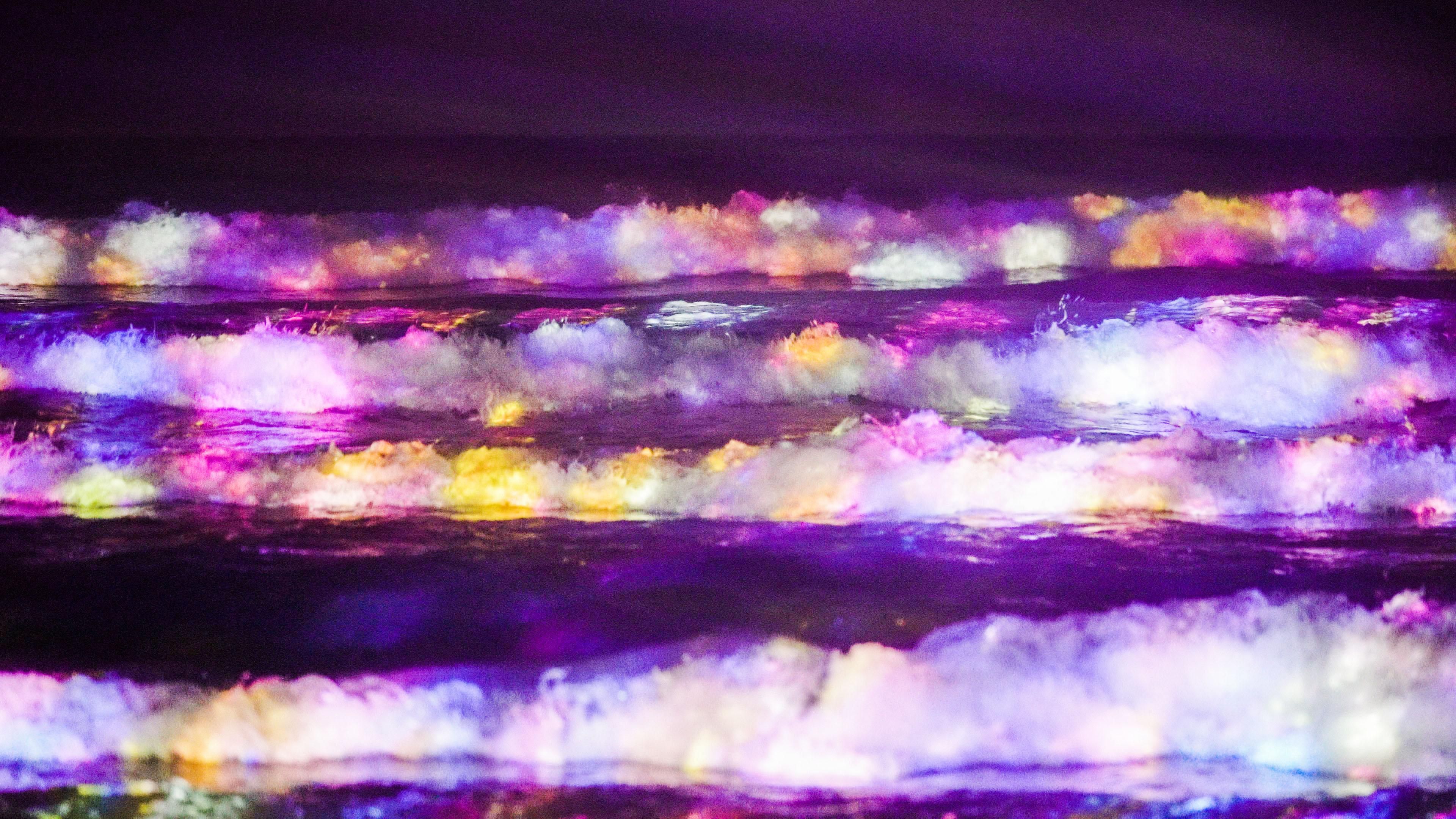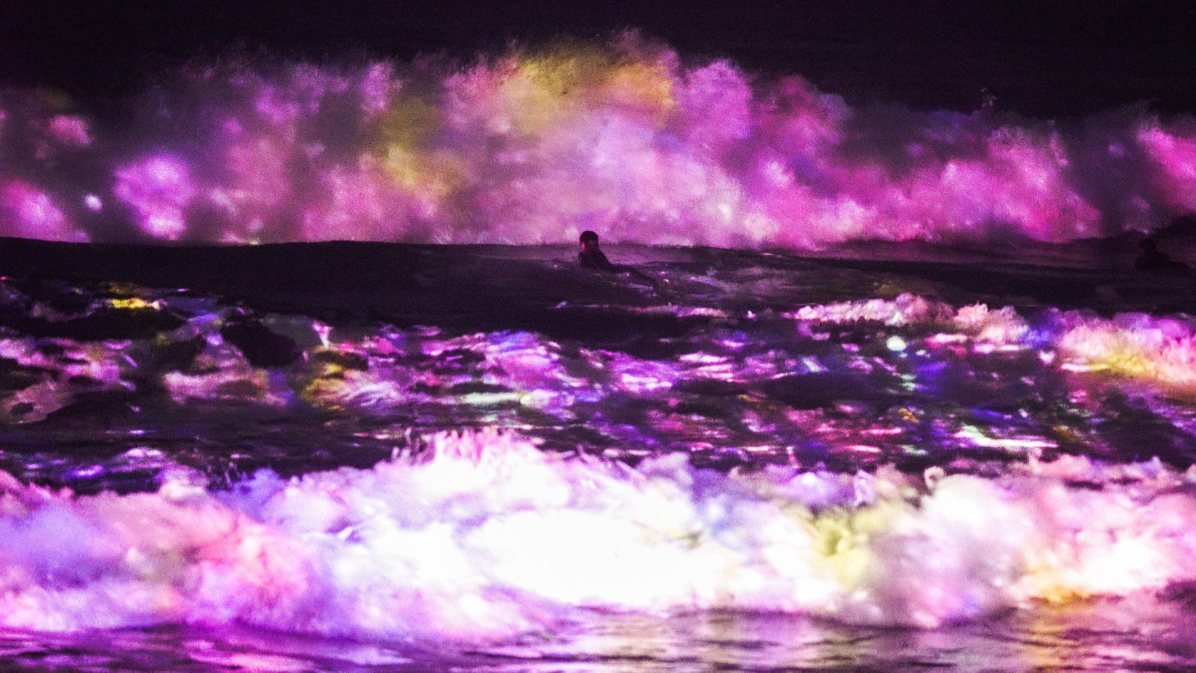 teamLab, 2021, Digitized Nature, Sound: Hideaki Takahashi, Surfer: Hironori Ichiraku, Cooperation: Atsushi Izumi, Kei Nakanishi, Reki Nagahara